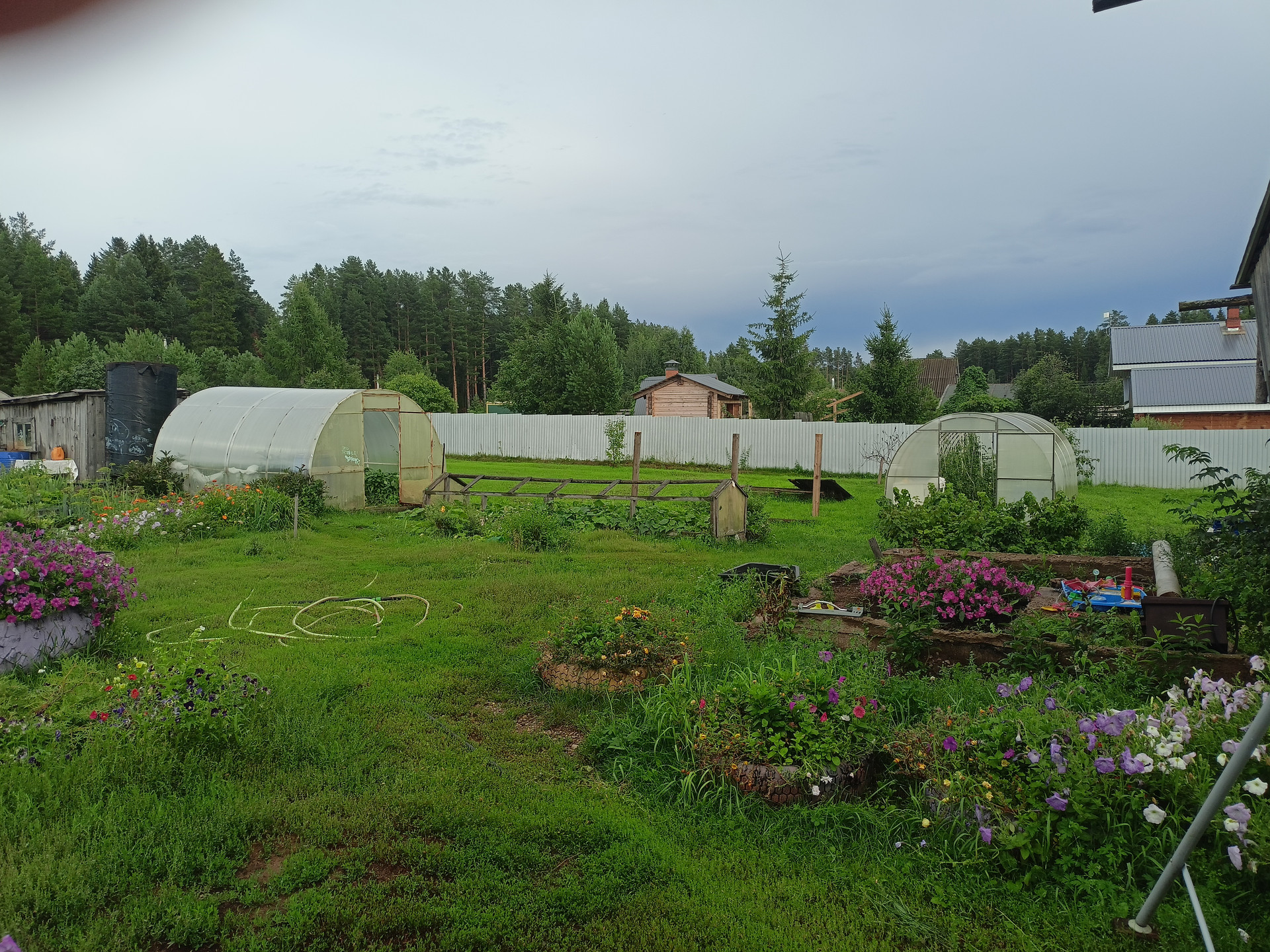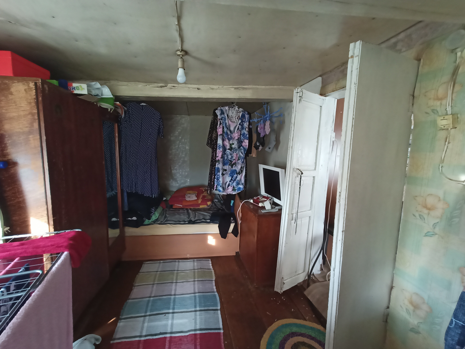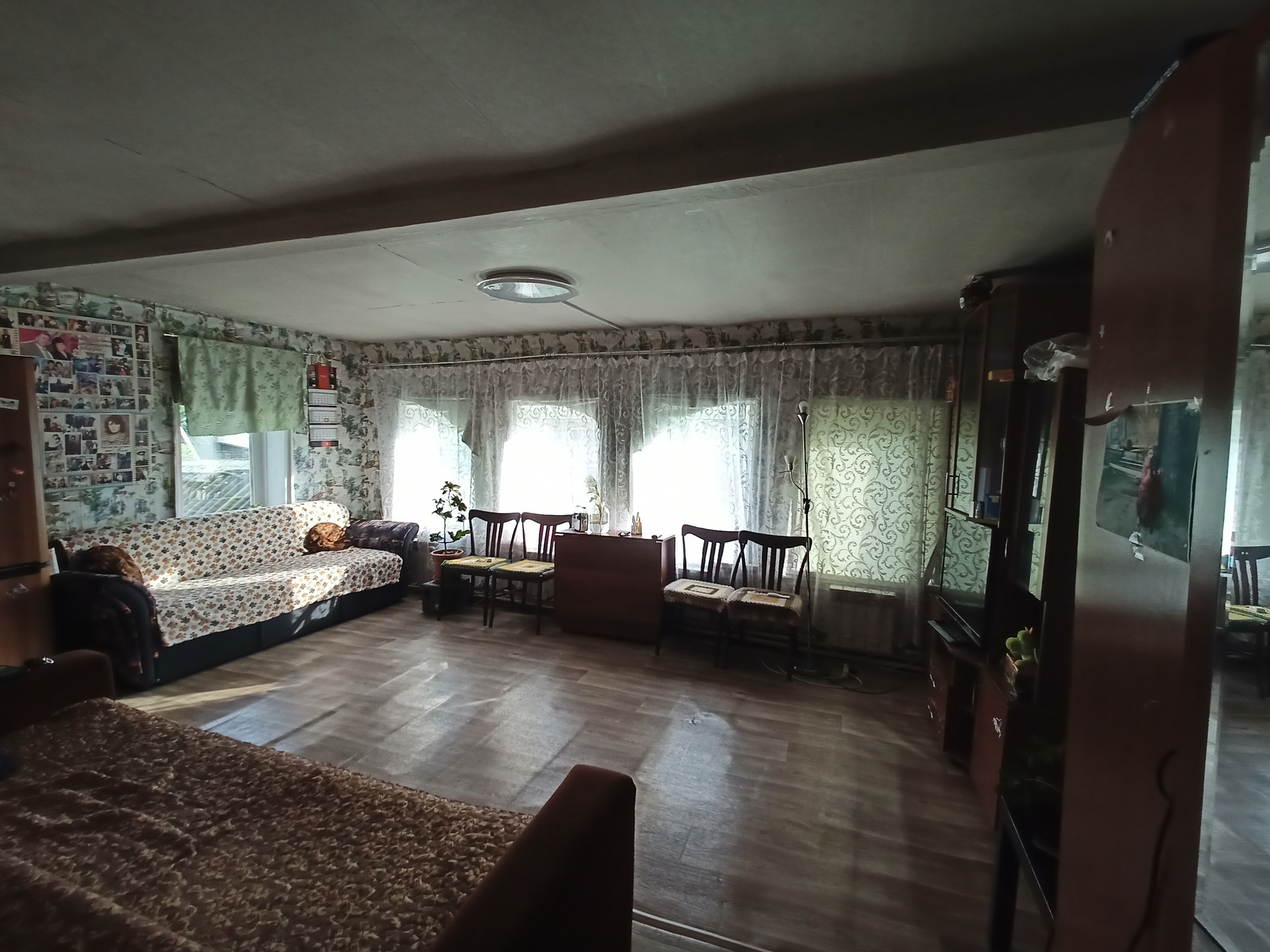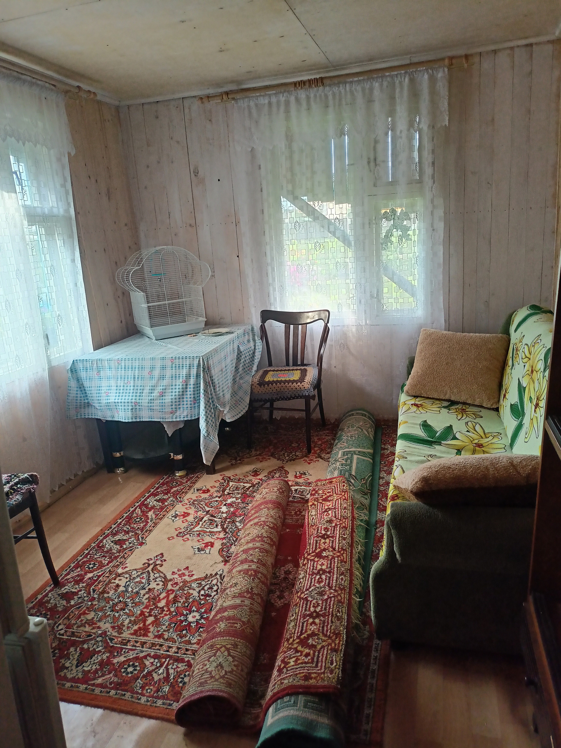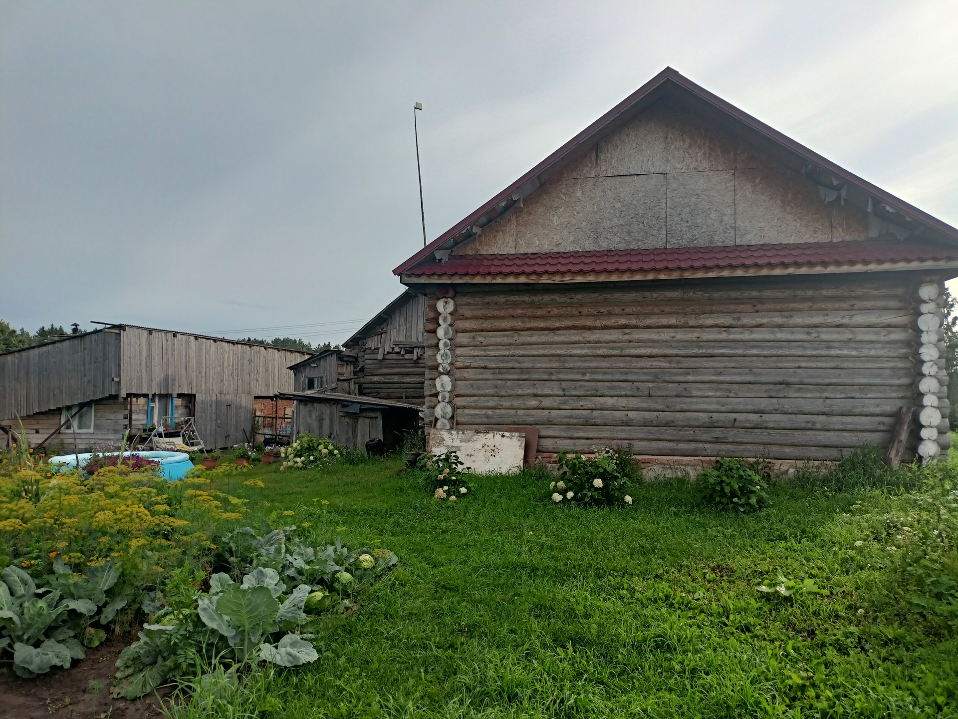 Дом деревянный, есть электричество, скважина, газ, туалет на улице. На участке  сруб для нового дома, к нему подведена канализация. Земля хорошая, три теплицы, много посадок. Имеется баня, гараж, летняя кухня. В доме две жилые комнаты и подсобные помещения. Деревня находится рядом с популярной базой отдыха, недалеко живописный берег реки Кама. Многие приобретают участки под строительство дачных домиков. Собственник взрослый, обременений нет. Рассмотрим обмен на квартиру в п. Новый.