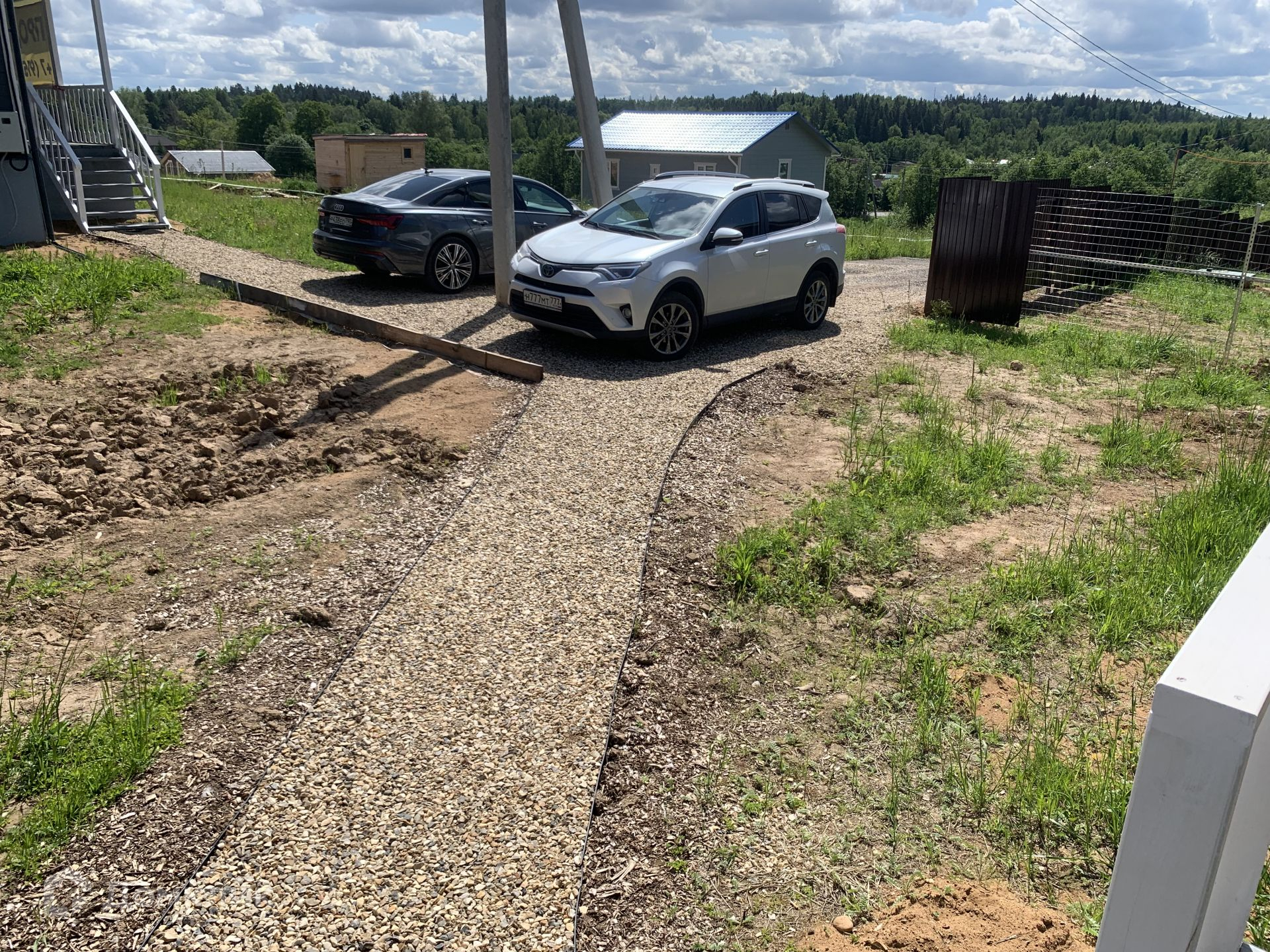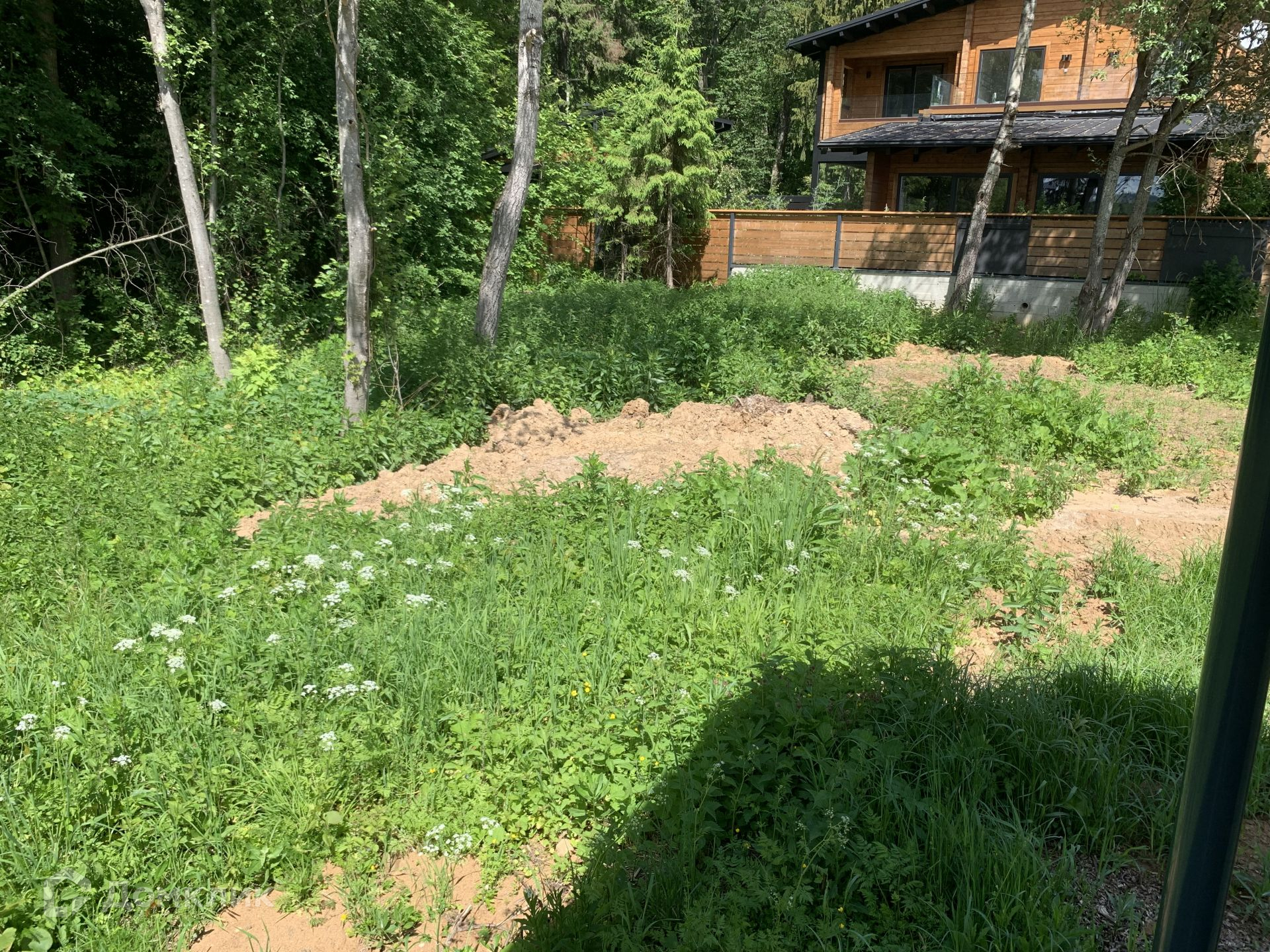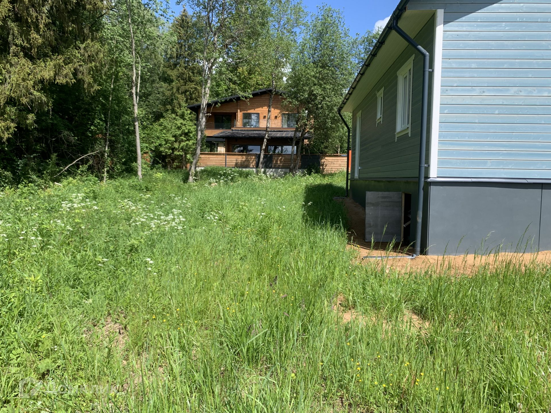 Дом расположен на пригорке, с него прекрасные виды на низовья речки, до дороги 100 м и шума нет почти, участок с наклоном поэтому после сильного дождя вода не стоит и уходит это большой плюс,  лиственный лес в границах забора.