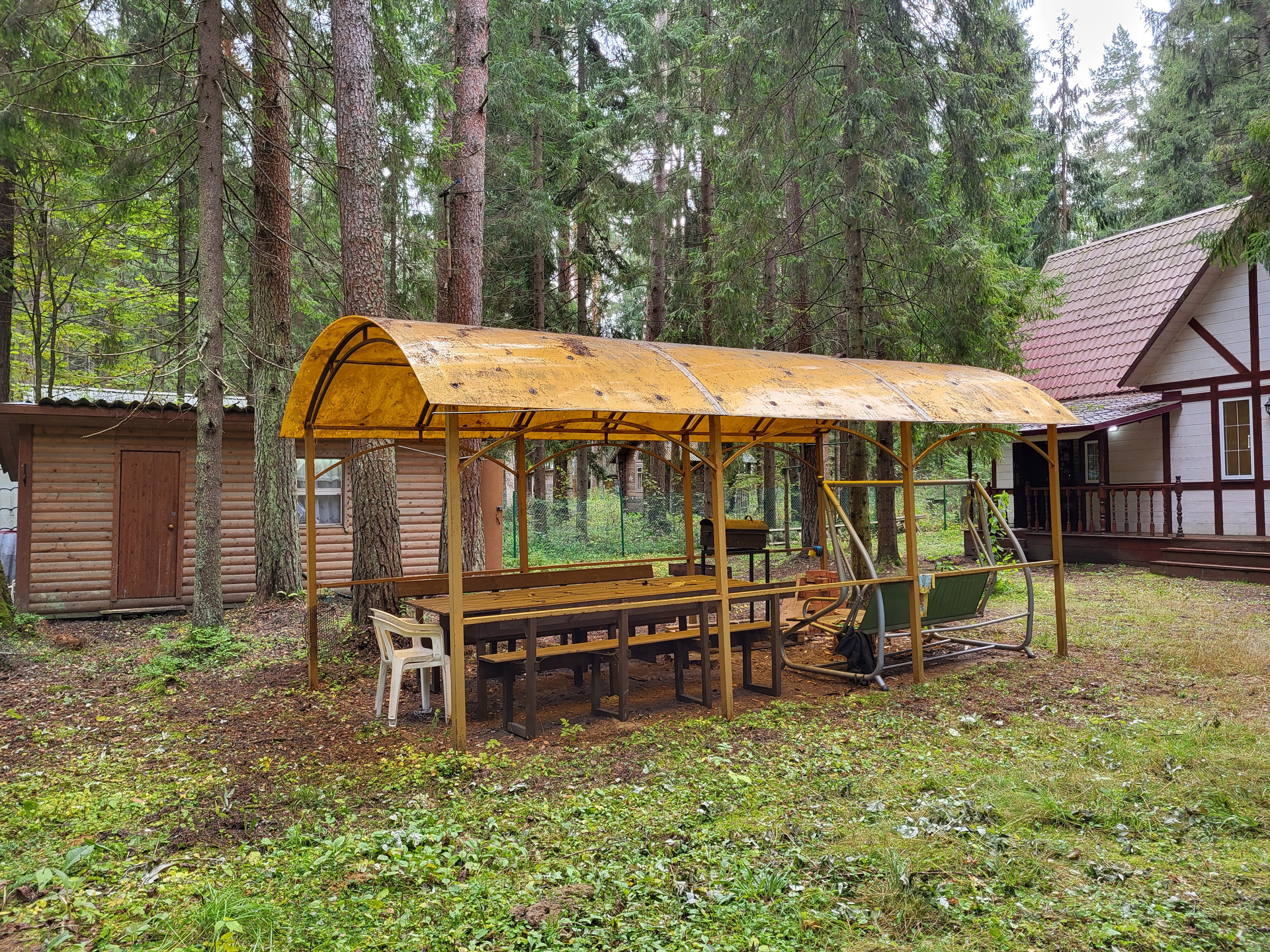 На участке имеется беседка, а также гостевой домик, оборудованный санузлом, территория обнесена забором - сетка-рабица.