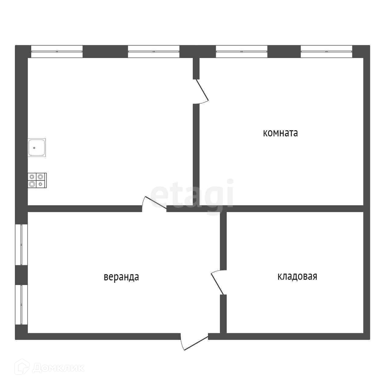 1-этажный дом, 42.1 м2, на продажу в деревне Костылевой, Центральная улица