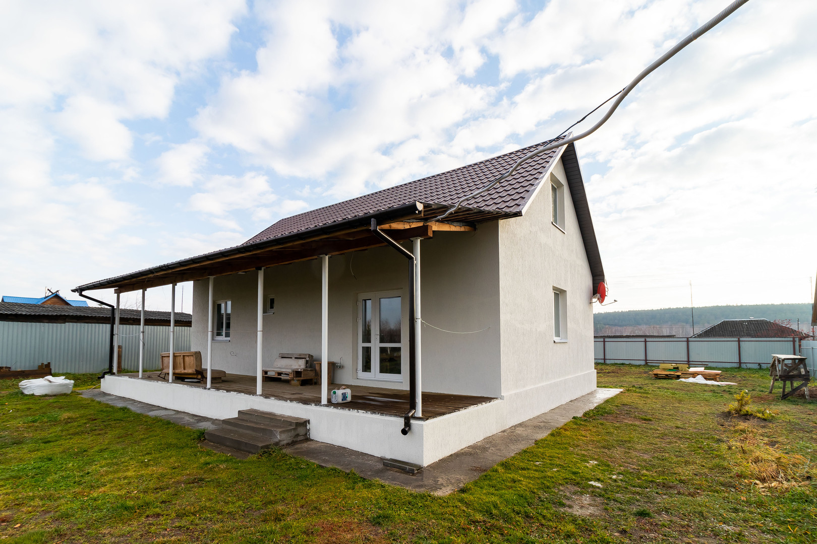 Продается жилой дом 2020 года постройки! Расположен Тюменская область д. Костылева по Червишевскому тракту. Участок 22 сотки, на высоком месте, огорожен со всех сторон, забор из профнастила. Дом состоит из двух этажей -общая площадь 103 кв.м. Планировка 1 этажа — кухня гостинная 30 кв.м., две спальные комнаты по 10 кв.м., гардеробная, сан.узел, прихожая, бойлерная. 2 этаж — свободной планировки 33 кв.м. Все стены отштукатурены и покрашены в белый цвет. Пол первого этажа -железобетонные перекрытия ЖБИ, уложен керамогранит. Потолок между этажами по деревянным балкам утеплен, черновой из досок. Стены керамзито-блок 300 мм,производство завода Винзили (под внешнее утепление и мокрую штукатурку). Фундамент-лента на сваях "ростверк", сделана отмостка по периметру 2 крыльца. Погреб 2х2 в бойлерной, с вентиляцией, окна пяти камерные, тройной стекло пакет, входная дверь с термо разрывом. Кровля с контр. обрешеткой, металлочерепица 0,5 мм.Коммуникации: Электричество, заведено в дом, разведено по комнатам — установлены розетки и выключатели. Вода(скважина) заведена в дом. Отопление (теплый пол с незамерзайкой) по первому этажу. Котел электрический 14кВт. Канализационные трубы заложены и выведены. Септик 2+2 переливных кольца. Газ на границе участка. Хорошие подъездные пути, асфальт до участка, сделан дренаж.Площадка перед домом с гравием.Установлена баня 2*4 из сруба. При продаже на участке останется вагончик бытовка новый 2,5х6 м. Живописное место в экологически чистом районе. Соседи проживают круглый год. Из достопримечательностей: карповый заповедник, биатлонный центр "Жемчужина Сибири". Дом и земля в собственности. Отличный вариант для семейных людей!