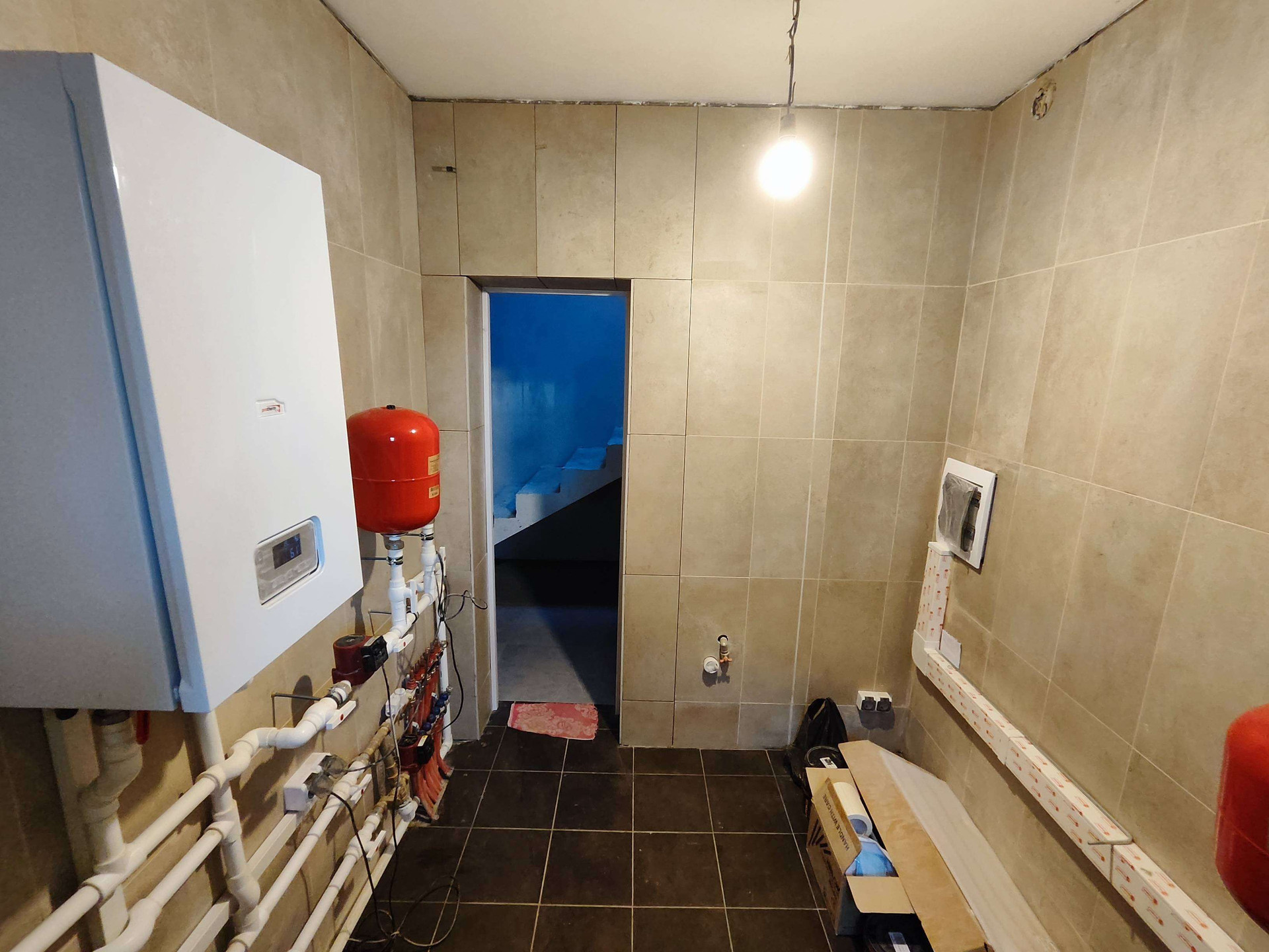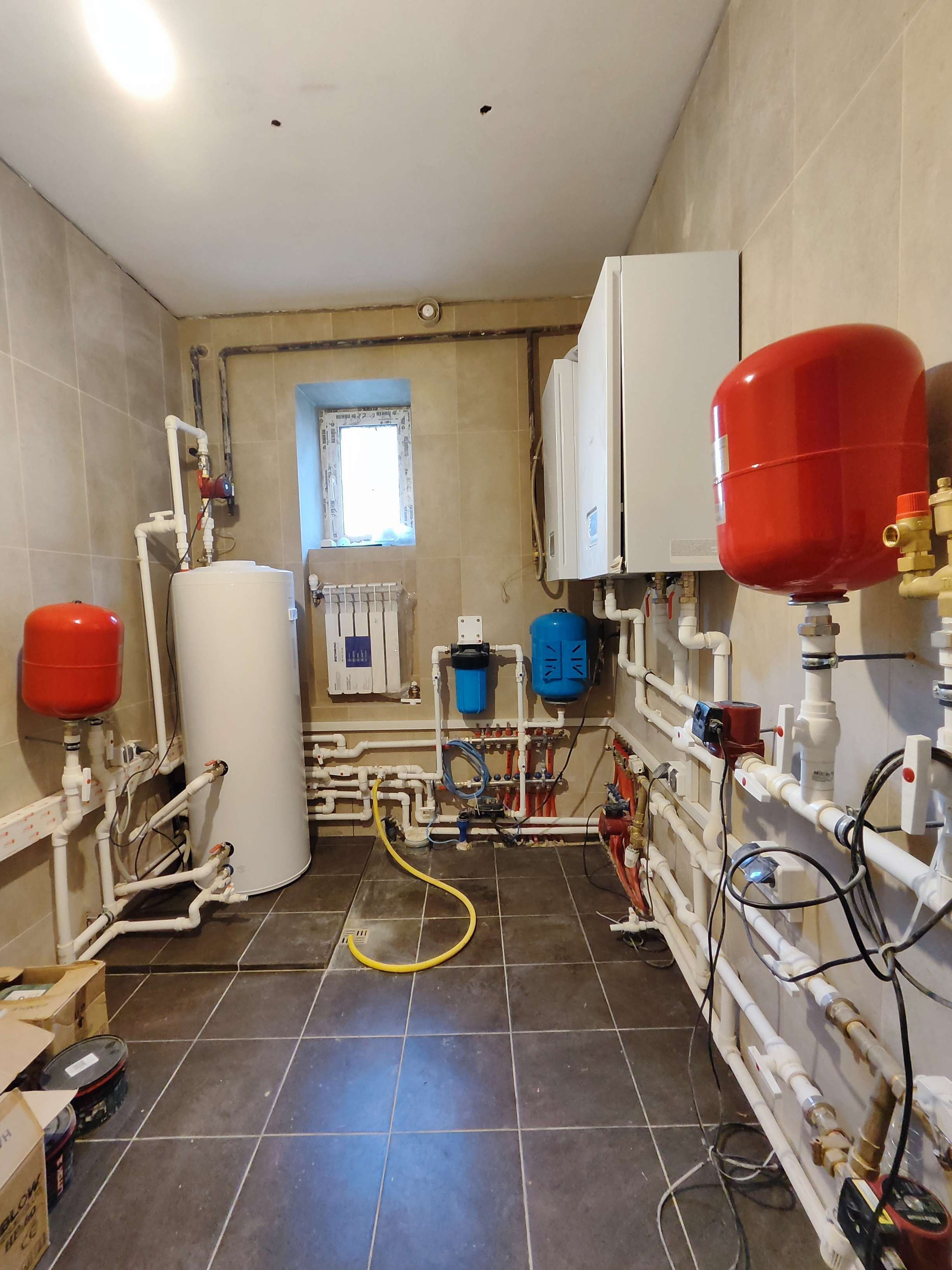 В дом заведена вода, скважина на участке, канализация - септик. Отопление электрическое, установлен электрический и газовый котел "Protherm".