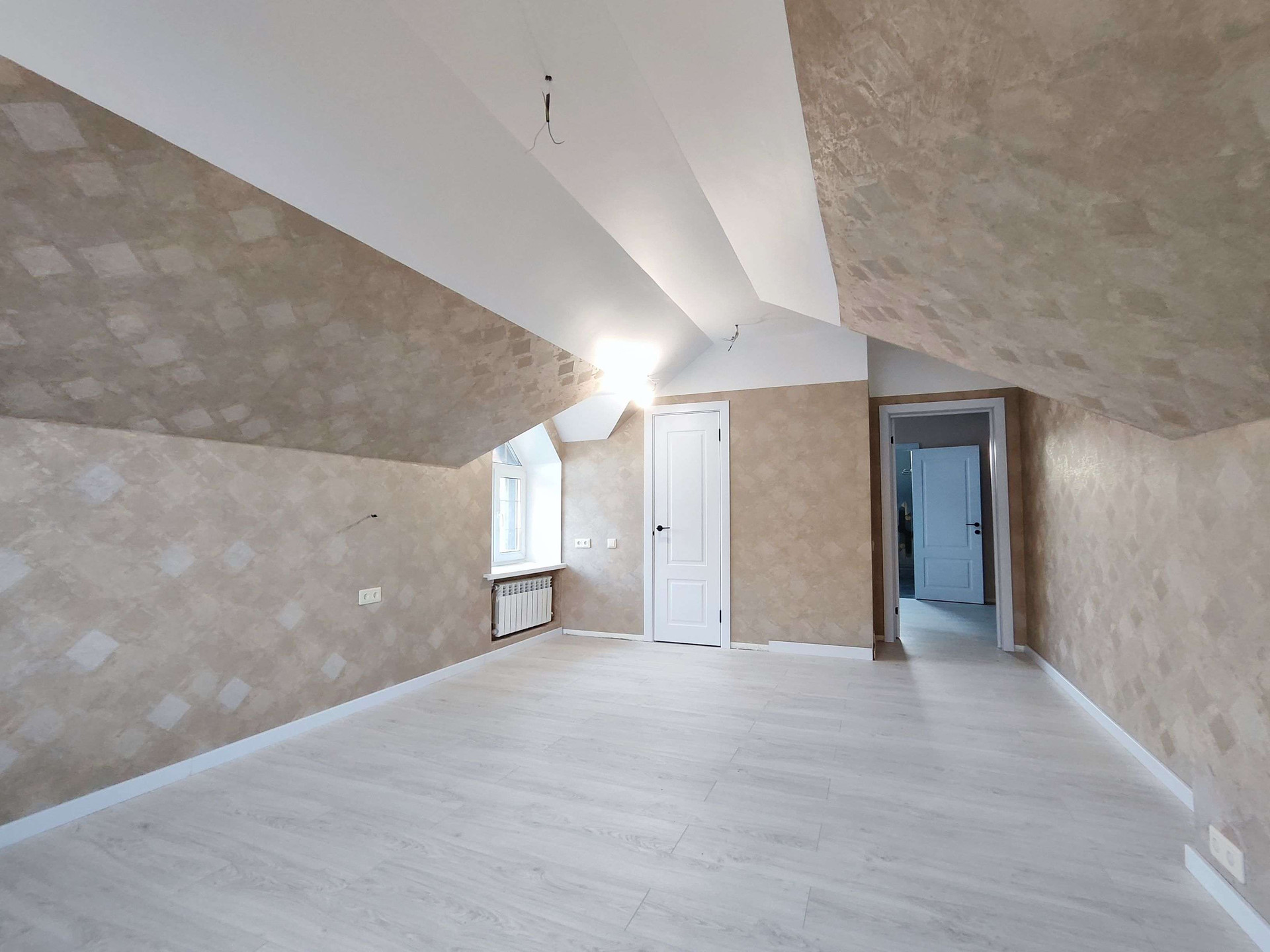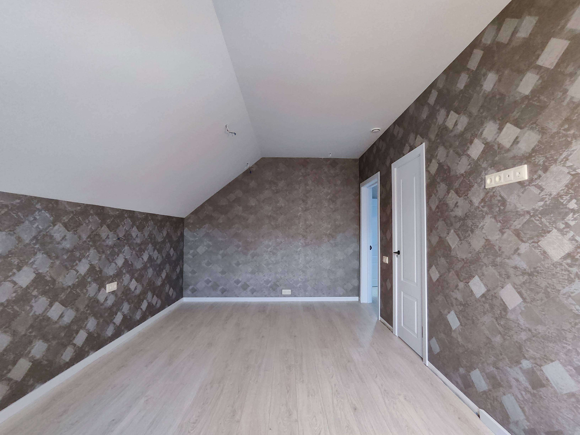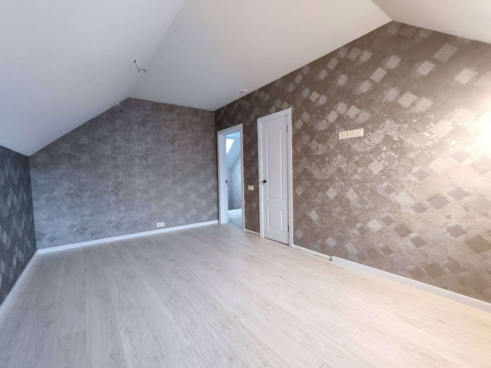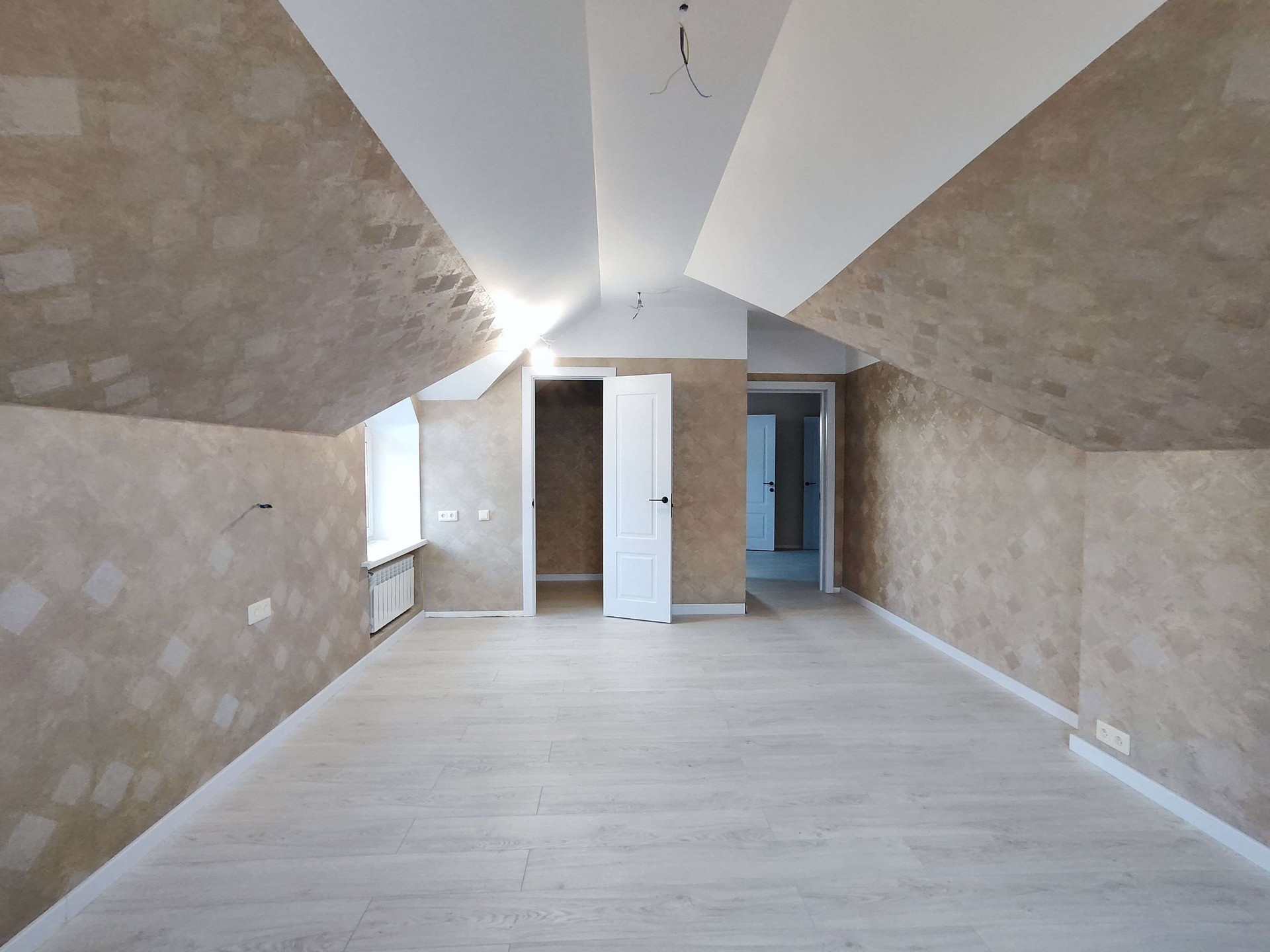 Планировочное решение: первый этаж - холл, объединенный  с кухней-гостиной, комната для гостей, санузел, техническое помещение, теплый пол. Второй этаж - три спальни, в каждой спальне отдельная гардеробная, санузел.