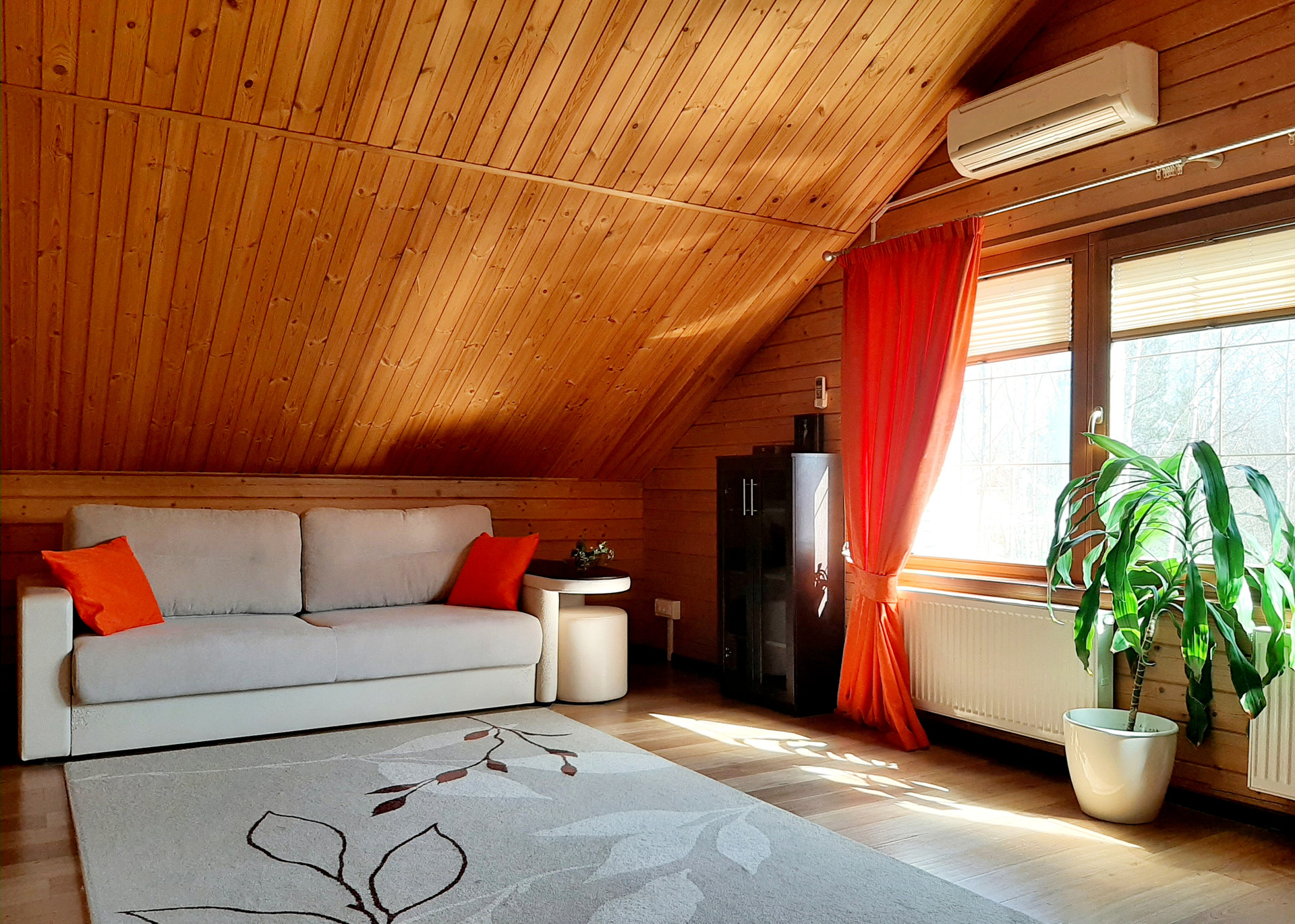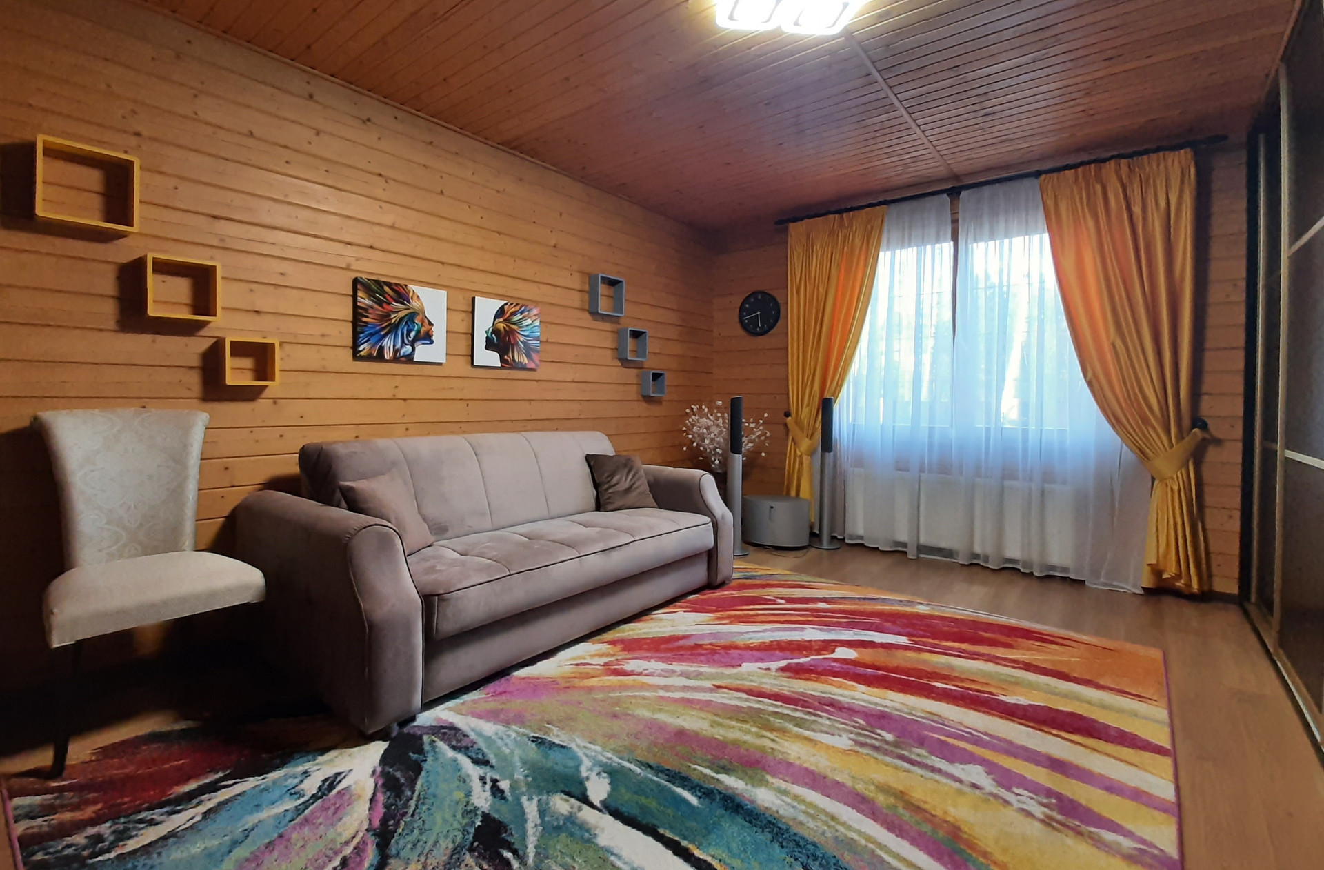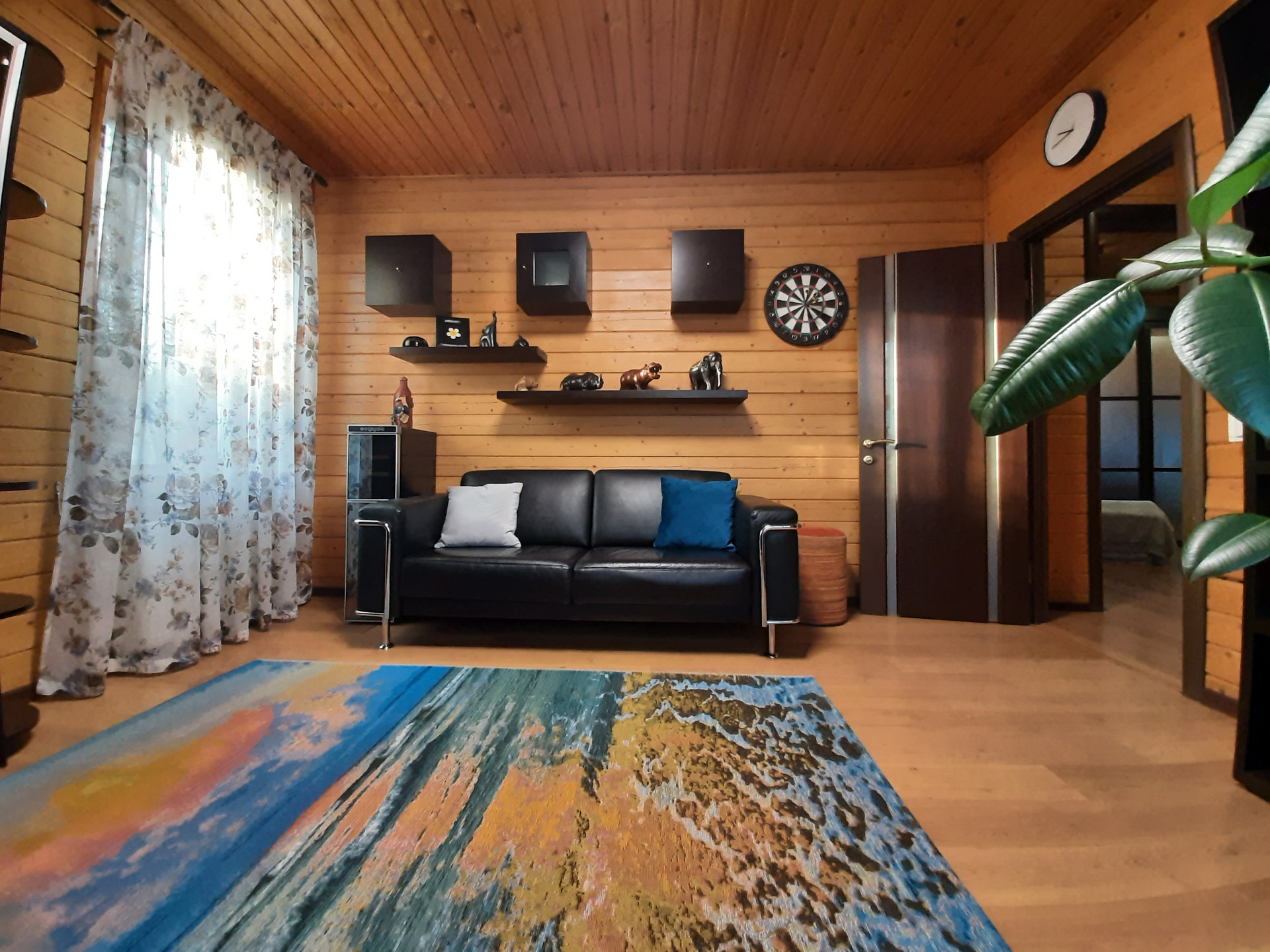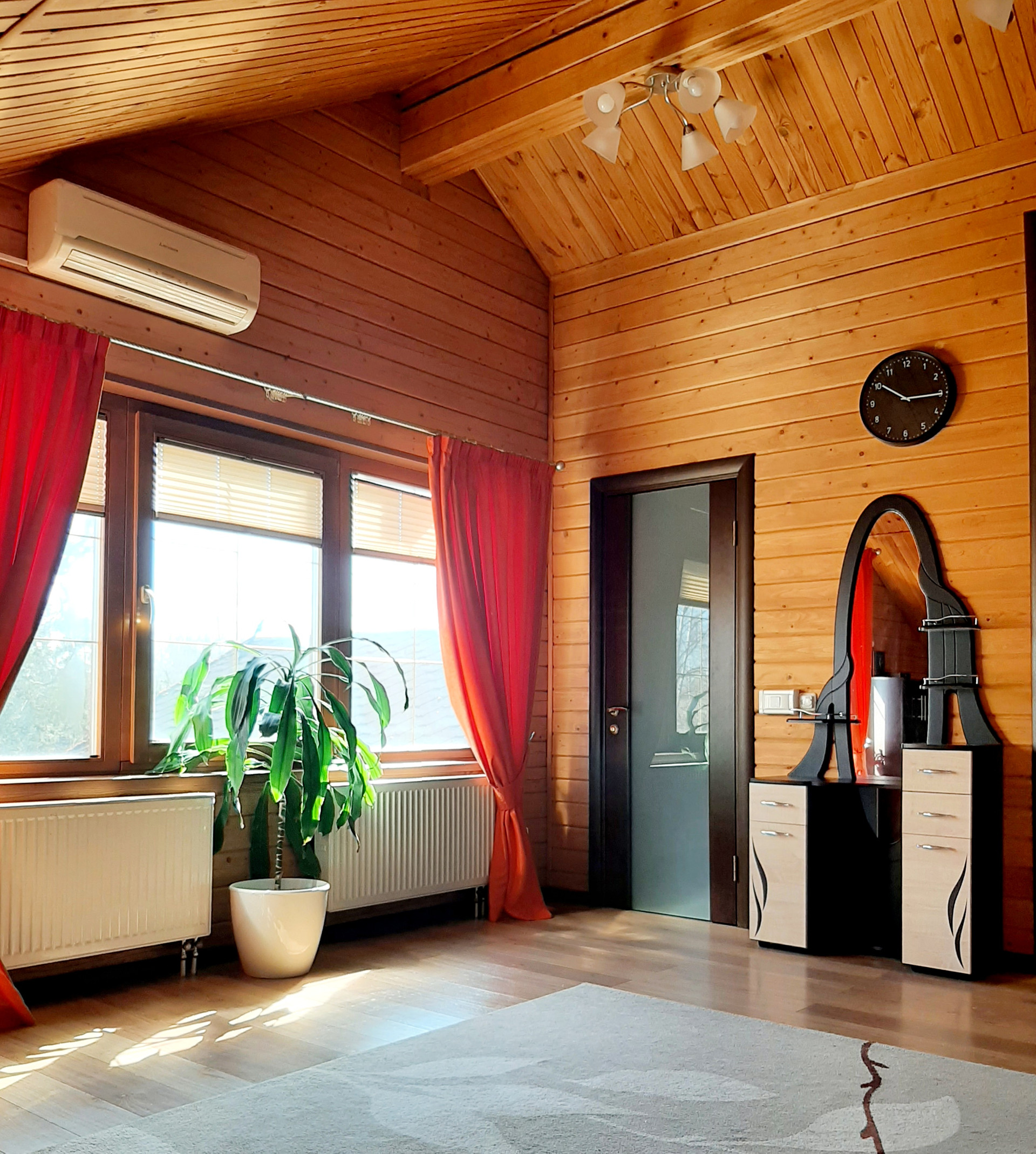 Дом расположен на самой высокой точке поселка, окна ориентированы по всем сторонам света. Функциональная удобная планировка дома позволяет комфортно жить в нем большой семье. При отделке использовались экологически чистые материалы, установлены деревянные стеклопакеты, сделан теплый пол на и обогрев крыльца. Благодаря второму свету в гостиной и большому количеству окон дом светлый. Прекрасно держит тепло даже в самые суровые зимы. Дом укомплектован всей необходимой мебелью и техникой.