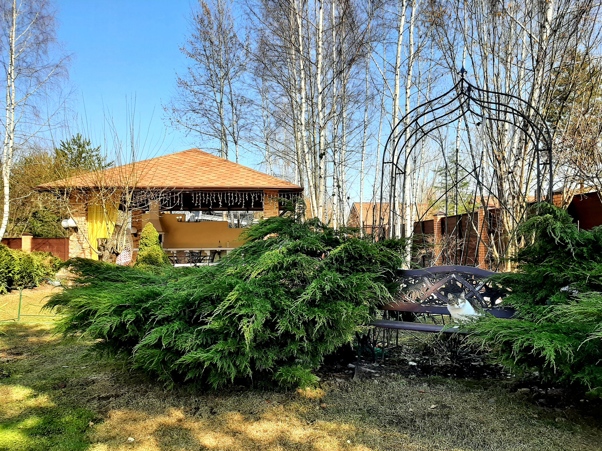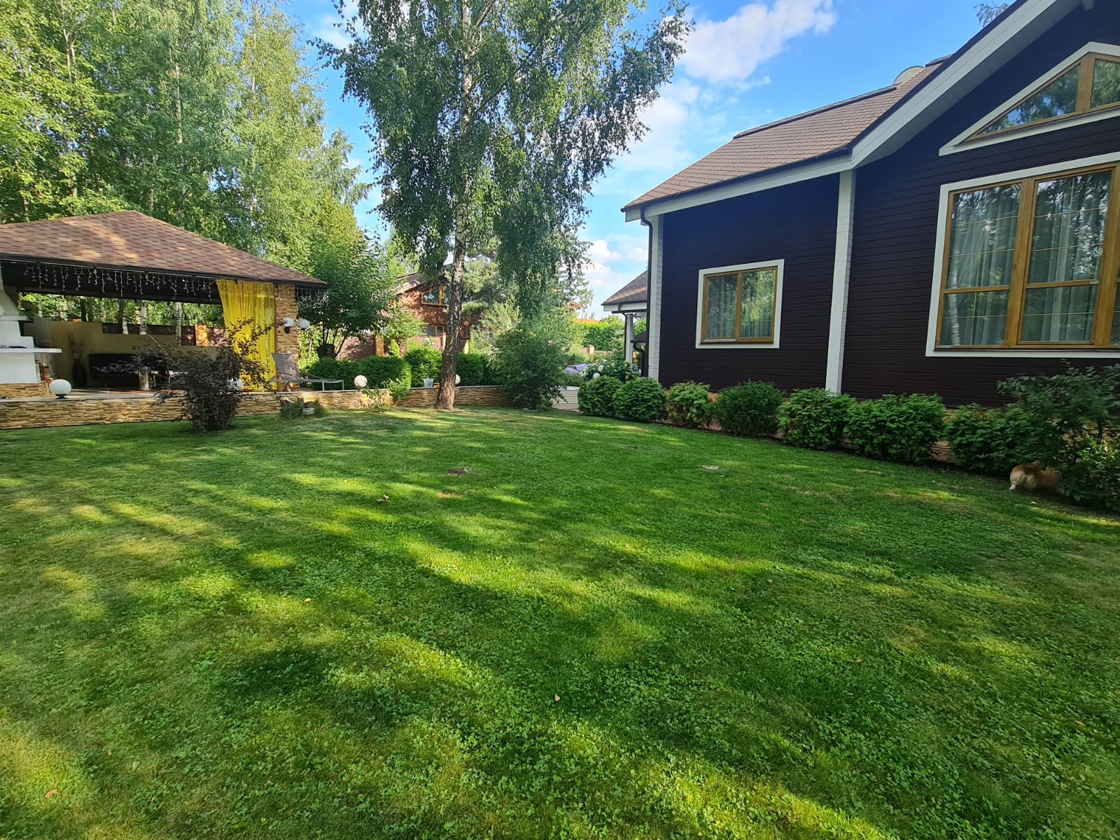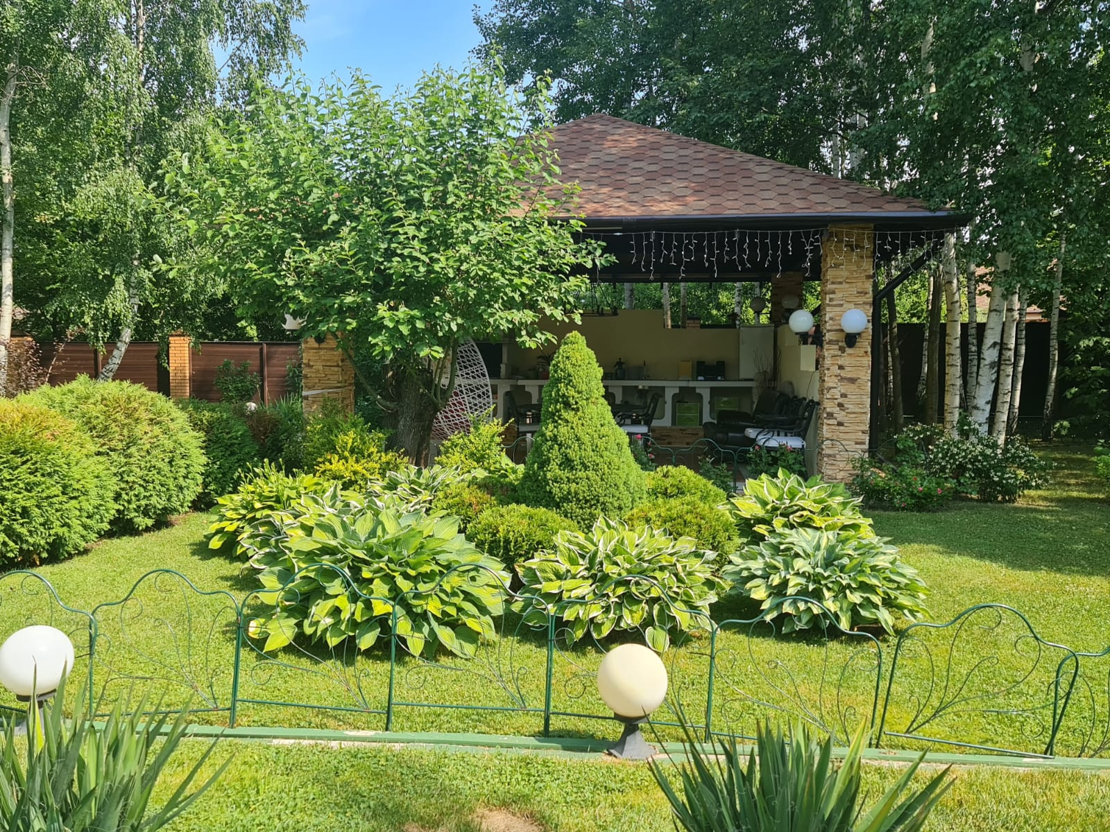 Ухоженный и облагороженный участок 15 соток со взрослыми деревьями, ландшафтным дизайном. Много вечнозеленых растений, сделана подсветка. Оборудованная беседка с мангалом и зоной отдыха. Вид разрешенного использования земли ИЖС.