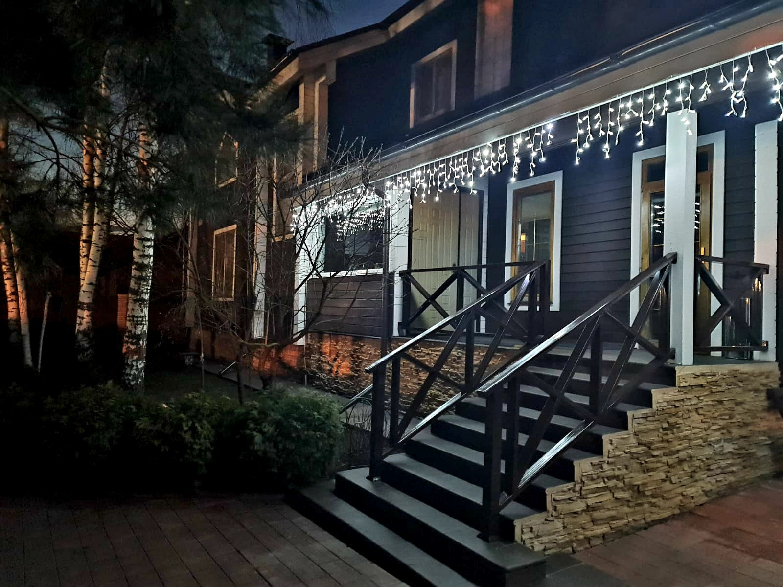 Все коммуникации - газ, водопровод (с системой водоочистки), канализация - центральные, электричество 15 квт. Есть встроенный пылесос, система очистки воды, кондиционеры.
