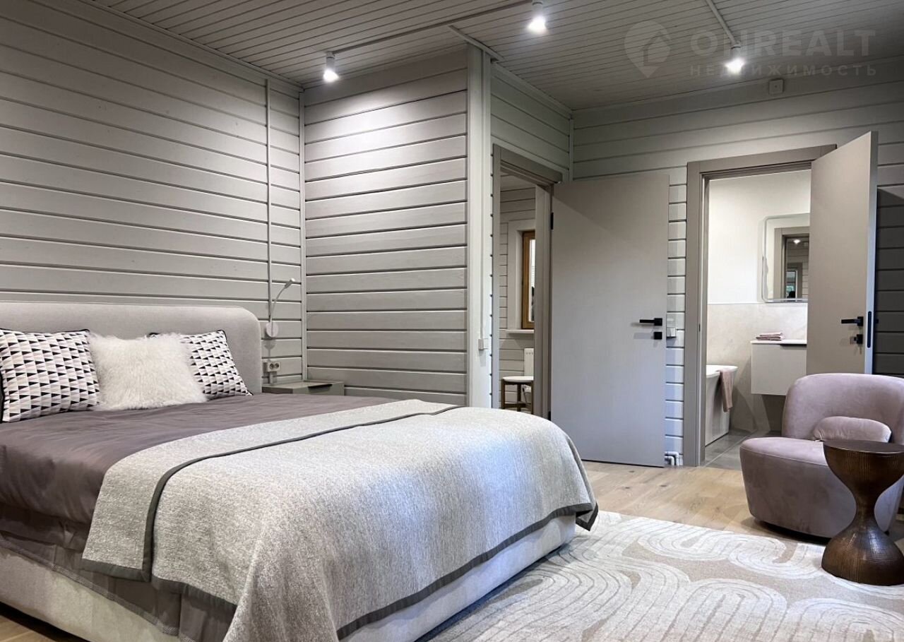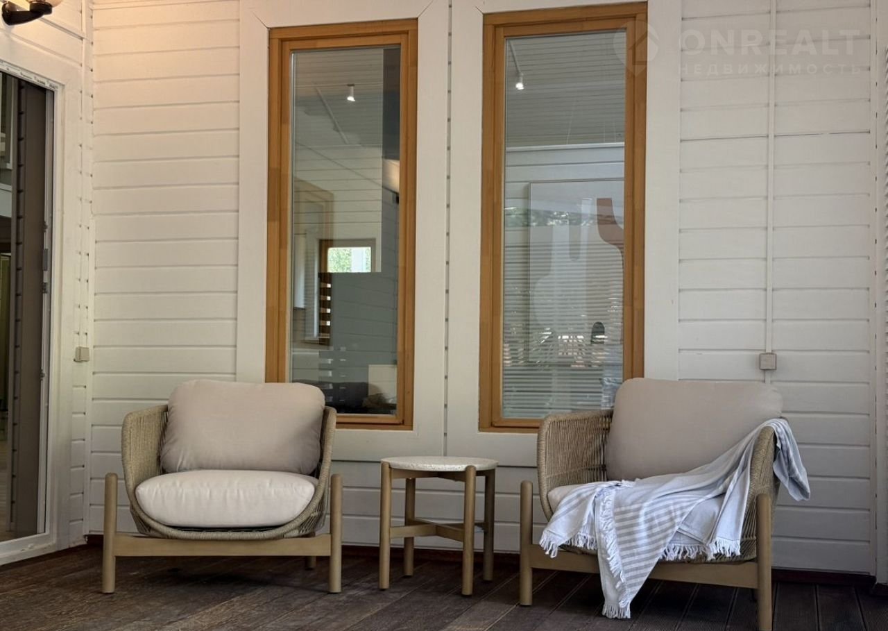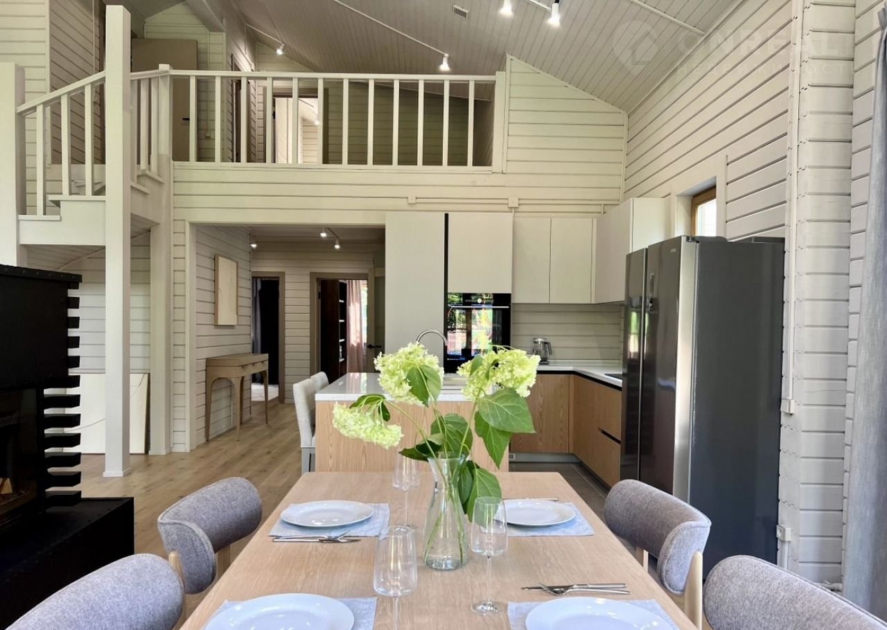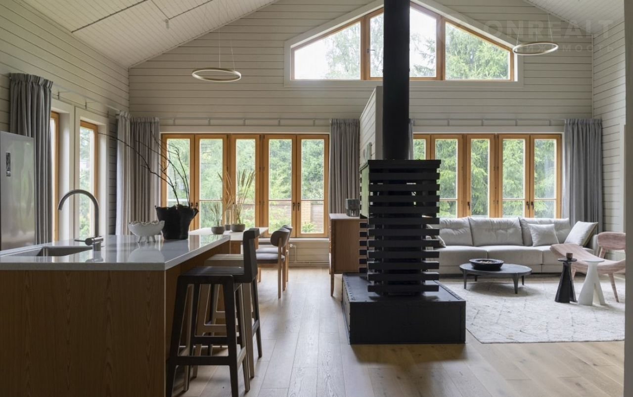Современный интерьер в светлых, легких цветовых решениях. Новая мебель и текстиль от компании Dаntоnе Ноmе, подобранная со вкусом, создает уютную атмосферу в доме. Кухня с островом из МДФ и дубового шпона, встроенная техника Коrting и Еlесtrоluх, винный шкаф и большой холодильник sidе-by-sidе — всё это порадует новых владельцев. Камин с двусторонней топкой, украшающий гостиную, согреет и подарит наслаждение от игры огня.