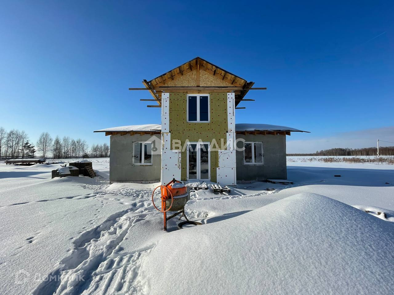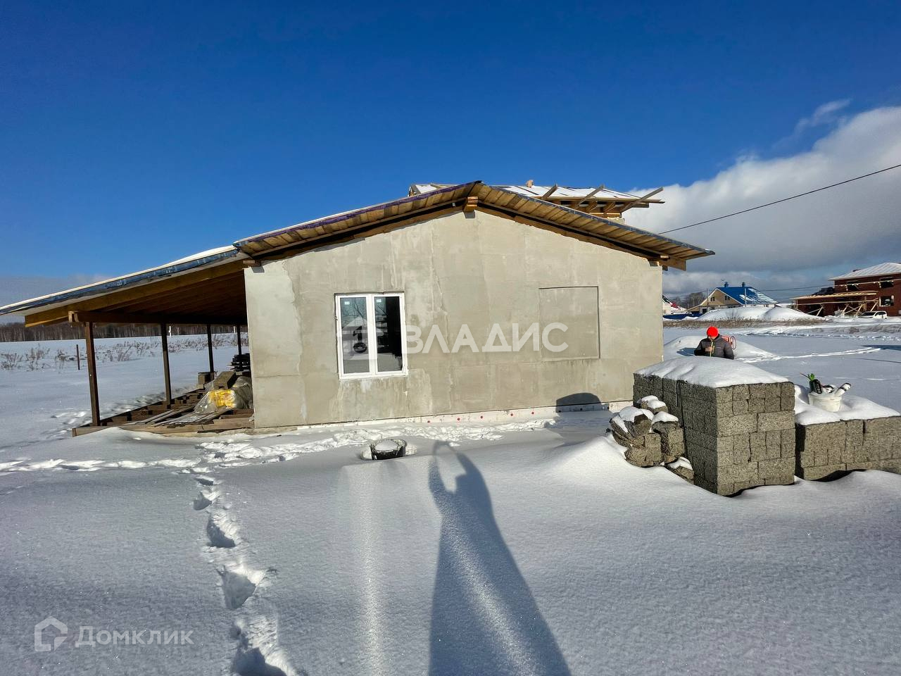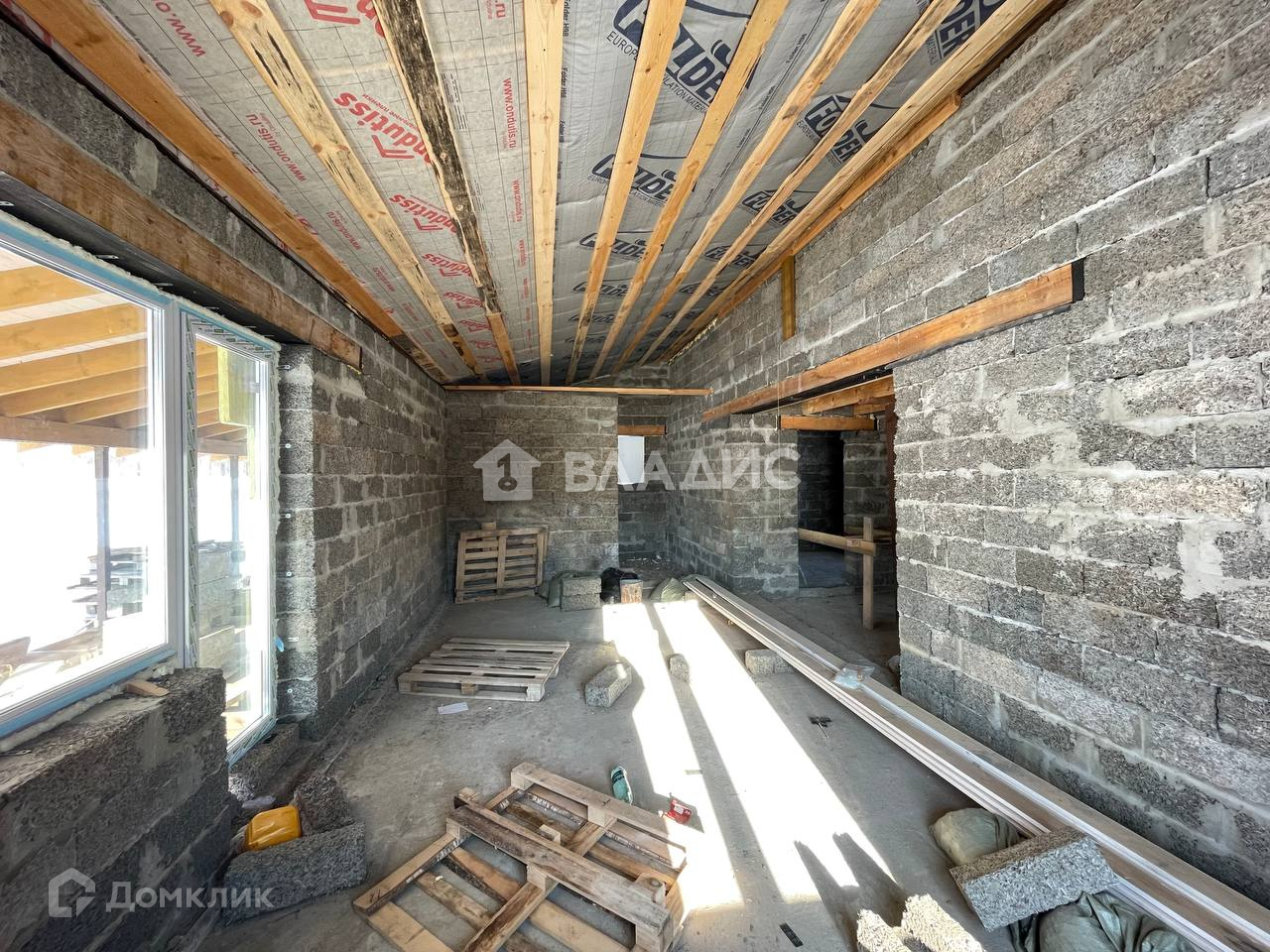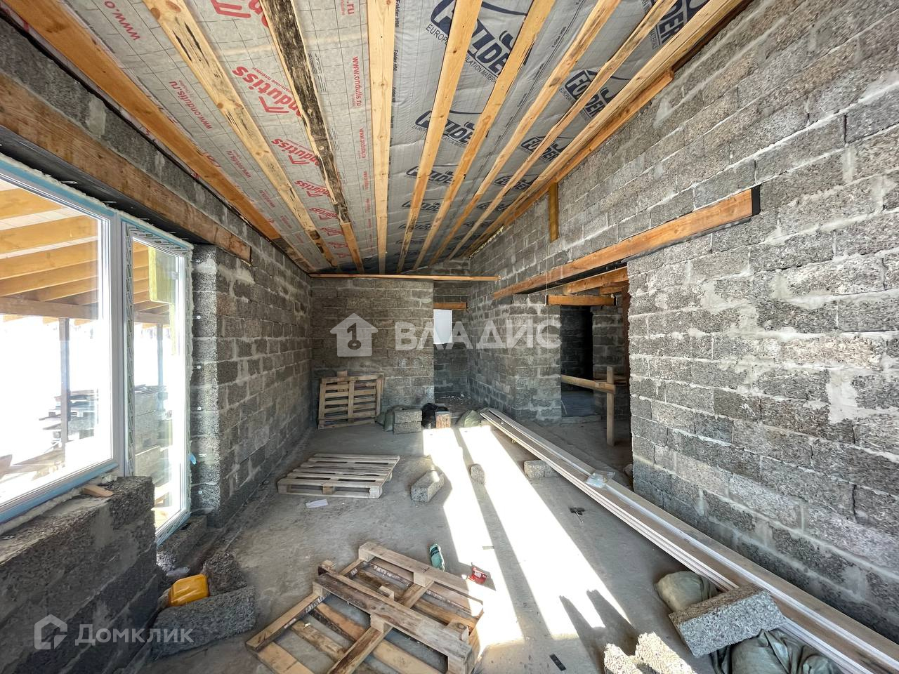 Общая площадь 122м и верандой 30м. Построен из качественных арболитовых  блоков.( Теплый , экологичный и и дышащий материал) Крыша готова к финальному покрытию.