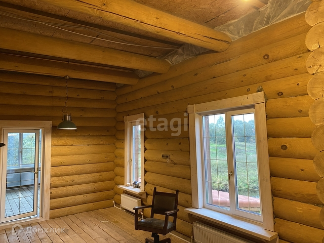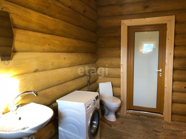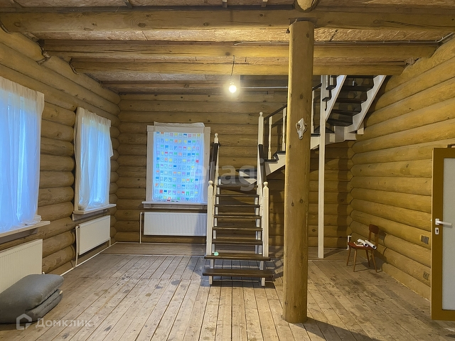 В доме установлены два сан. узла на первом и втором этаже с душем и тёплым полом. А также большие и красивые окна для дополнительного естественного освещения. Дом как и банный комплекс выполнены из оцилиндрованного бревна.
