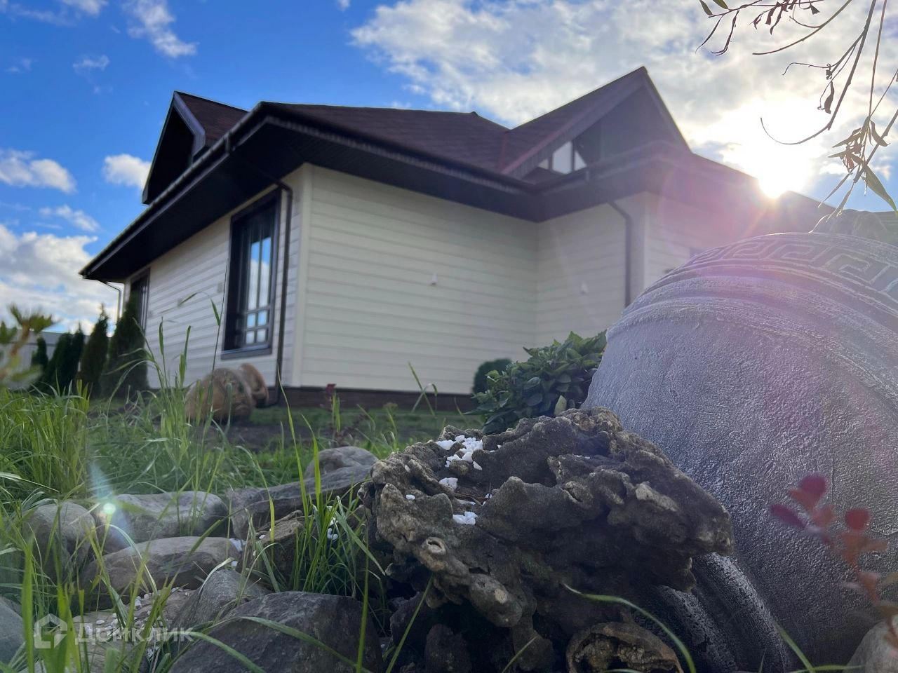 Дом расположен на участке ИжС общей площадью 12,5 соток.Участок благоустроен,выложен тротуарной плиткой,засеян газон,сделано освещение всего участка и дома.