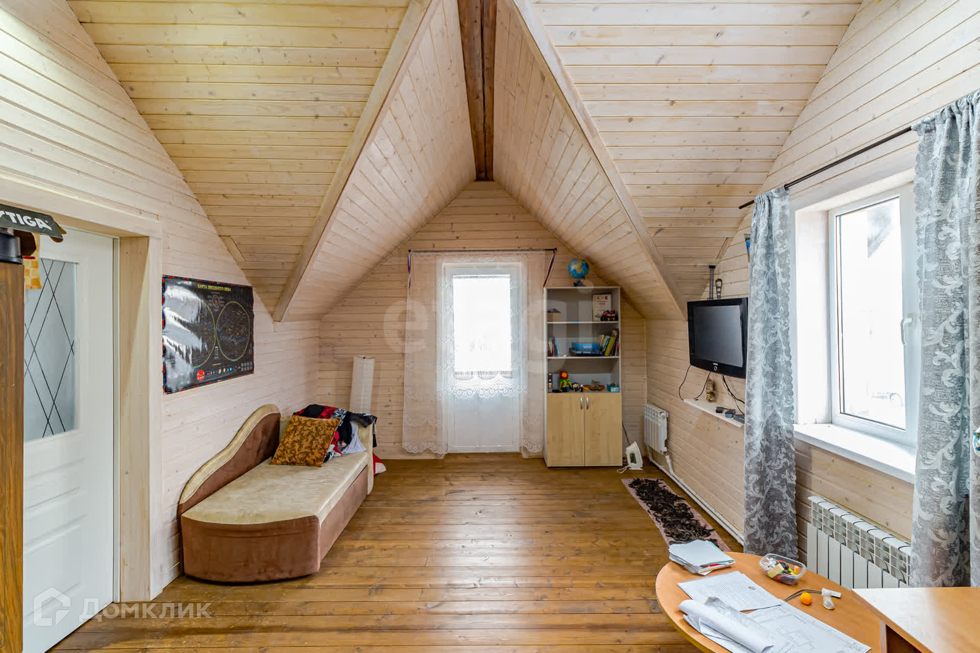 Выполнен косметический ремонт: полы на первом этаже линолеум, потолки - панели, на втором этаже комнаты отделаны деревом. Окна пластик.
