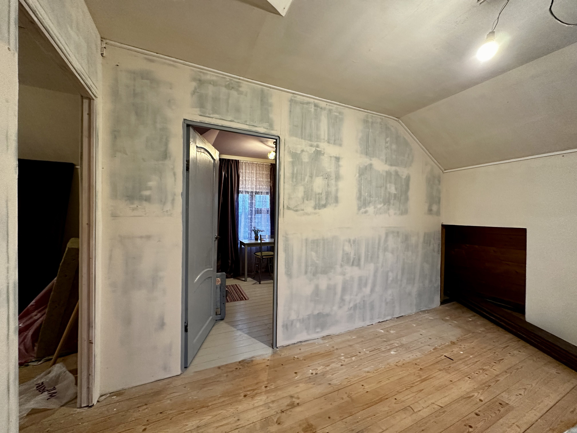Второй этаж не отделан, за исключением одной комнаты (видно на фото)