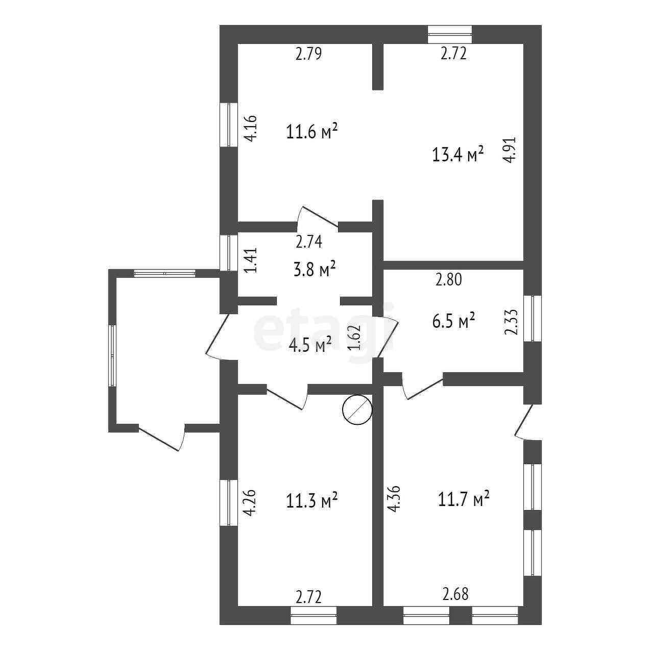 Общая площадь 62.8 м2