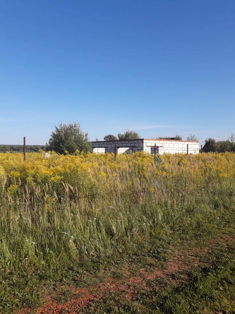 Продается участок, по всему периметру установлены металлические столбы и перемычки для ограждения забором. Недостроенный  гараж из пеноблоков, 70 кв.м без крыши и ворот  . Газ по фасаду. Тех.условия на свет. Выход с  участка на речку. Подъезд круглогодичный. Рядом лес. Хорошая транспортная развязка. Отличное место. В деревне магазин. Хорошие соседи.