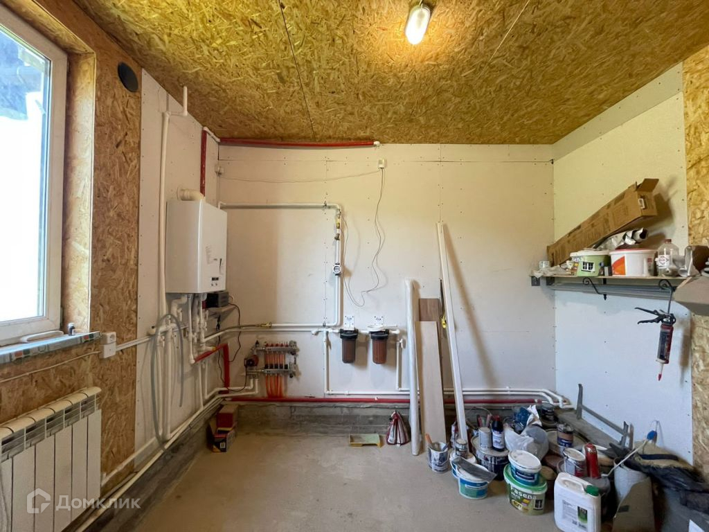 Коммуникации - электричество 15 кВт, скважина 64 метра, магистральный газ, отопление первого этажа теплый пол, на втором - радиаторы, септик. На первом этаже в прихожей, с/у и кухонной зоне выложена плитка. В остальных помещения ламинат.