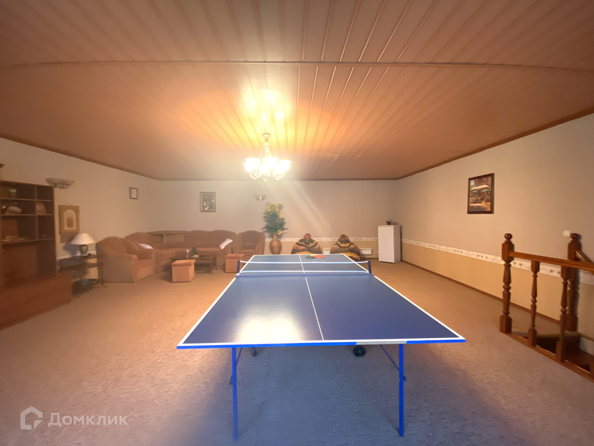 Банный комплекс: бассейн 5 на 5 м, отапливается газом, 40 куб.м воды, вода +30 градусов, стоит импортное оборудование. На 2 эт.расположены: мягкая мебель, теннисный стол,холодильник,СВЧ,ТВ и т.п.