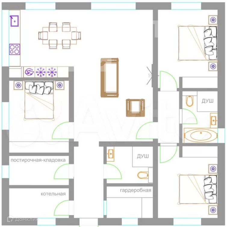 В доме 3 спальни, просторная кухня-гостиная, 2 санузла, 1 гардеробная, 1 прачечная, котельная. Удобный асфальтированный заезд на территорию.