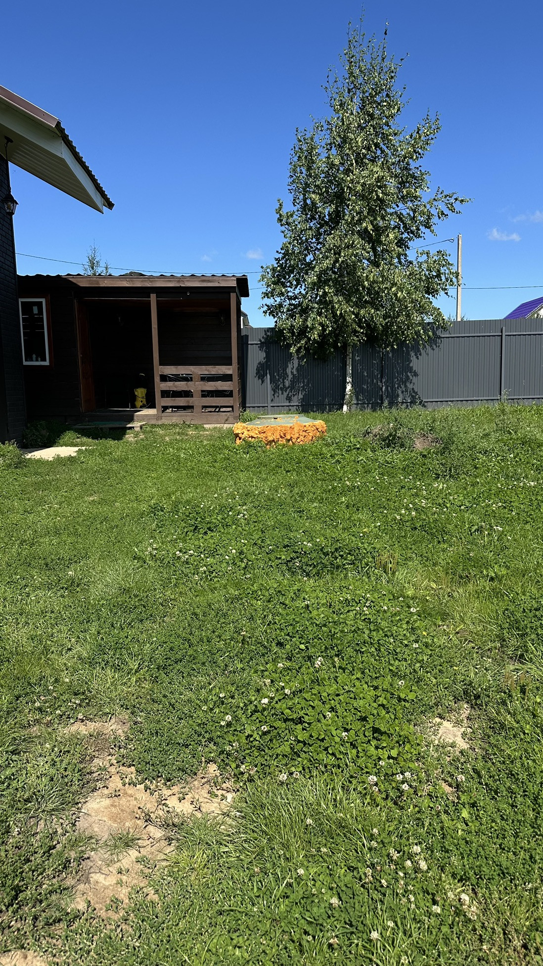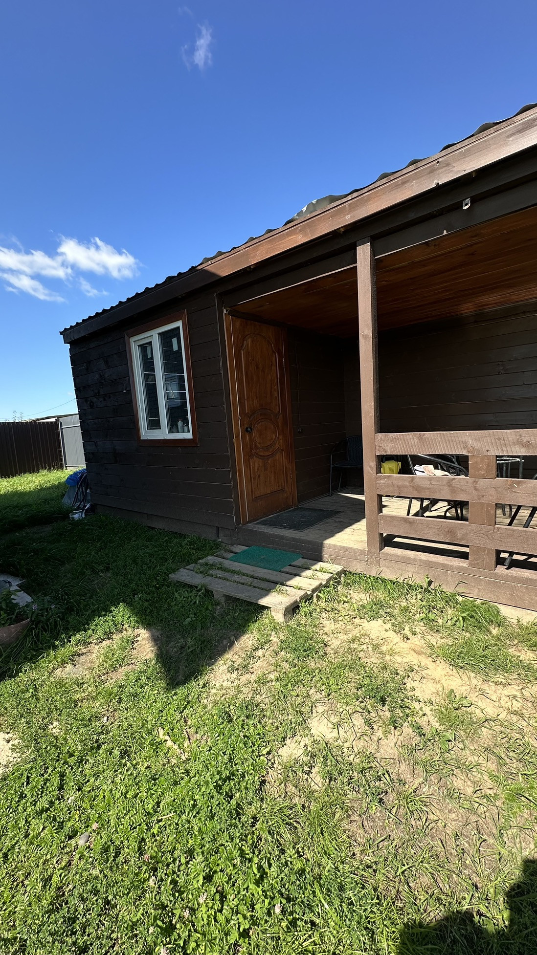 Участок 8 соток, ухоженный, ровный и сухой. Имеется хоз.постройка с верандой. По всему периметру огорожен забором, ворота автоматические (открываются с пульта).