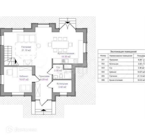 1 этаж: Холл, гостиная, кухня, санузел, техническое помещение