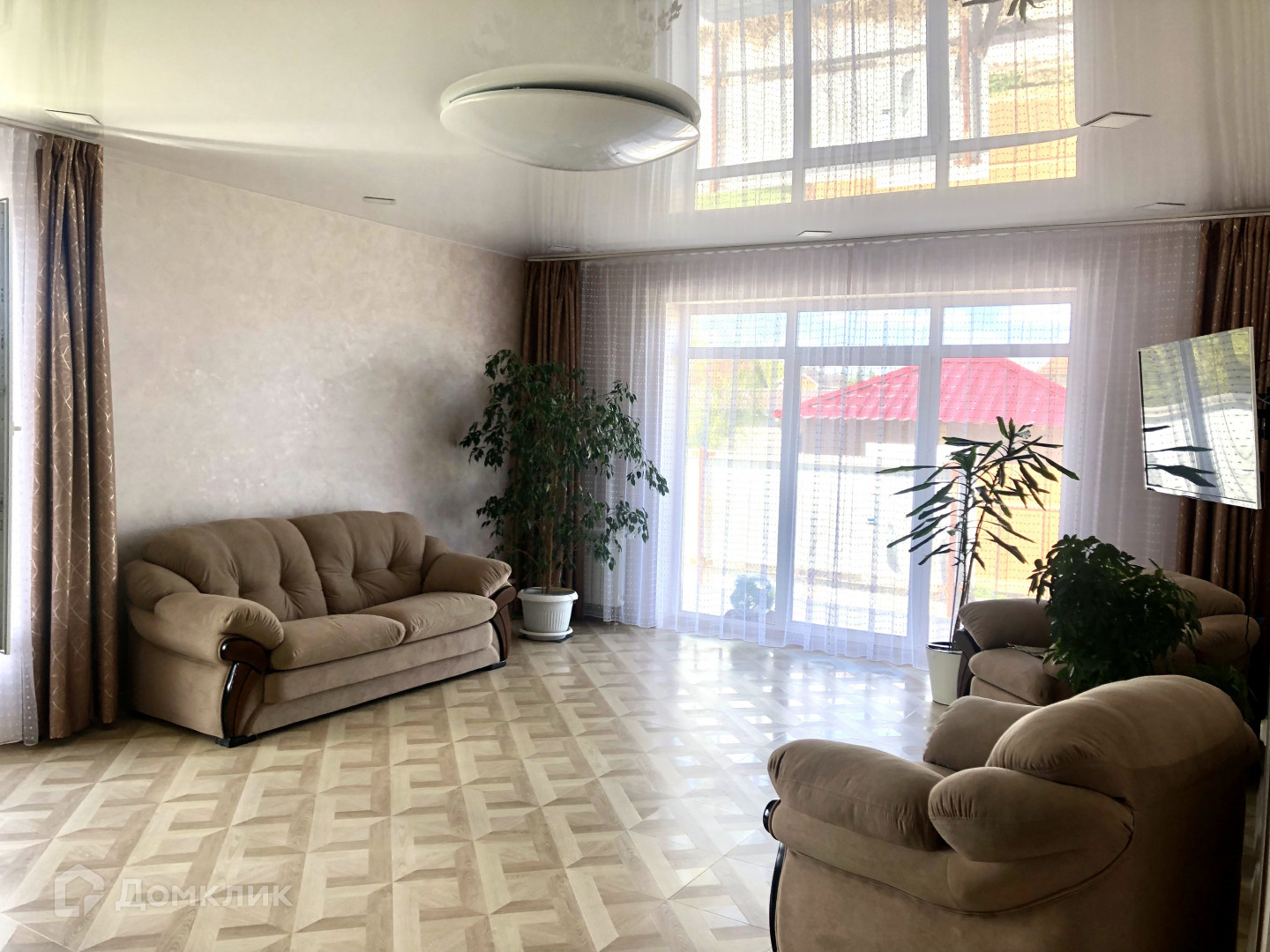 В доме сделан новый евроремонт, отделан фасад, кухонный гарнитур новый, качественный ламинат, плитка в санузле, окна ПВХ, поклеены обои, из гостиной есть выход во двор на террасу.