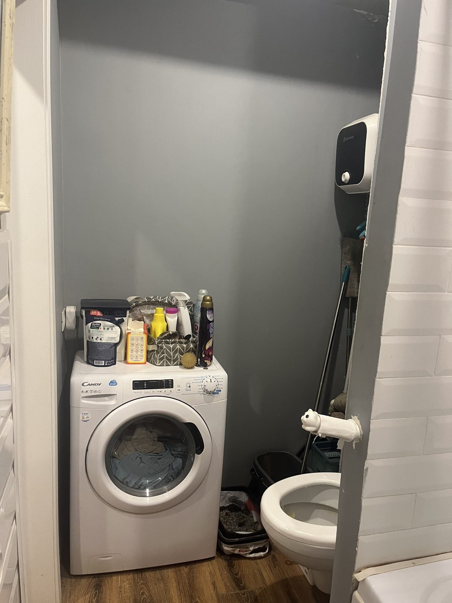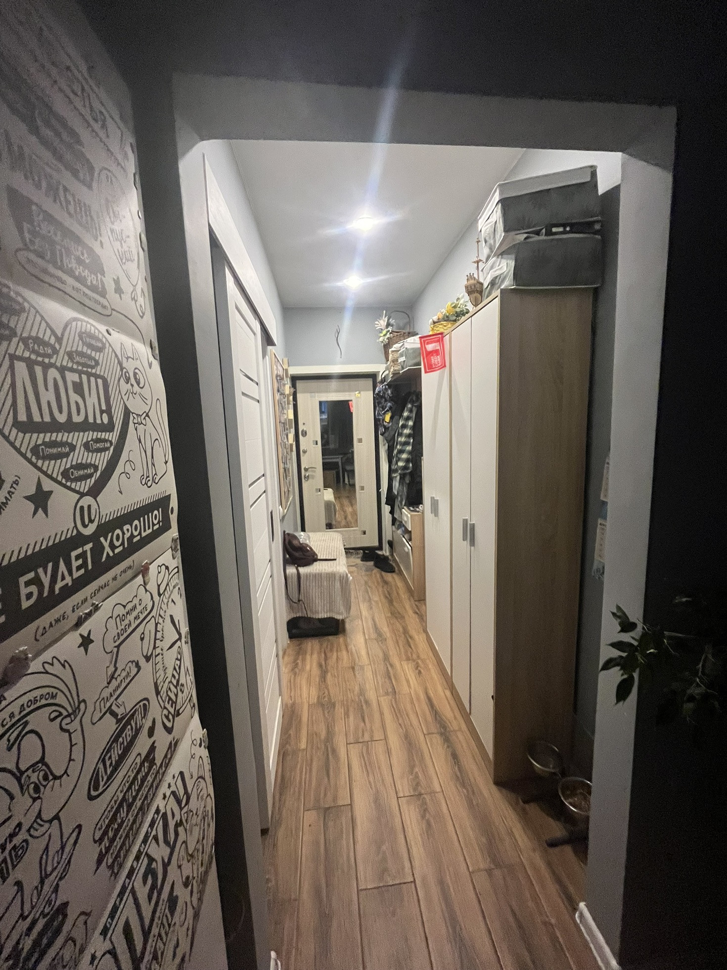 Отопление автономное, на радиаторах терморегуляторы. Все счетчики в подьезде за дверью. Соседи хорошие.