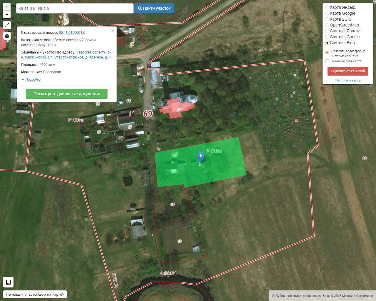 Красное, сельское поселение Старобисловское, Калязинский район. Земельный участок 41 сотка. Прошел процедуру межевания в Росреестре. Границы установлены в новой системе координат. Кадастровый номер: 69:11:0150601:5 (4100 кв.м). В черте улицы деревни. Категория: земли населенных пунктов. До берега Жабни 150 метров. Территория огорожена: выполнена подготовка к лицевому забору (железные столбы), а со стороны церкви - кирпичный забор. Участок граничит забором с действующей церковью Казанской иконы Божией Матери. Историческое место. Год постройки между 1794 и 1808 годами. В советское время церковь не закрывалась. Круглогодичный подъезд. До Калязина 15 км. От МКАД 175 км.