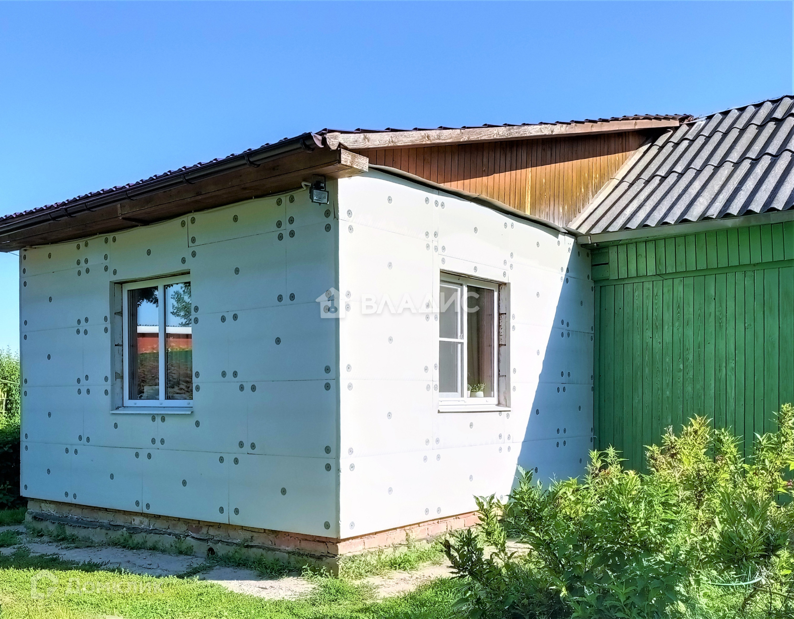 Дом частично из бревна, основная часть пеноблок с утеплением, на ленточном фундаменте, крыша частично шифер с металлочерепицей.