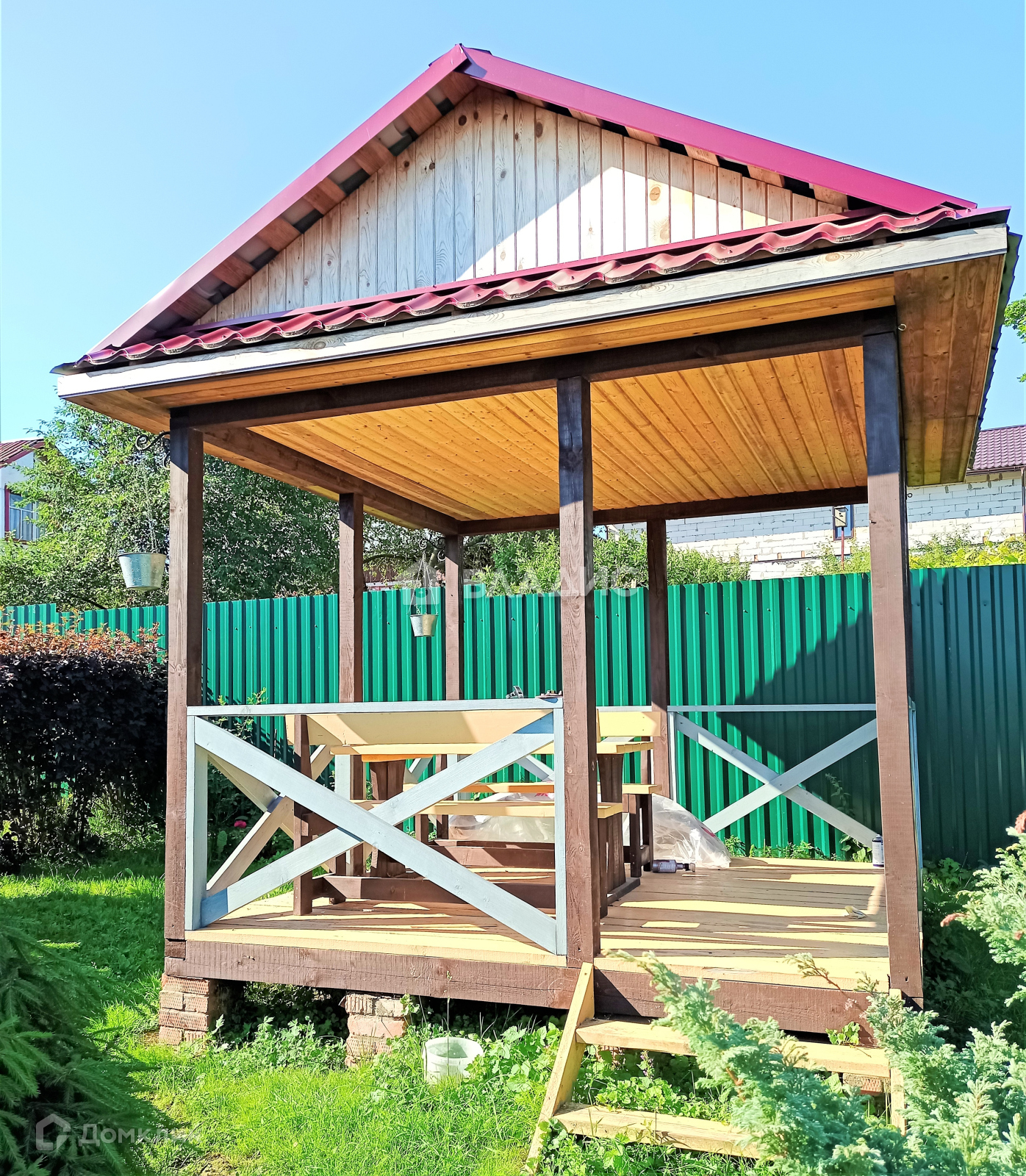 Участок находиться на возвышенности, огорожен и облагорожен, стоянка под машину, летняя терраса, много молодых плодовых и ягодных деревьев, хороший круглогодичный подъезд.