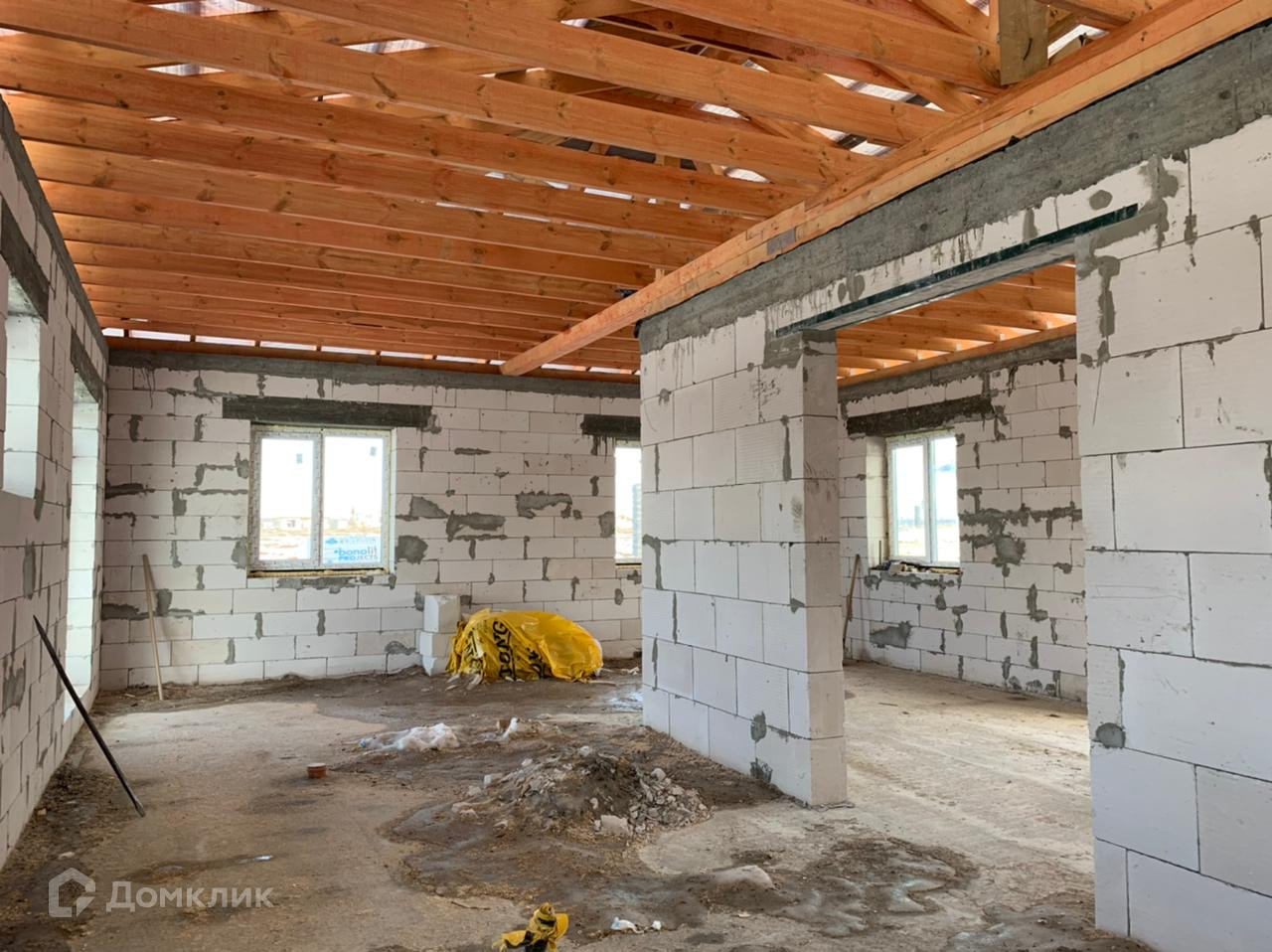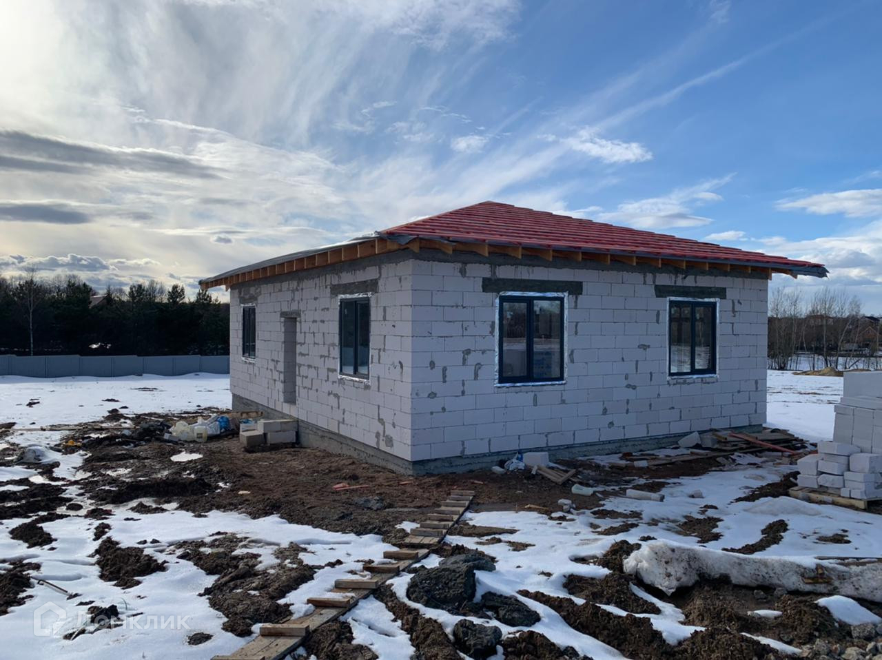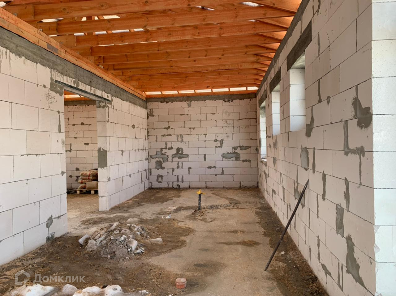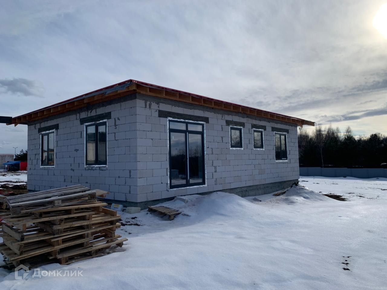 Ленточный фундамент. Окна стеклопакет. Дом сдается под отделку, при желании можно все сделать под ключ по индивидуальному проекту. Газ в поселке есть. В поселке еще много свободных участков, можете выбрать любой понравившийся и построить там подобный дом по индивидуальному проекту.