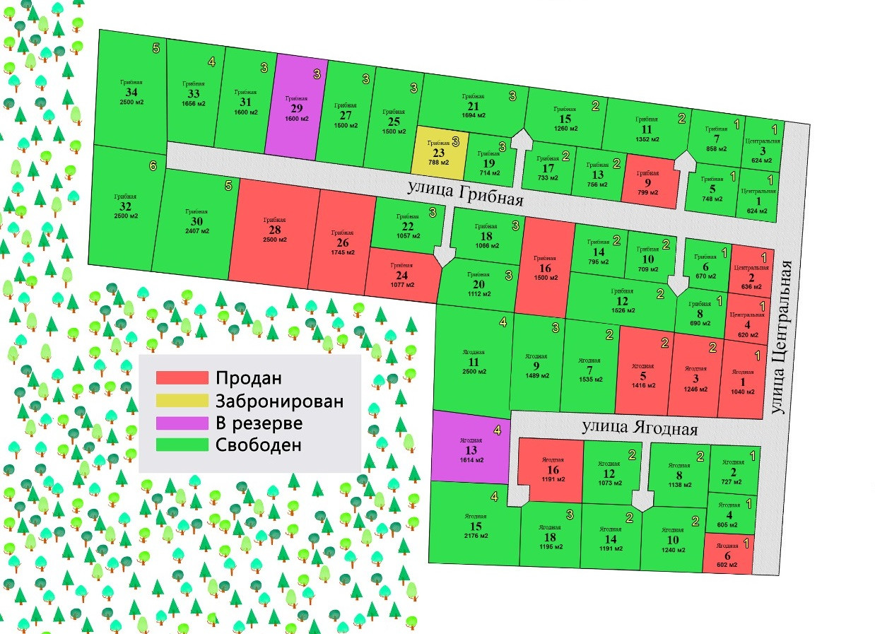 Посёлок абсолютно новый , участки на продаже только в первой очереди. Количество участков ограничено. В посёлке уже строятся дома .Ваш будущий адрес- улица Ягодная, дом 12.