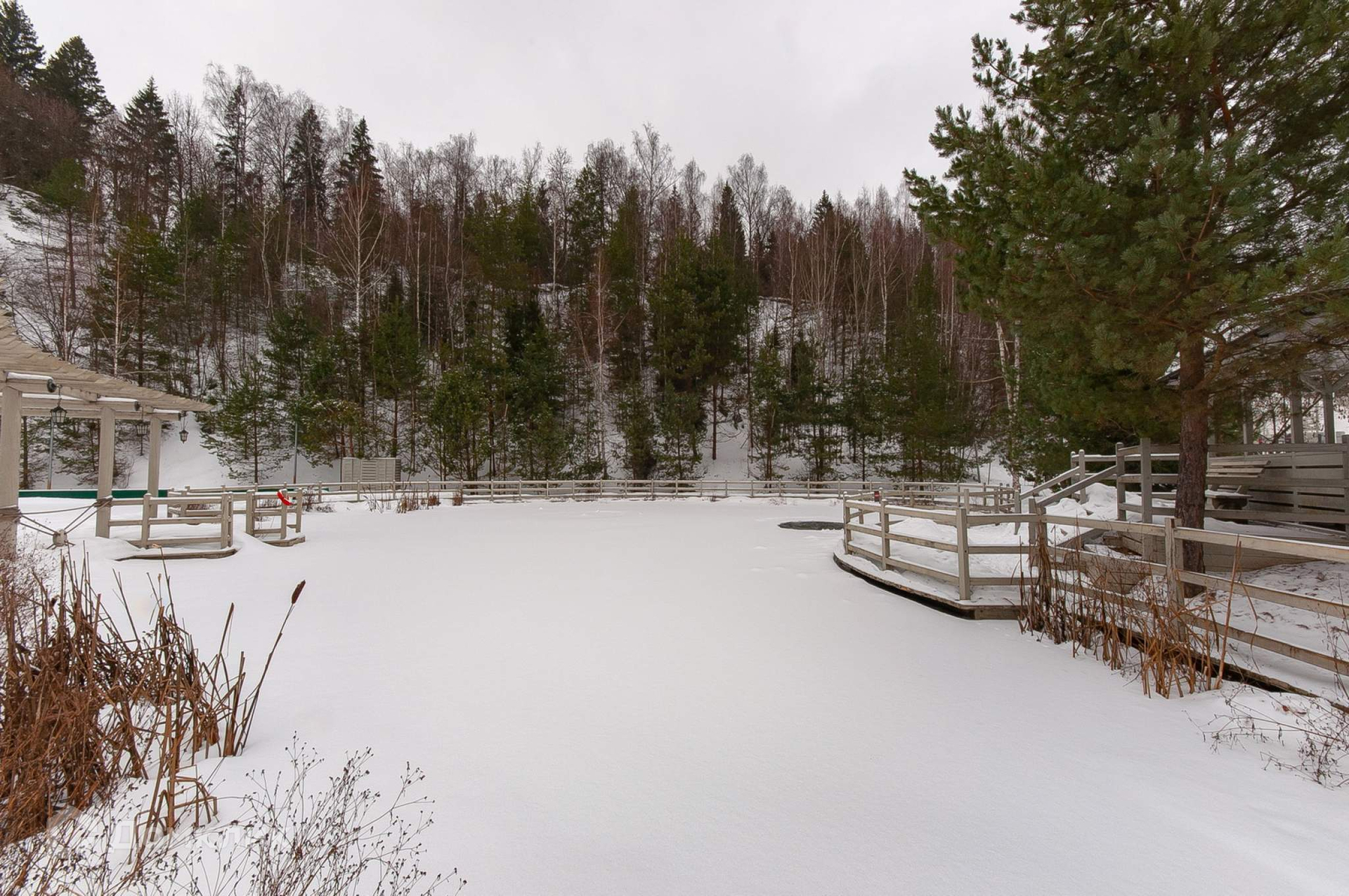 В поселке собственный выход в лесной массив, теннисный корт, площадка для спортивных игр (хоккей/футбол/баскетбол), сезонный каток, детские площадки. Просторная гостевая парковка.
