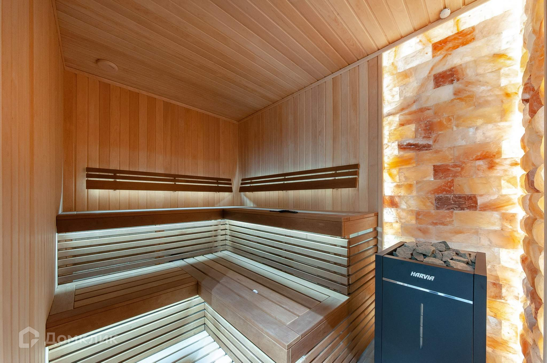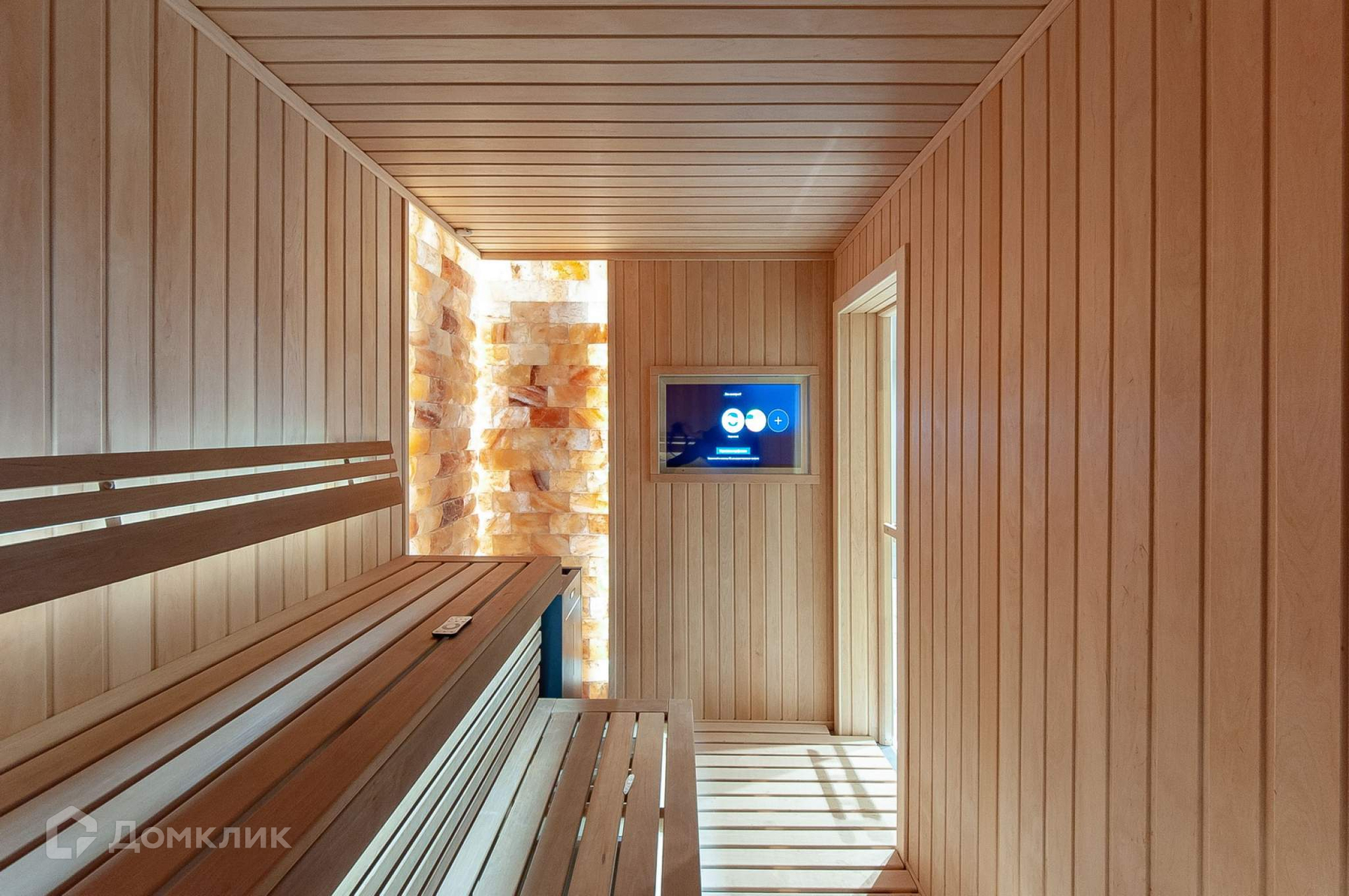 Сауна – электрическая. Двусторонняя зона ТВ – комната отдыха/парная.