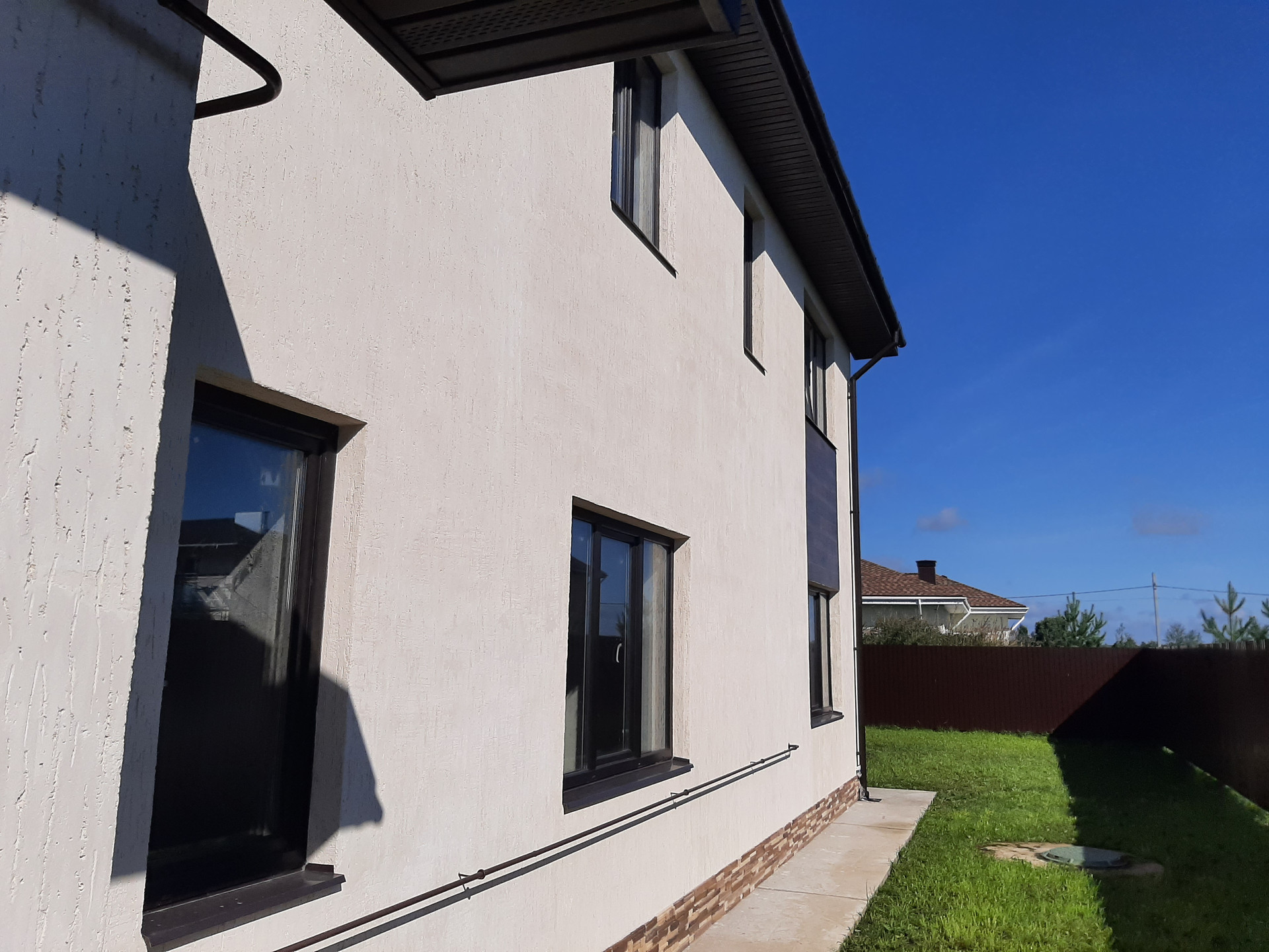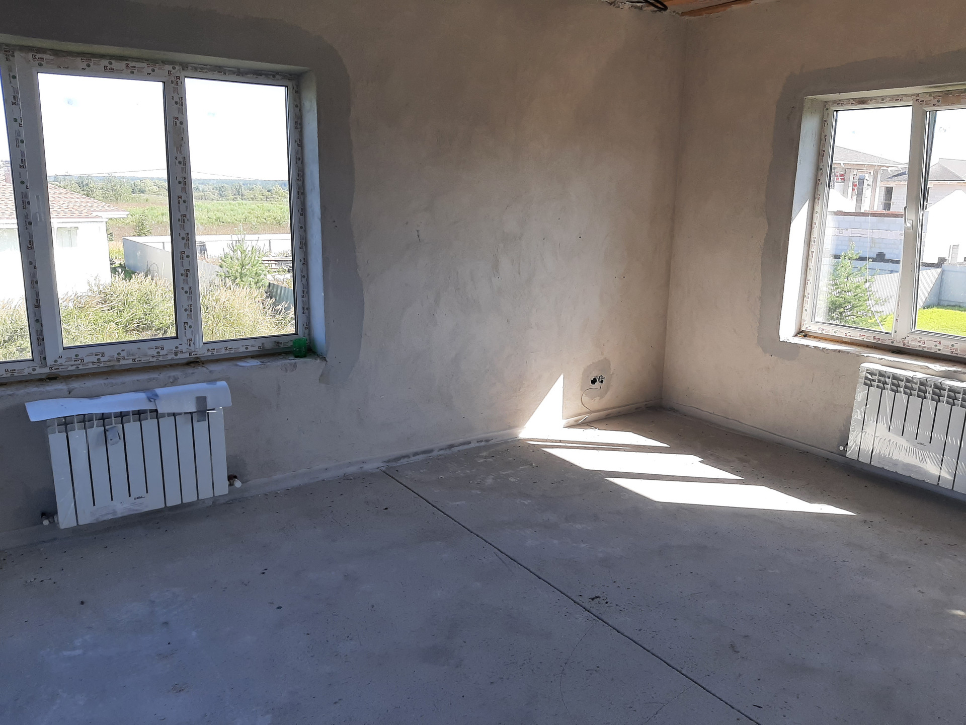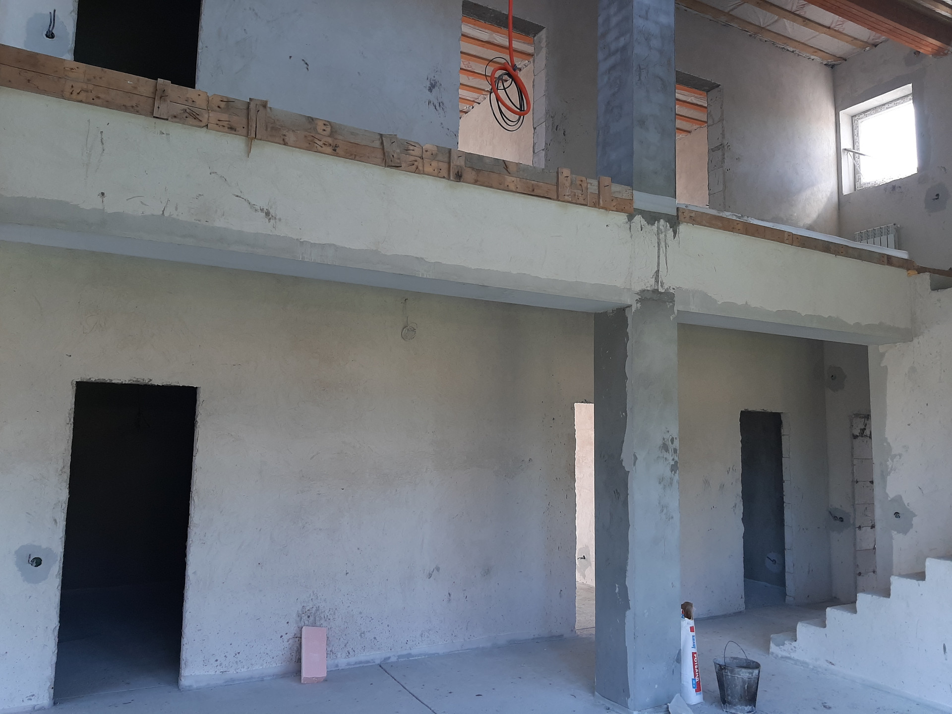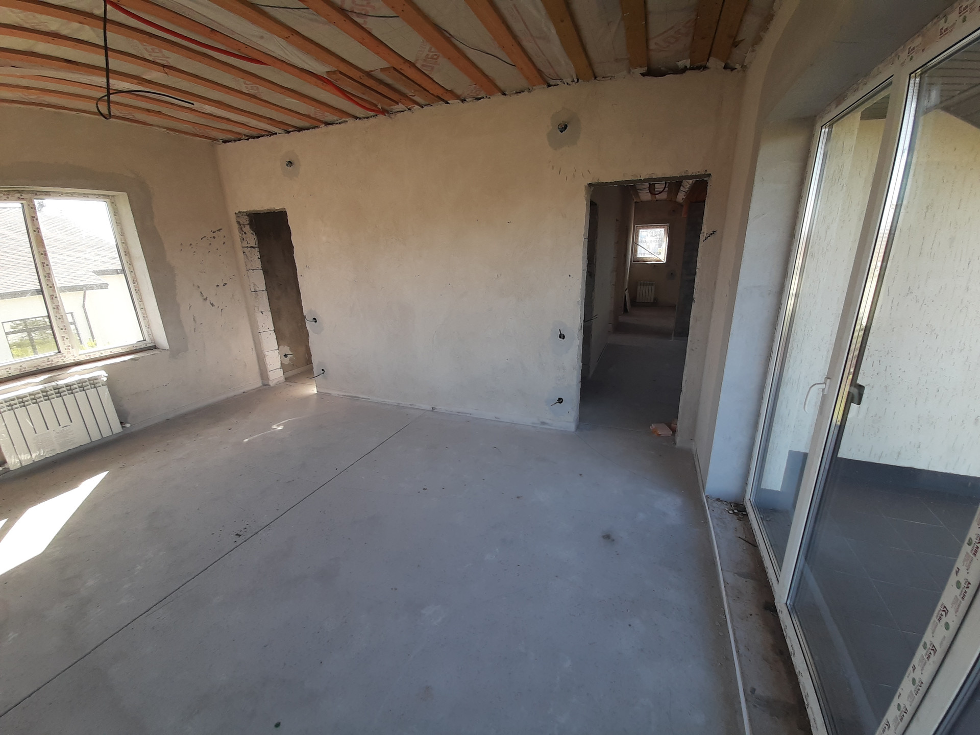 Коммуникации: Водоснабжение – скважина, Электроэнергия 15 кВт; Канализация - септик. Отопление – индивидуальное газовое, теплые полы на 1 и 2 этаже, радиаторы отопления, сделана разводка электричества и интернета, газа, отопления, водоснабжения и водоотведения. Полностью смонтирована котельная с оборудованием. Стяжка пола, стены оштукатурены. Окна ПВХ, профиль КВЕ. Второй свет. Дом полностью готов к финишной отделке.