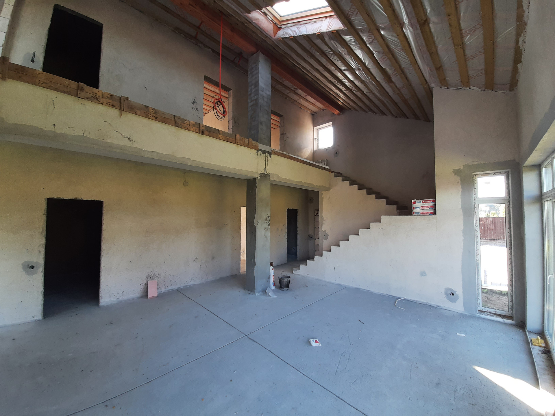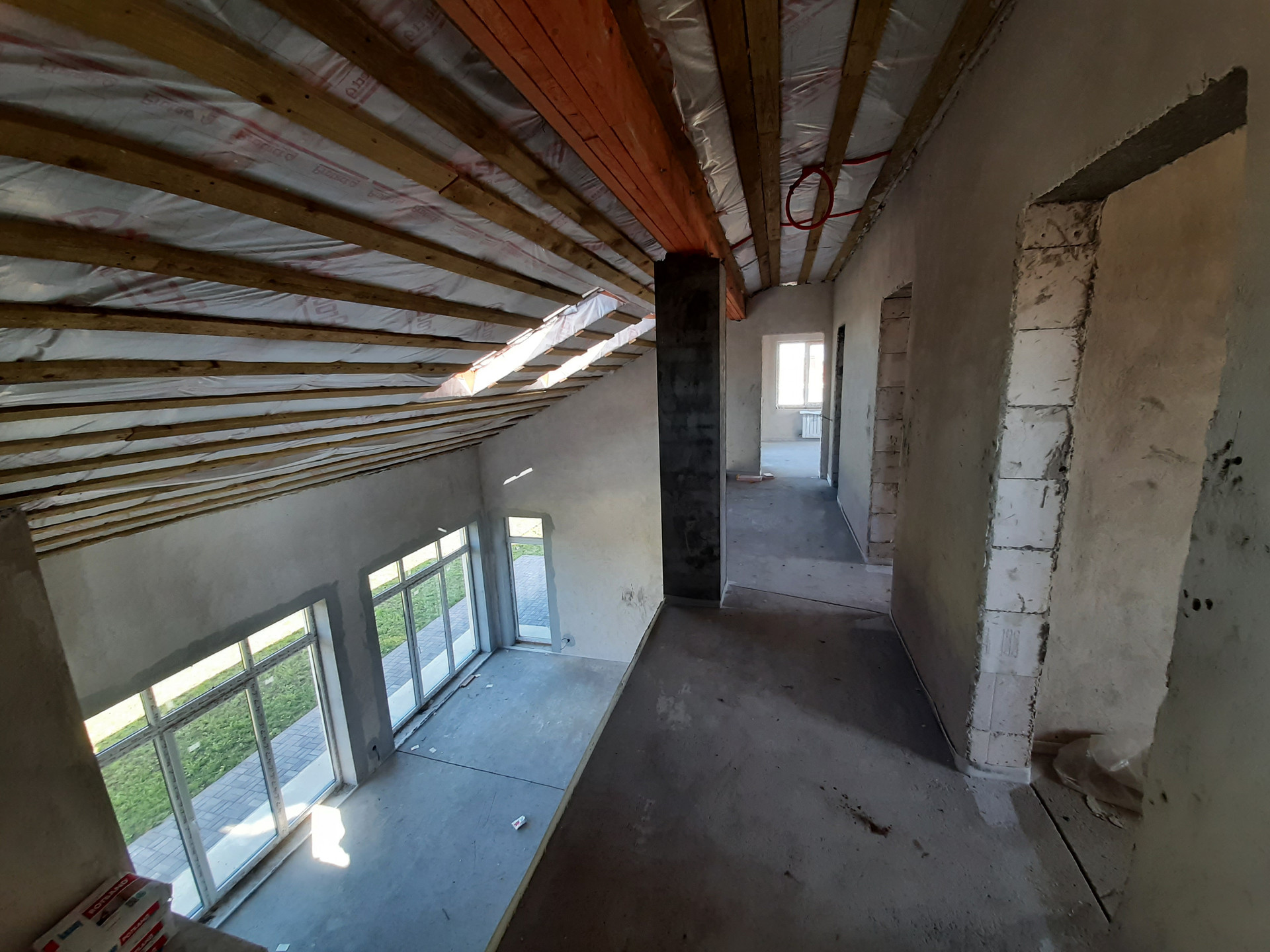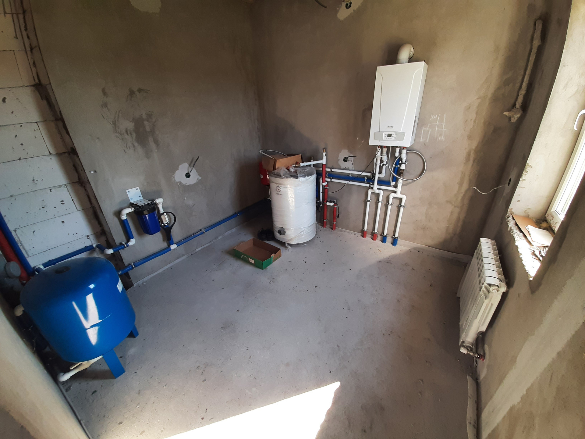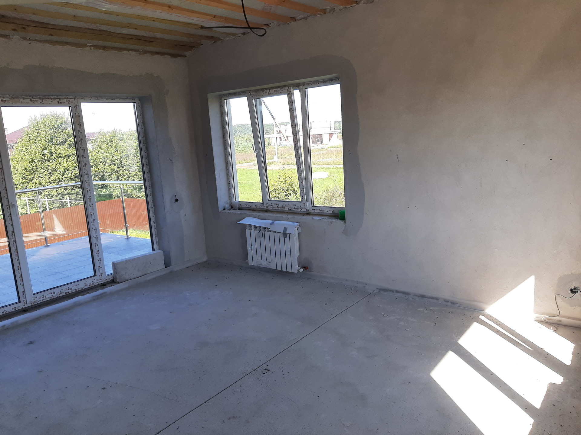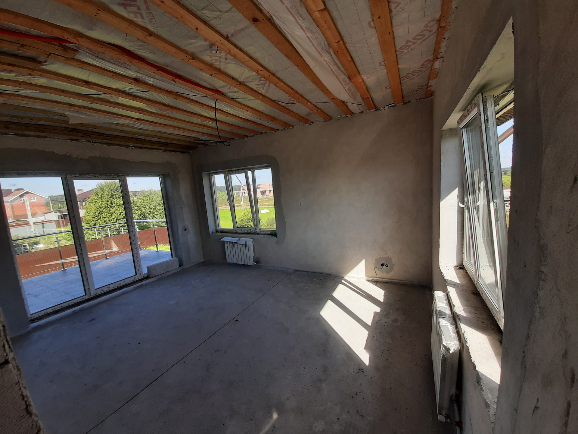 Коммуникации: Водоснабжение – скважина, Электроэнергия 15 кВт; Канализация - септик. Отопление – индивидуальное газовое, теплые полы на 1 и 2 этаже, радиаторы отопления, сделана разводка электричества и интернета, газа, отопления, водоснабжения и водоотведения. Полностью смонтирована котельная с оборудованием. Стяжка пола, стены оштукатурены. Окна ПВХ, профиль КВЕ. Второй свет. Дом полностью готов к финишной отделке.