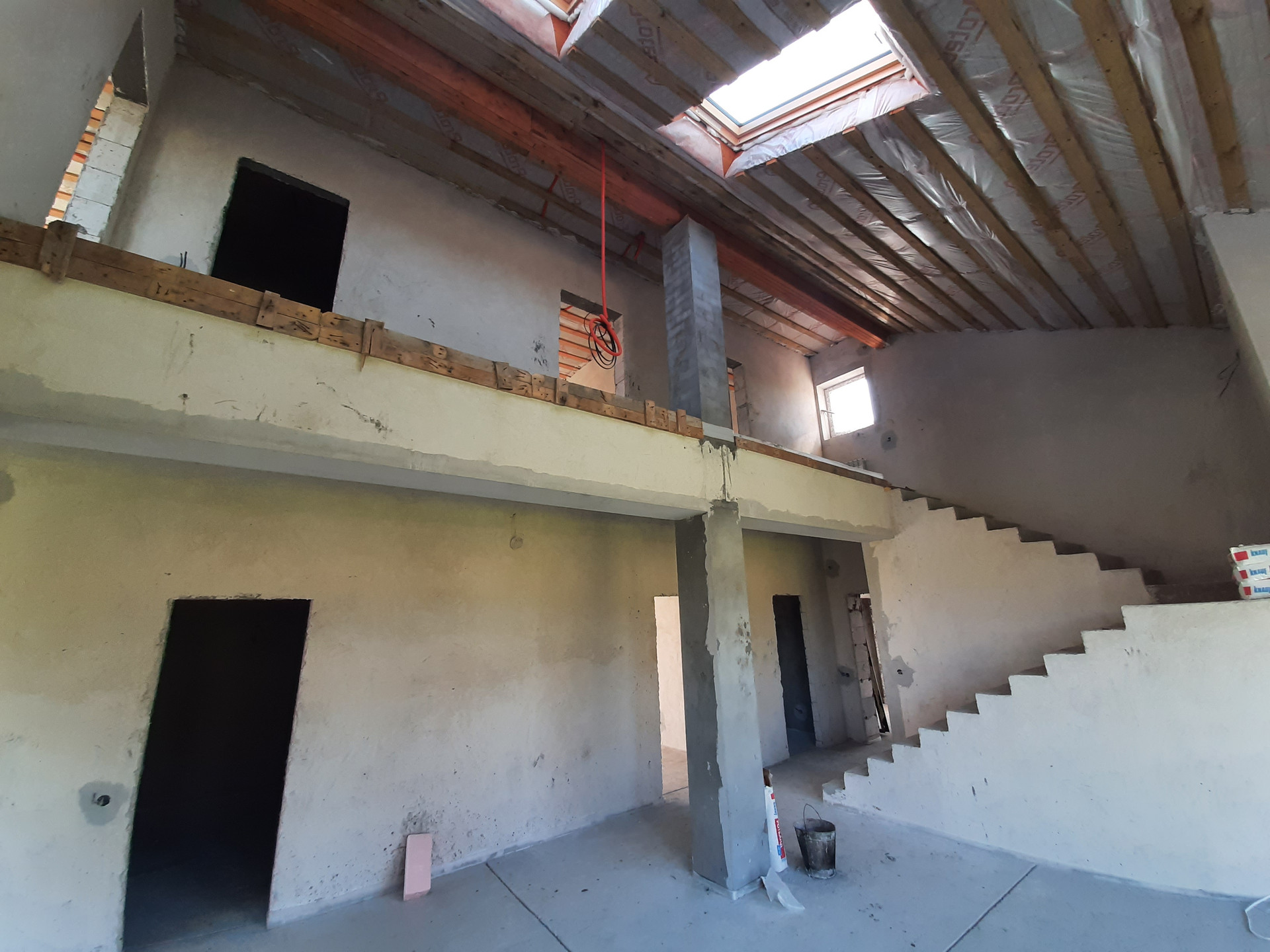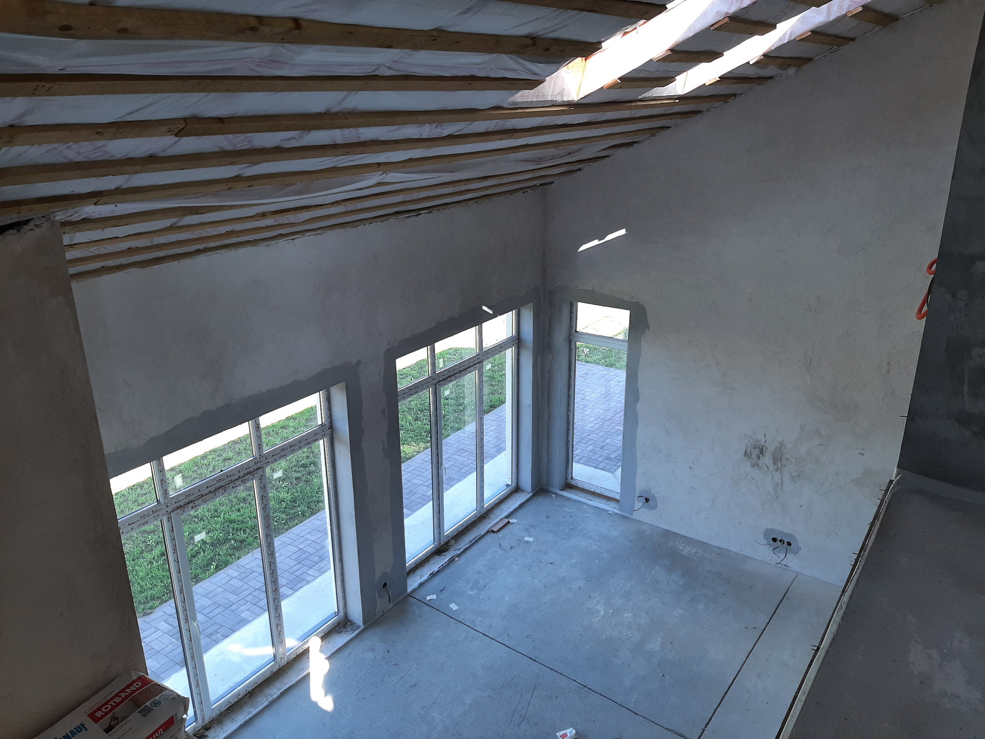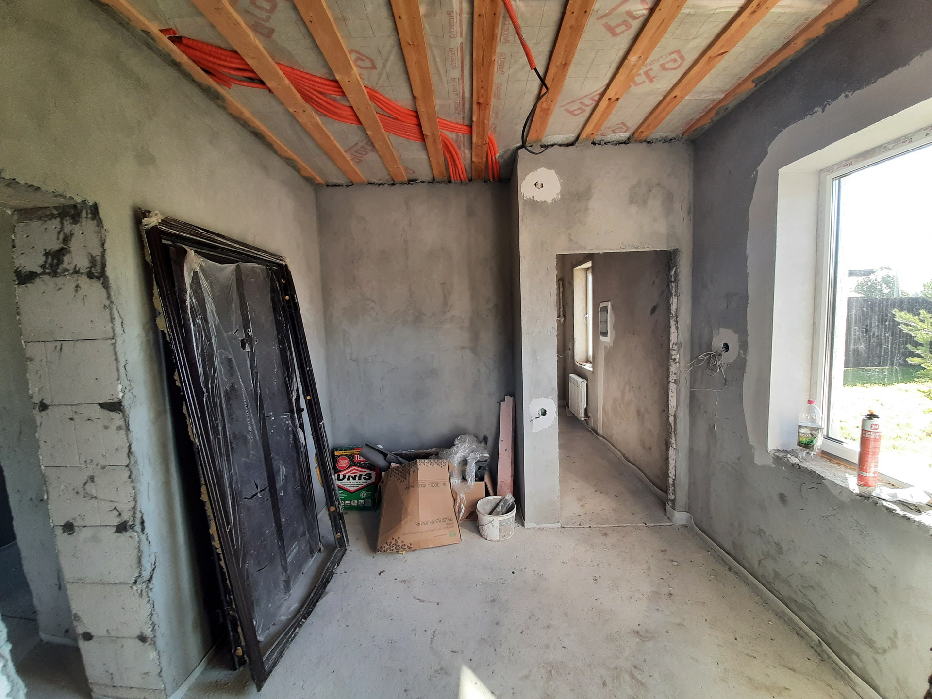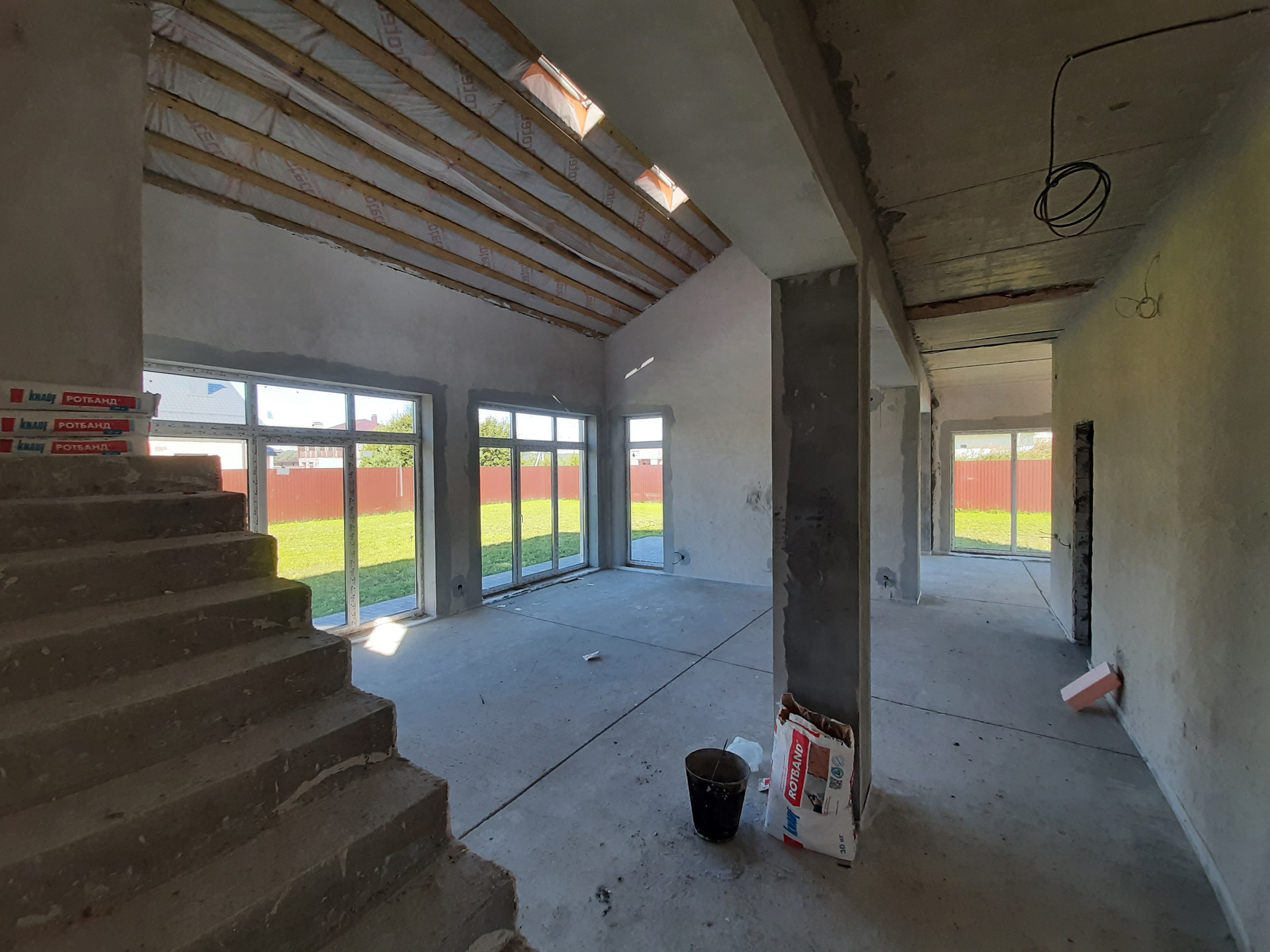 Коммуникации: Водоснабжение – скважина, Электроэнергия 15 кВт; Канализация - септик. Отопление – индивидуальное газовое, теплые полы на 1 и 2 этаже, радиаторы отопления, сделана разводка электричества и интернета, газа, отопления, водоснабжения и водоотведения. Полностью смонтирована котельная с оборудованием. Стяжка пола, стены оштукатурены. Окна ПВХ, профиль КВЕ. Второй свет. Дом полностью готов к финишной отделке.