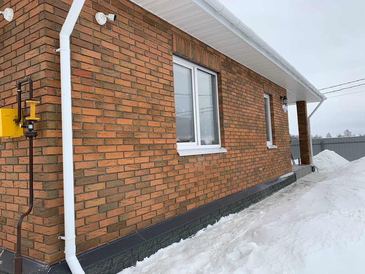 - Стены газосиликатный блок ЭКО 400 мм с облицовкой кирпичом «Браер» (баварская кладка);