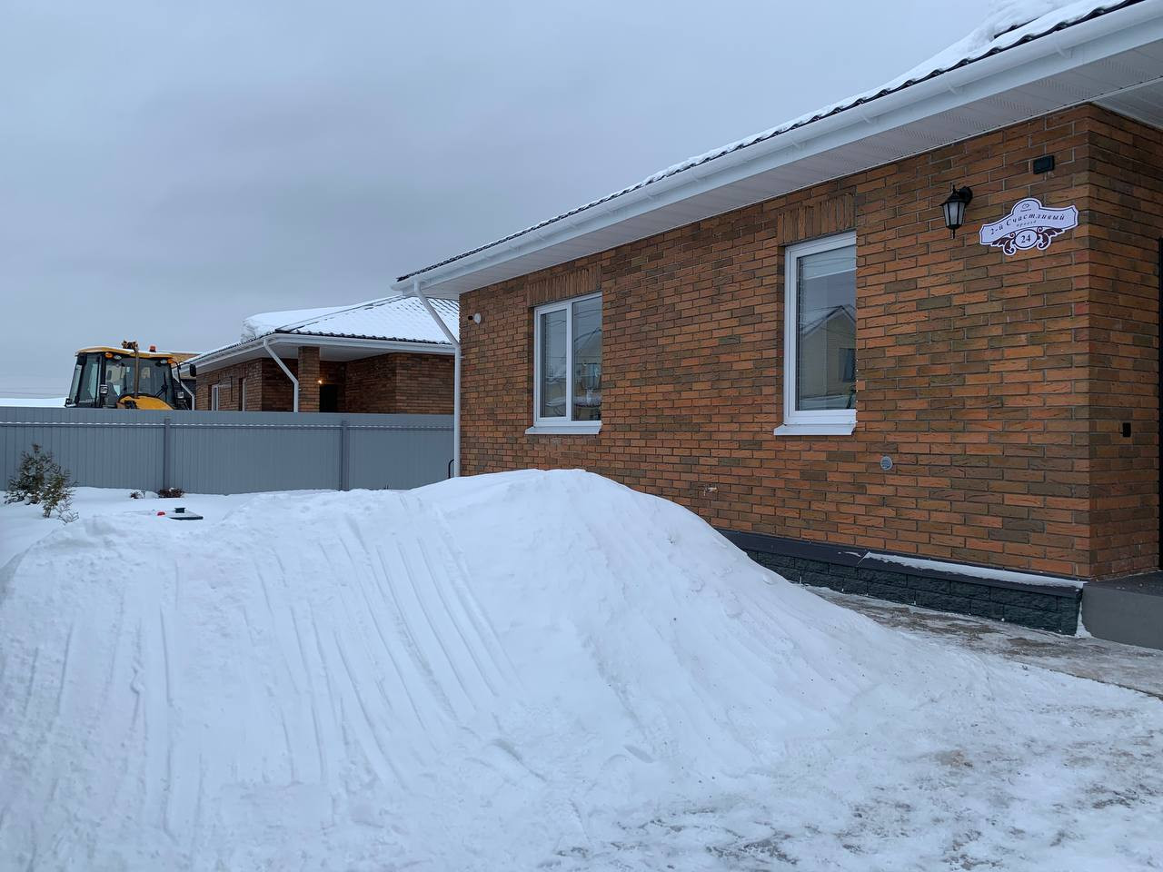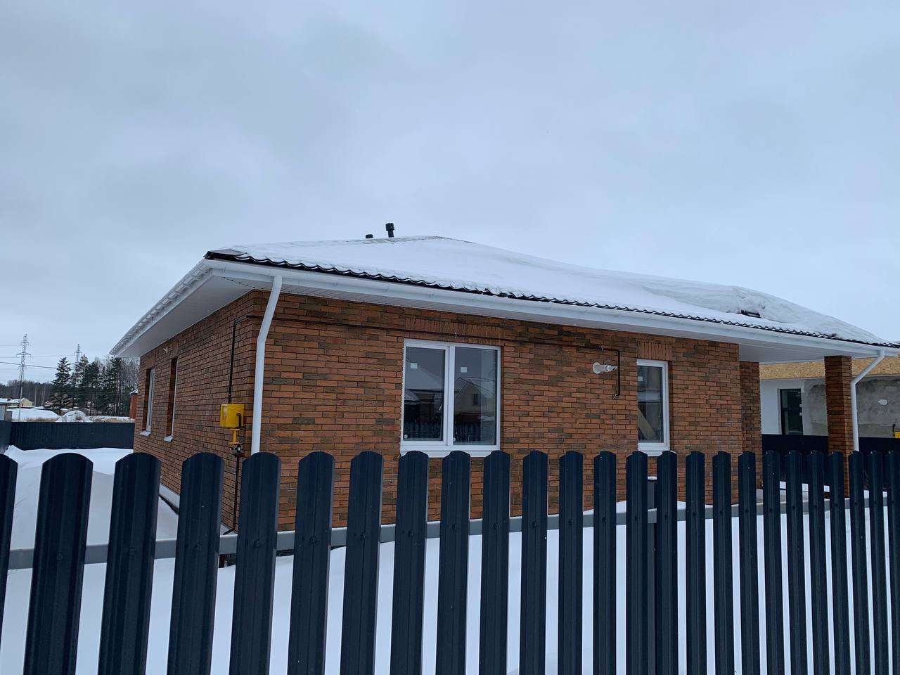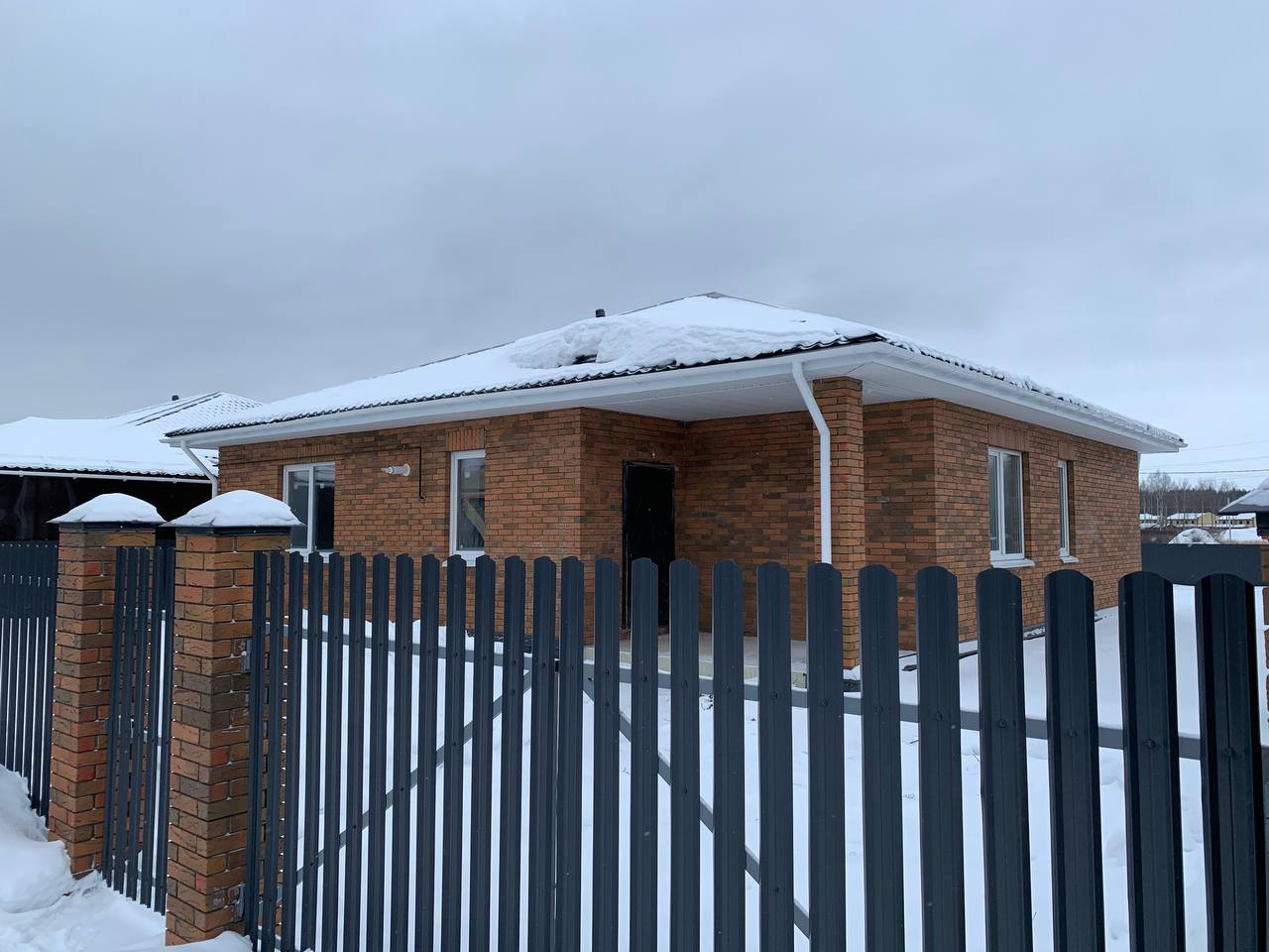 - Забор по фасаду кирпичные столбы и евро-штакетник, по периметру профлист высотой 1.7м;