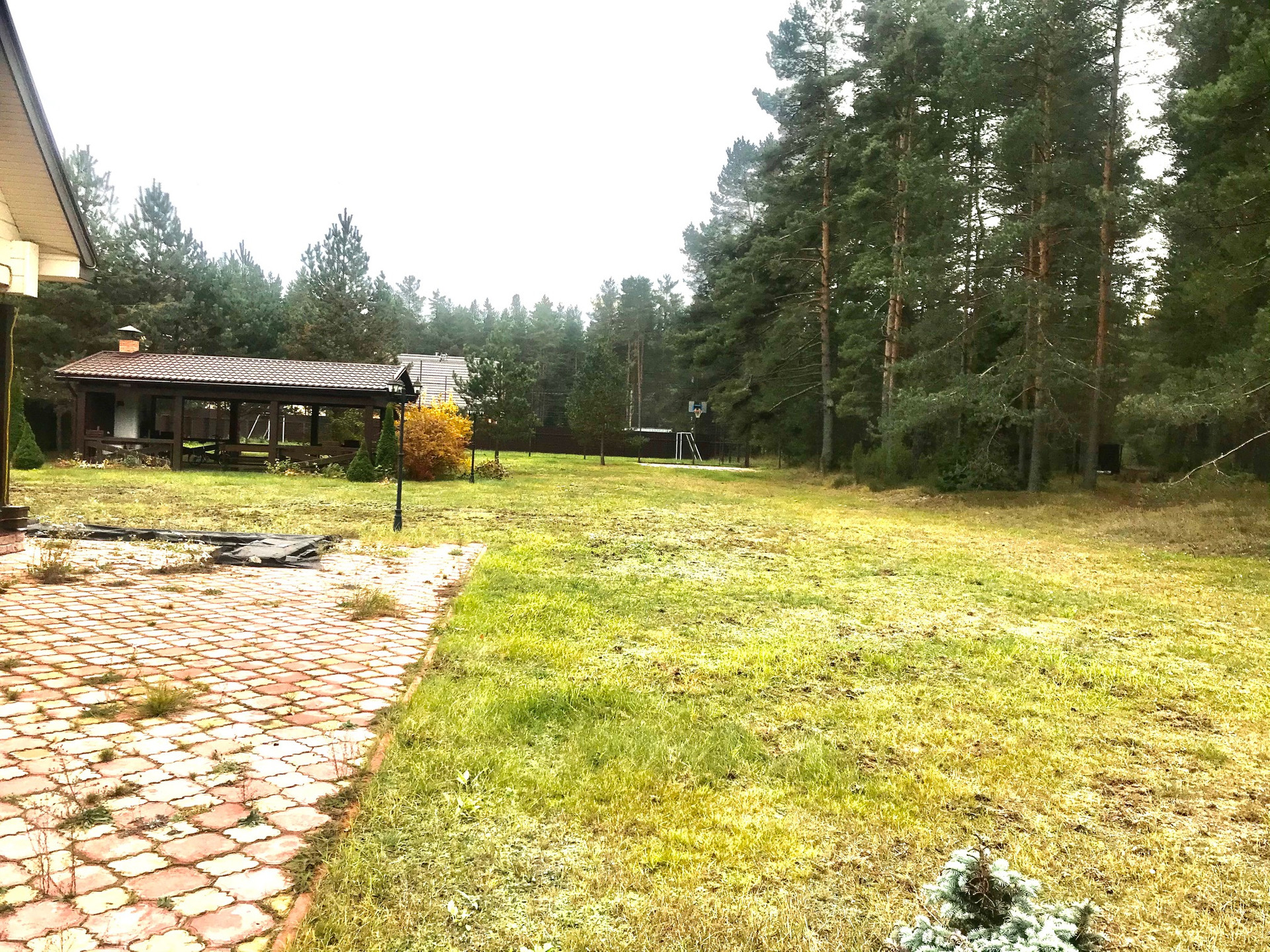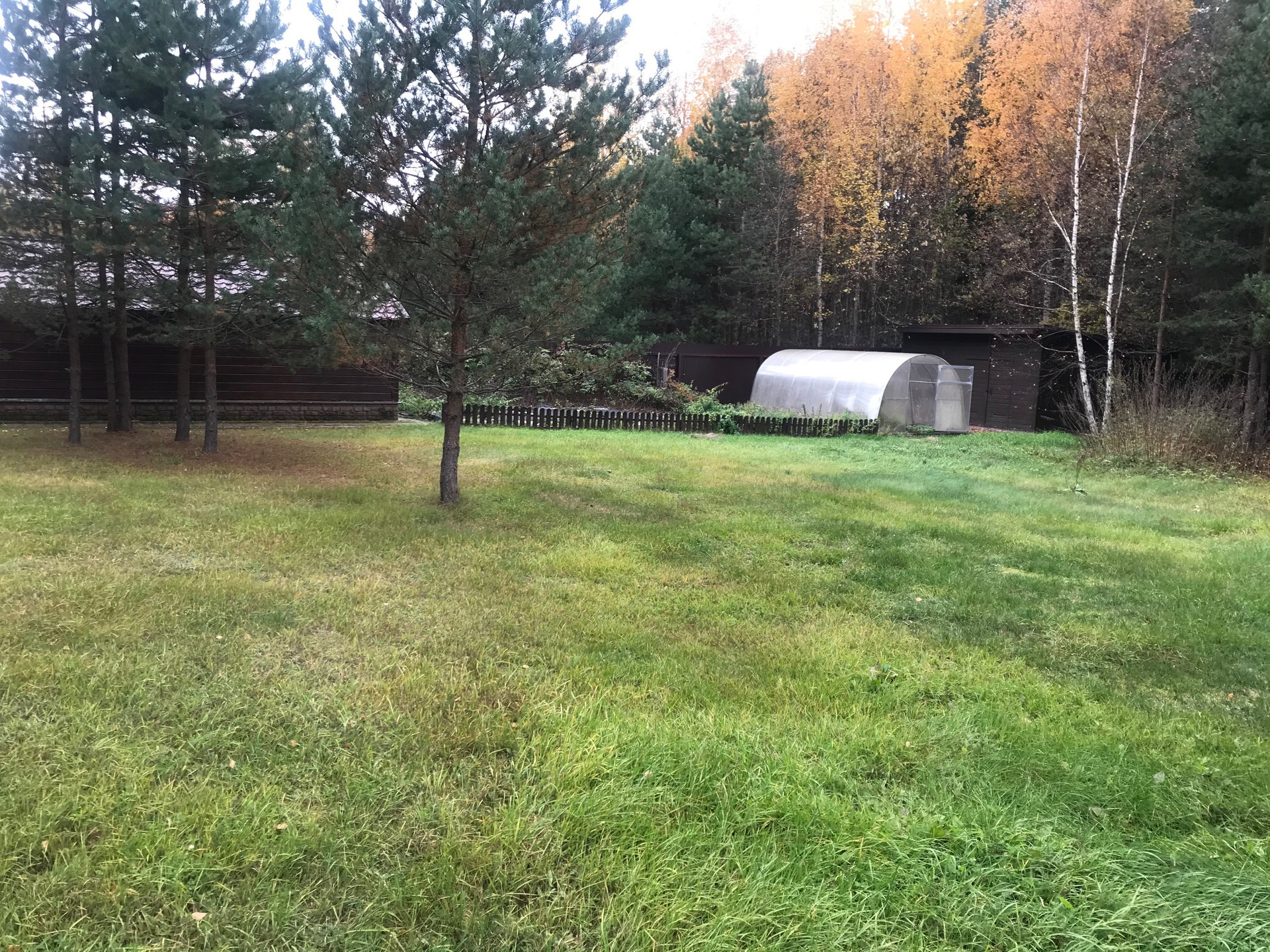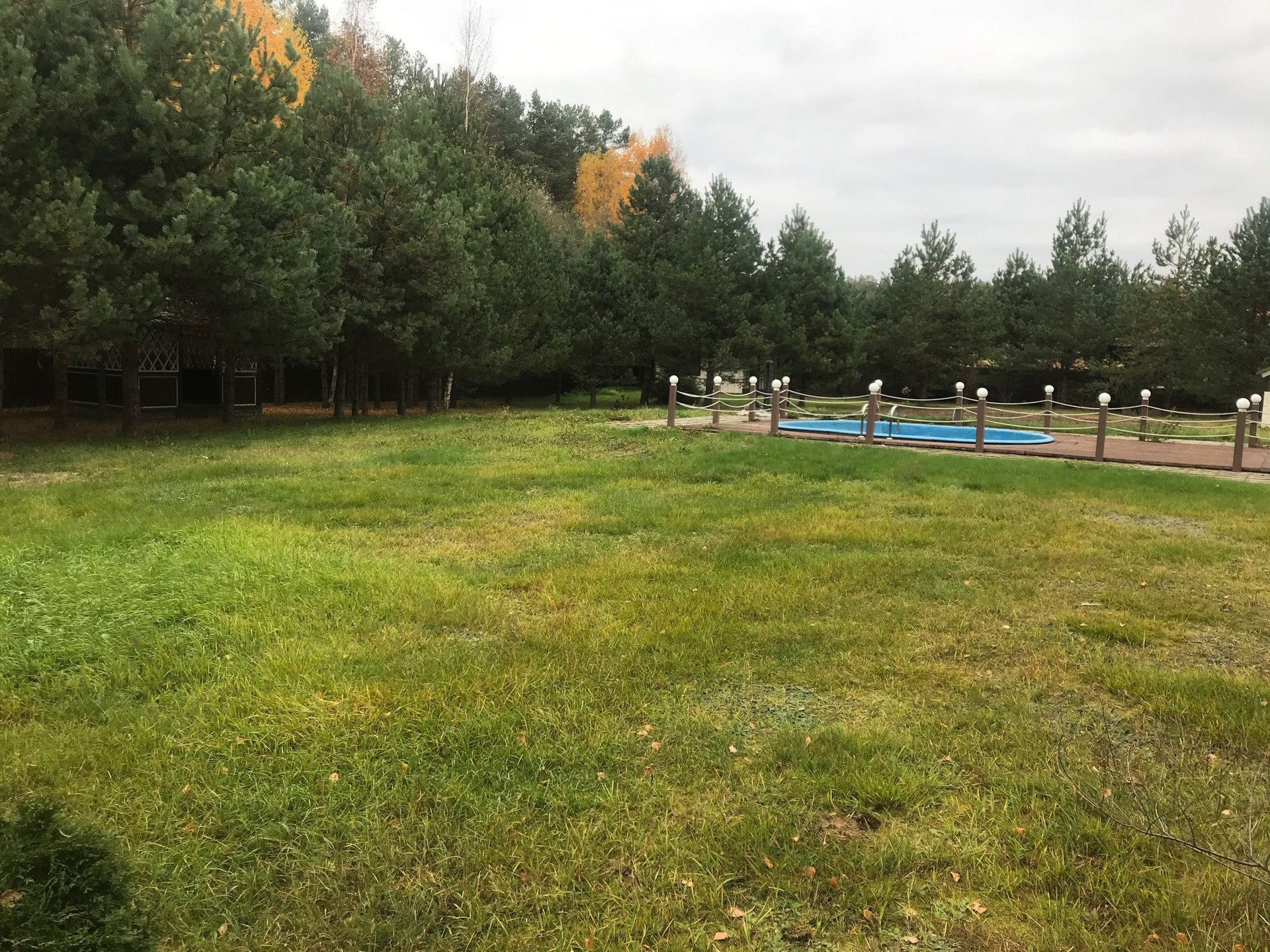 Огромная территория сочетающая в себе выровненные участки с газоном и естественный рельеф с грибами