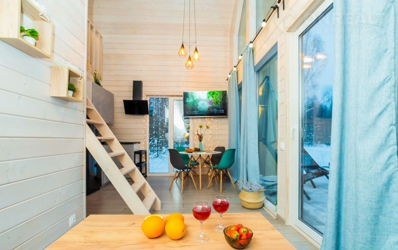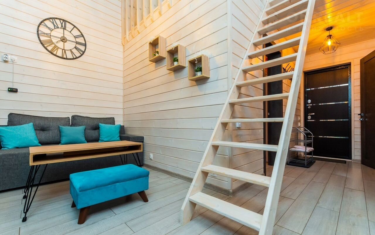 — современный дизайн в стиле скандинавского минимализма, отделка из дерева;