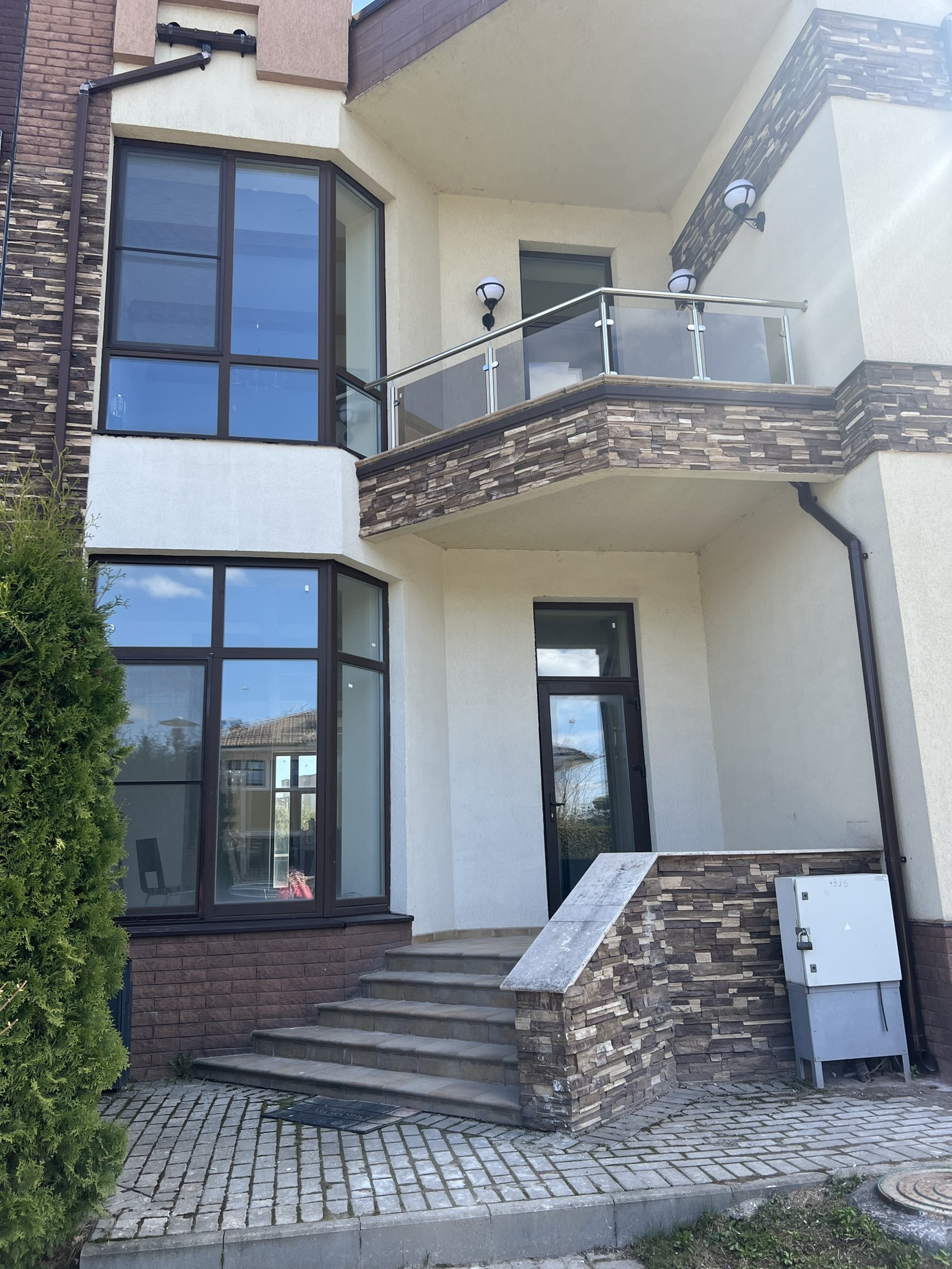 Отличный таунхаус в тихом,спокойном месте в охраняемом коттеджном посёлке ,в экологически чистом районе .Двухуровневый,дизайнерский ремонт ,дорогие строительные материалы панорамные окна,высокие потолки ,мраморные подоконники ,централизованные коммуникации,тёплые полы.современное планировочное решение :1 этаж: прихожая,холл, кухня гостиная ,спальня,с/у,бойлерная; 2 этаж:две спальни ,2с/у,2 гардеробные,комната под зимний сад  очень светлая с панорамными окнами,можно под детскую,кабинет.Ровный,прямоугольный участок.Один взрослый собственник,возможна ипотека . Вся инфраструктура на районе ,удобное транспортное сообщение .инфраструктура посёлка.