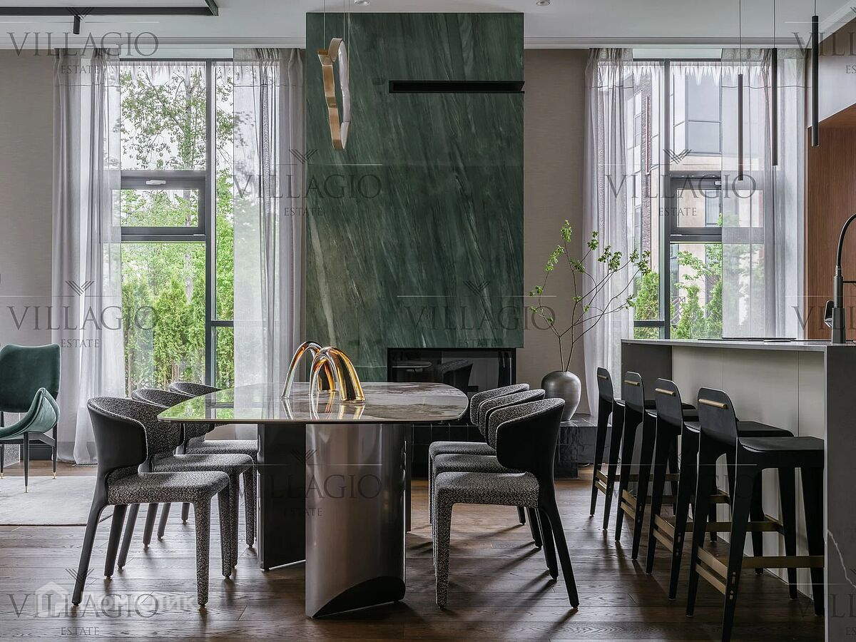 Современный таунхаус с дизайнерским ремонтом под ключ в клубном поселке «Парк Фонте». Преимущества: - 4 спальни, каждая из которых имеет собственные гардеробные и ванные комнаты - кабинет - постирочная - 5 с/у - 6 гардеробных - гостиная с камином - кухня-столовая с выходом на просторную террасу В комплектацию таунхауса входит: - кухня с островом, полностью оборудованная премиальный техникой. Смеситель фирмы Dornbracht Индукционная плита с встроенной вытяжкой Elica NIKOLA TESLA Другие производители: GAGGENAU, NEFF, AEG, LIEBHERR, MIELE , сантехника Kohler - панели в гостиной и зоне гардеробной выполнены из натурального шпона дуба - мебельные фасады всех гардеробных Cleaf, Италия, все гардеробные, постирочная и мини-кухня имеют подсветку с возможностью диммирования, кожаные корзинки, аксессуары и тд. - дизайнерская мебель и свет (Visual Comfort, Ralph Lauren, Artemest и тд., все люстры и светильники выполнены из натуральной латуни) - текстильные обои - инженерная доска бренда Havwoods - подогрев пола (прихожая, все санузлы, постирочная) - зеркала и тумбы во всех с/у с подсветкой - в отделке ванных использовался крупноформатный печеный камень, мозаика ручной работы - премиальная сантехника Dornbracht, Kohler - душевые системы термостатические - инфракрасная сауна - управление отоплением предусмотрено в каждом помещении - электрические карнизы во всех спальнях - матрасы MemoryFoam - домофон с возможностью подключения Умного дома, камер и тд. - в дом заведён высокоскоростной интернет - котел Viessmann