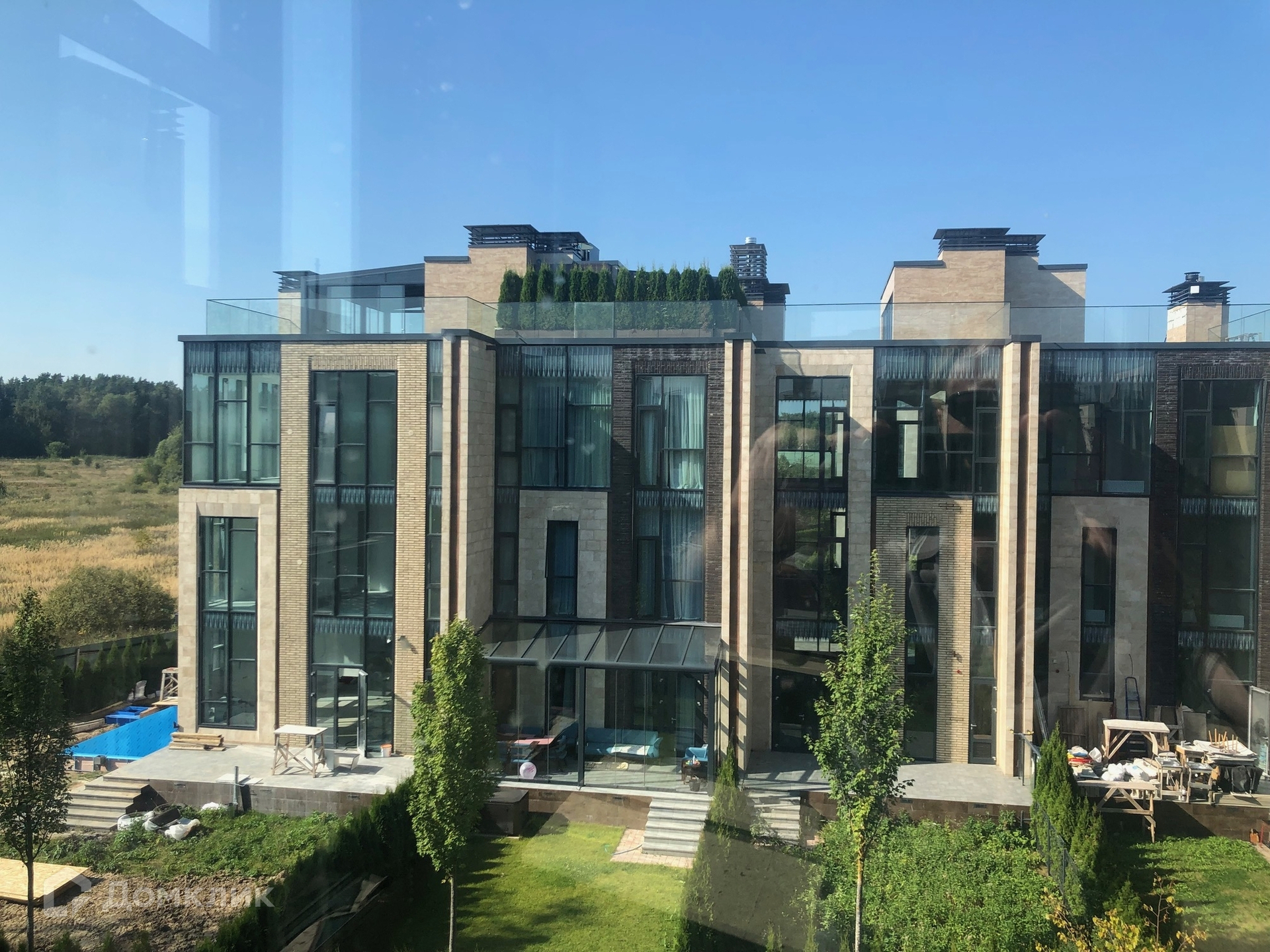 Таунхаус без отделки, внутри свободная планировка. На крыше - просторная открытая терраса для отдыха. К дому подведены необходимые инженерные системы: электричество 12 кВт, вода, канализация.