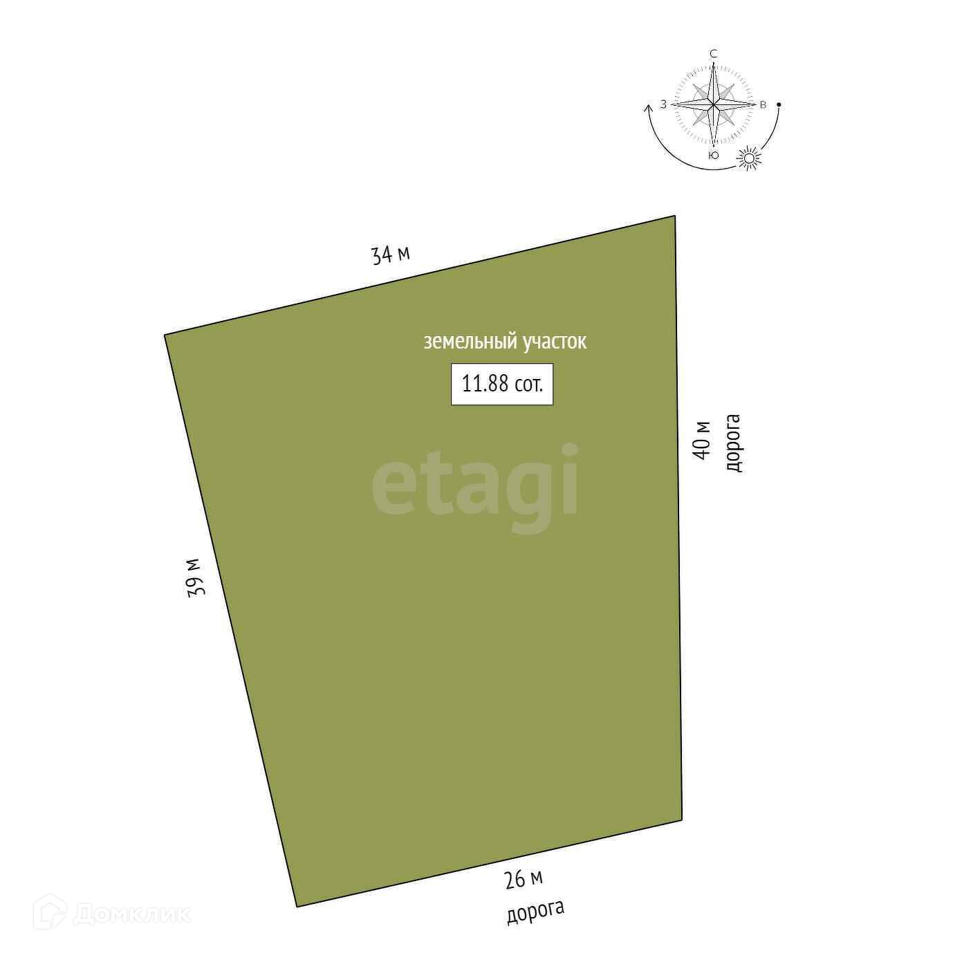 Площадь участка 11.88 сот.