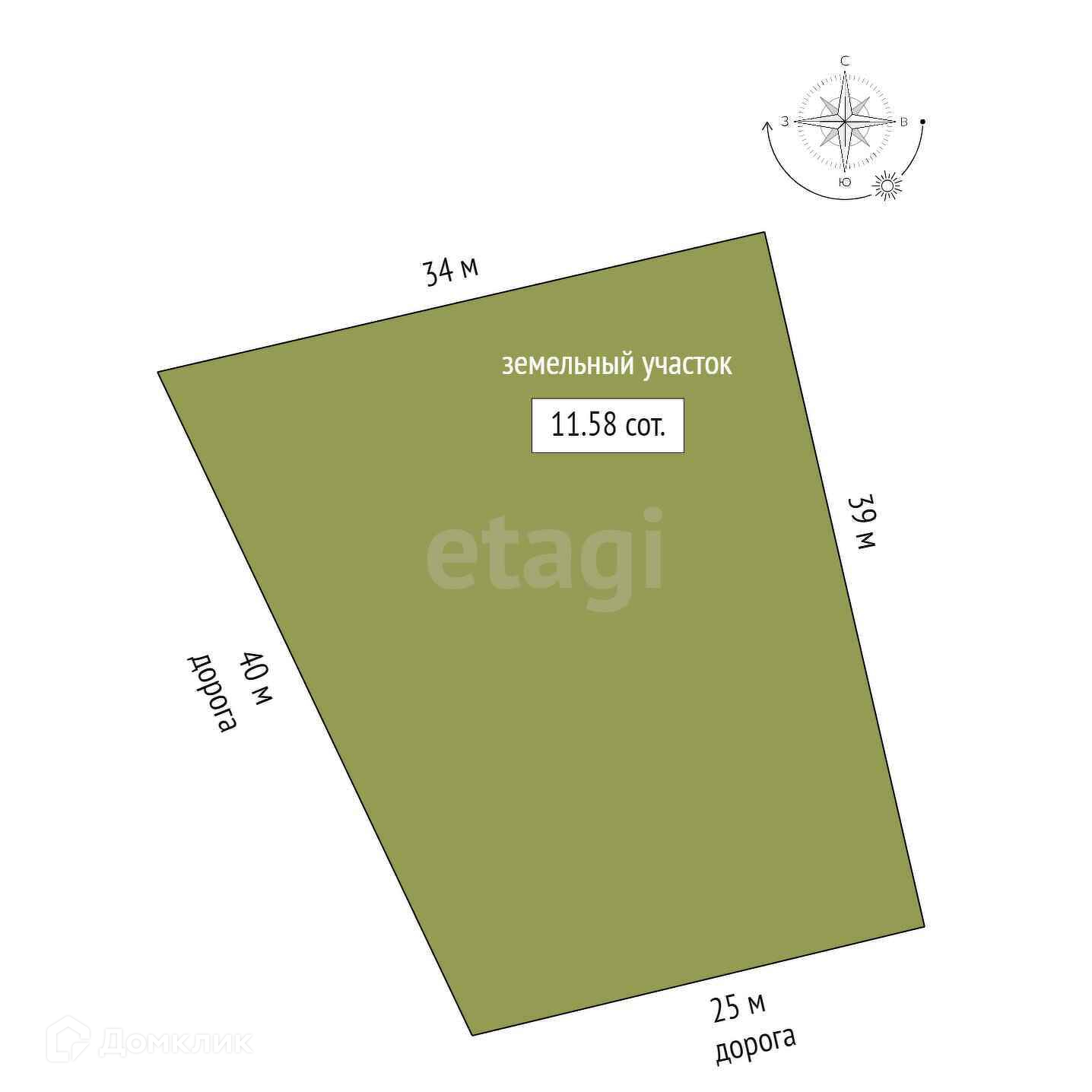 Площадь участка 11.58 сот.