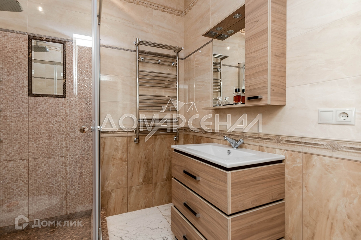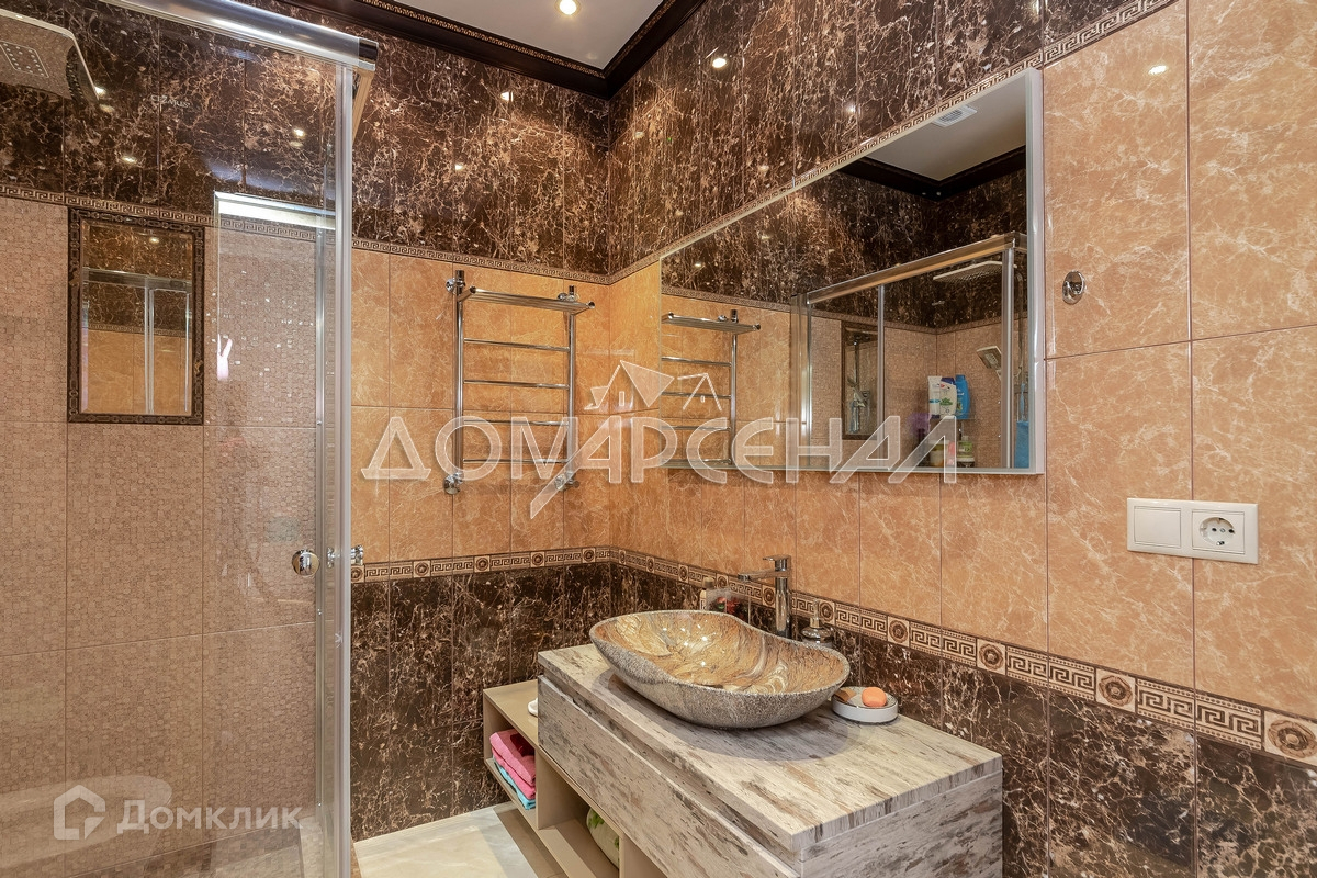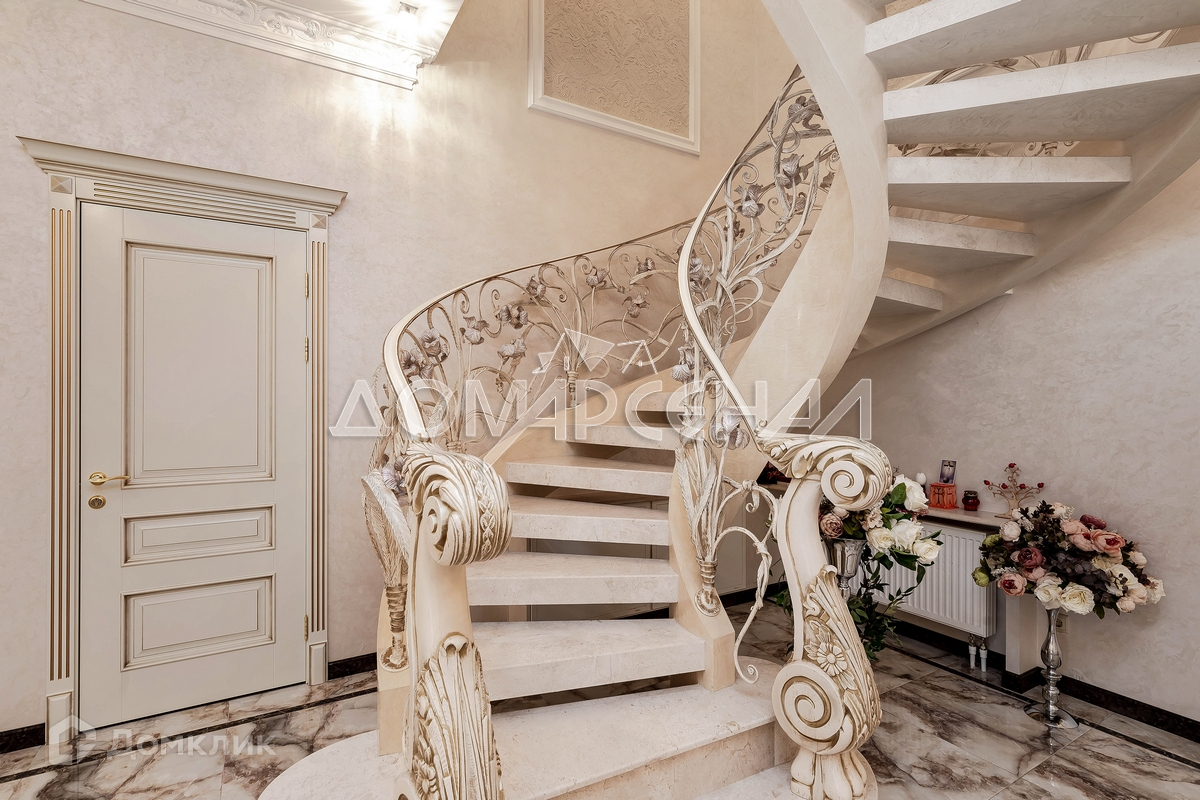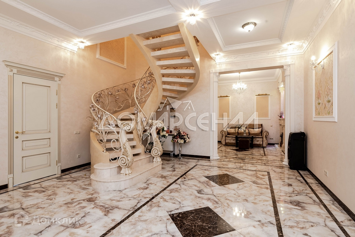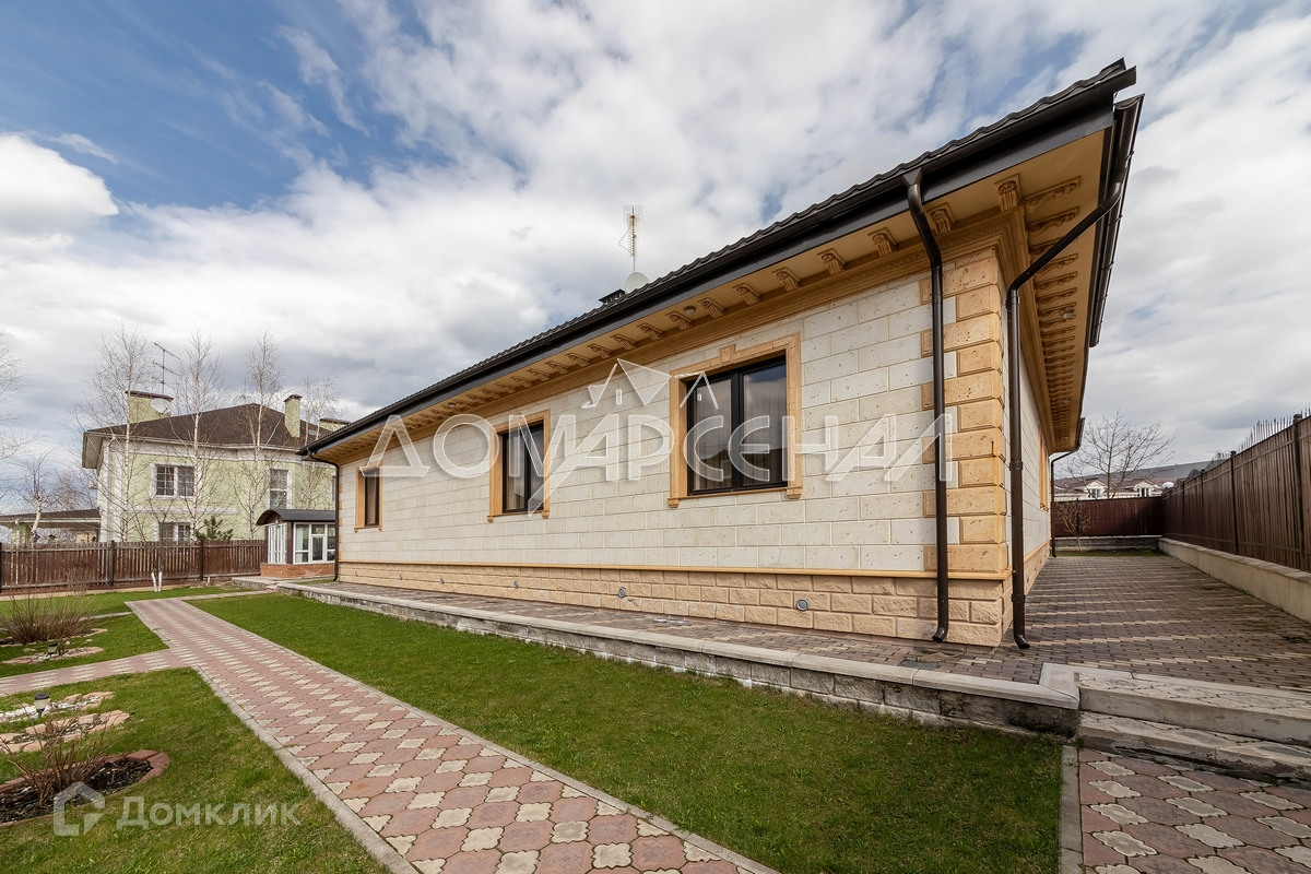 Роскошный загородный коттедж в жилом поселке. Высокое качество строительства, продуманная планировка. Фасад – искусственный камень с натуральными компонентами. Цоколь и крыльцо облицованы гранитом. Дом укомплектован мебелью из дорогих натуральных материалов. Кухня со  встроенной техникой Neff. Автоматические откатные ворота, сантехника Villeroy&Boch, отделка санузлов мрамором, мраморные подоконники, на стенах рельефные обои с ручной росписью.