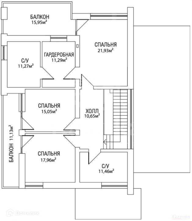 второй этаж - мастер-спальня с балконом, ванной и гардеробной комнатами, две спальни с балконами, ванная комната.