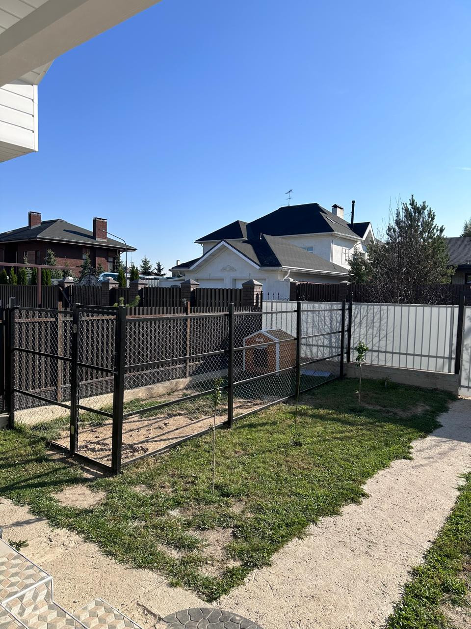 На участке  засеян газон, залито бетонное основание на 2 а/м под гараж или навес на Ваш выбор.