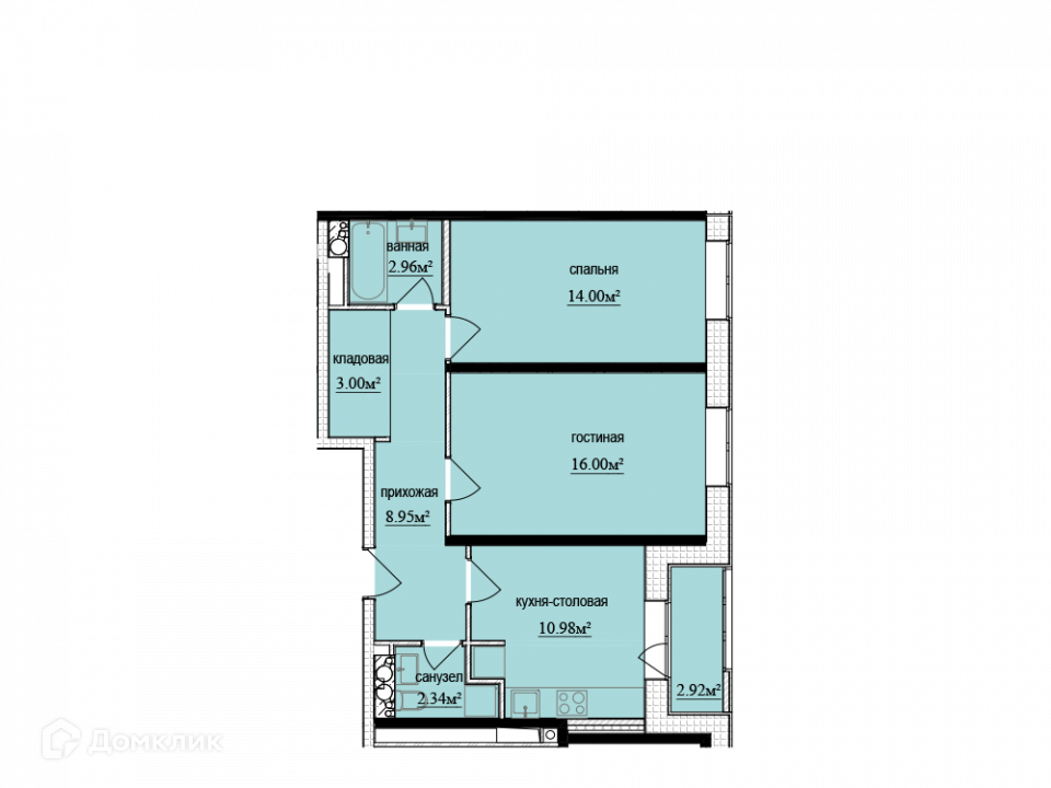 Общая площадь 59.69 м2