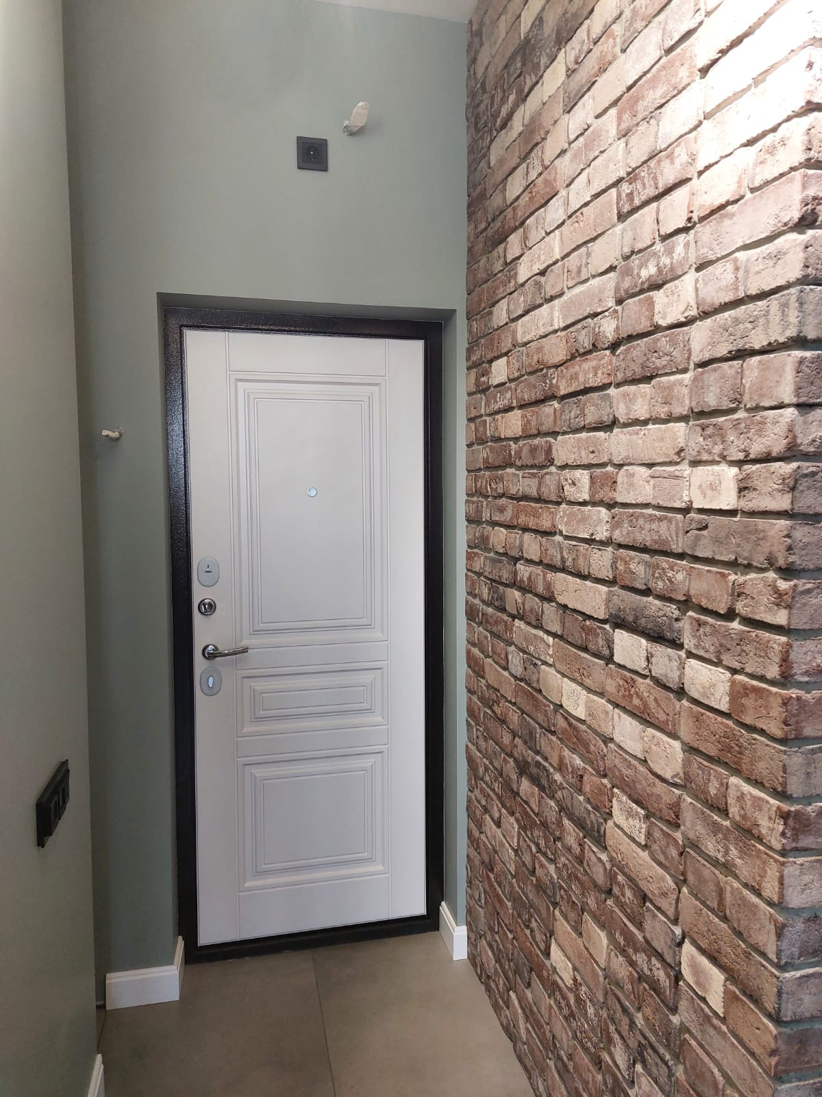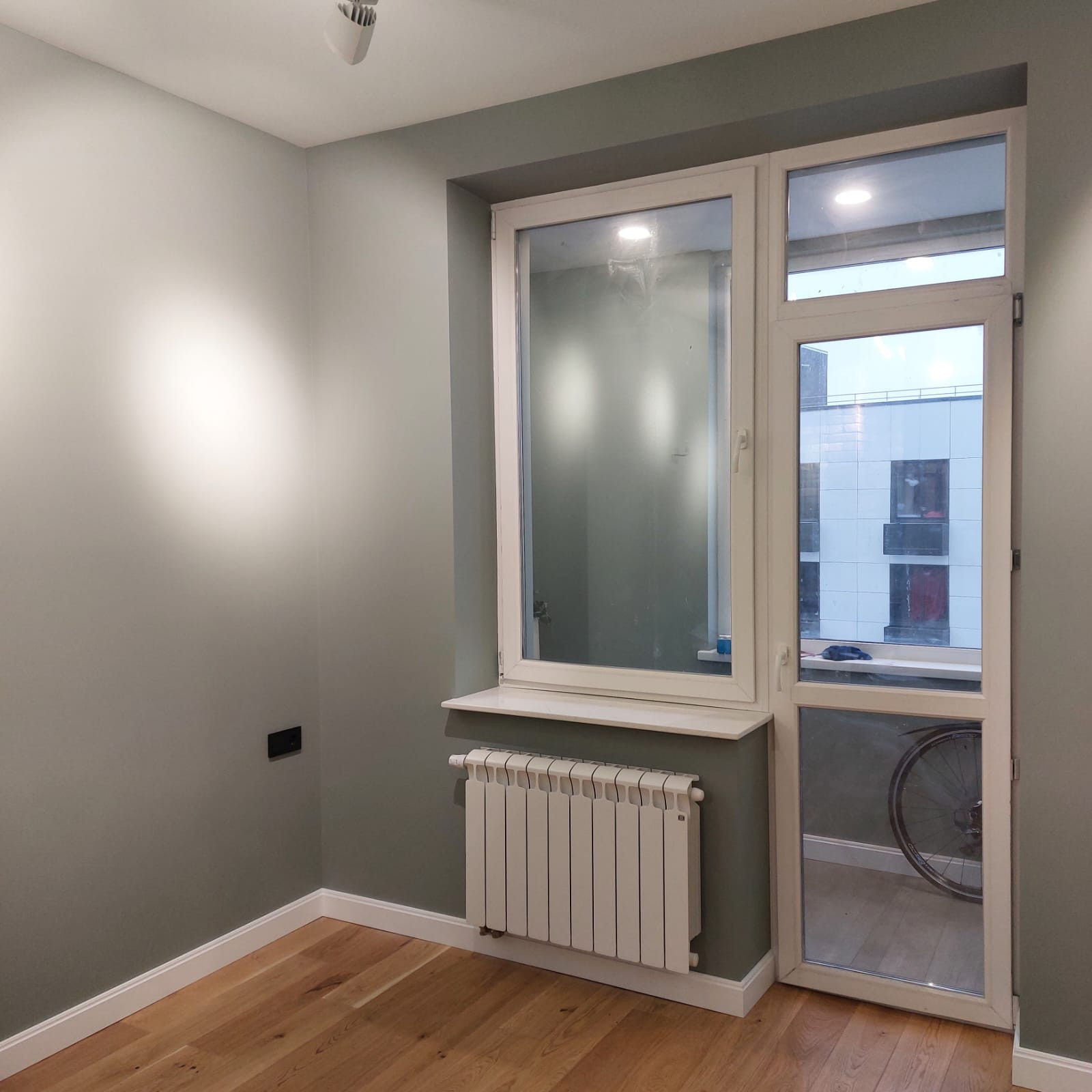 КОМНАТА и ПРИХОЖАЯ (19,6 м2) - отделены от лоджии металло-пластиковой конструкцией с 2-х камерным стеклопакетом. Потолок и стены оштукатурены и покрашены моющейся американской краской. В прихожей две стены с отделкой плиткой под состаренный кирпич. Трековое освещение в стиле Лофт итальянского пр-ва Arte Lamp. На полу однополосная паркетная доска Lab Arte (натуральный дуб) и широкоформатный керамогранит со встроенным теплым полом. Подоконник белого цвета из кварцевого агломерата (не царапается) . Установлен вентиляционный короб для подключения кухонной вытяжки. В прихожей две ниши - одна под стандартный встроенный гардероб шириной 120 см., другая, шириной 40 см. под ключницу, хоз. блок и электрические щиты.