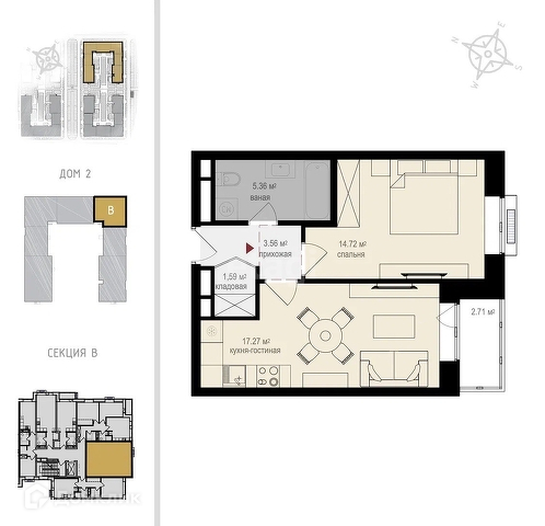 Общая площадь 39.9 м2